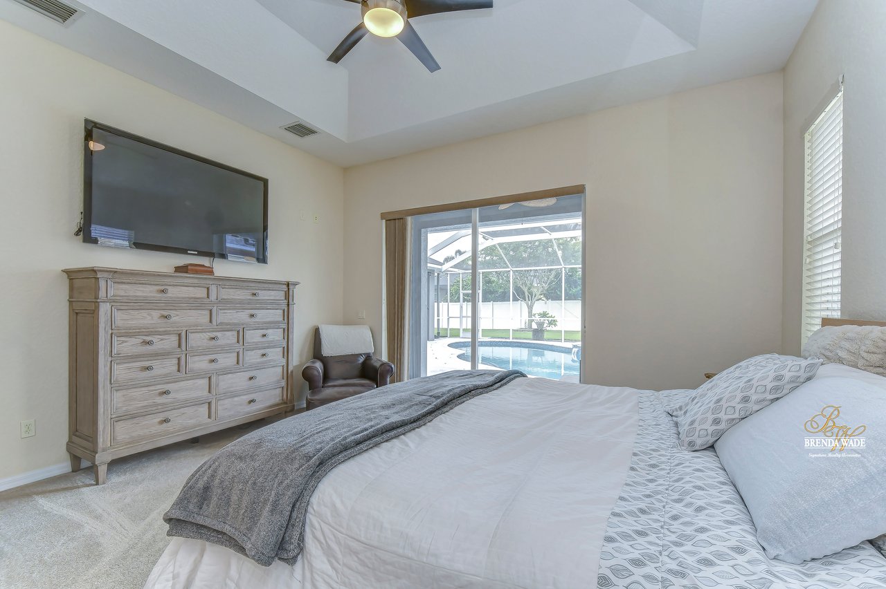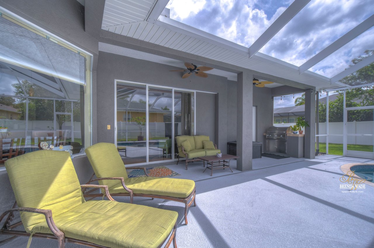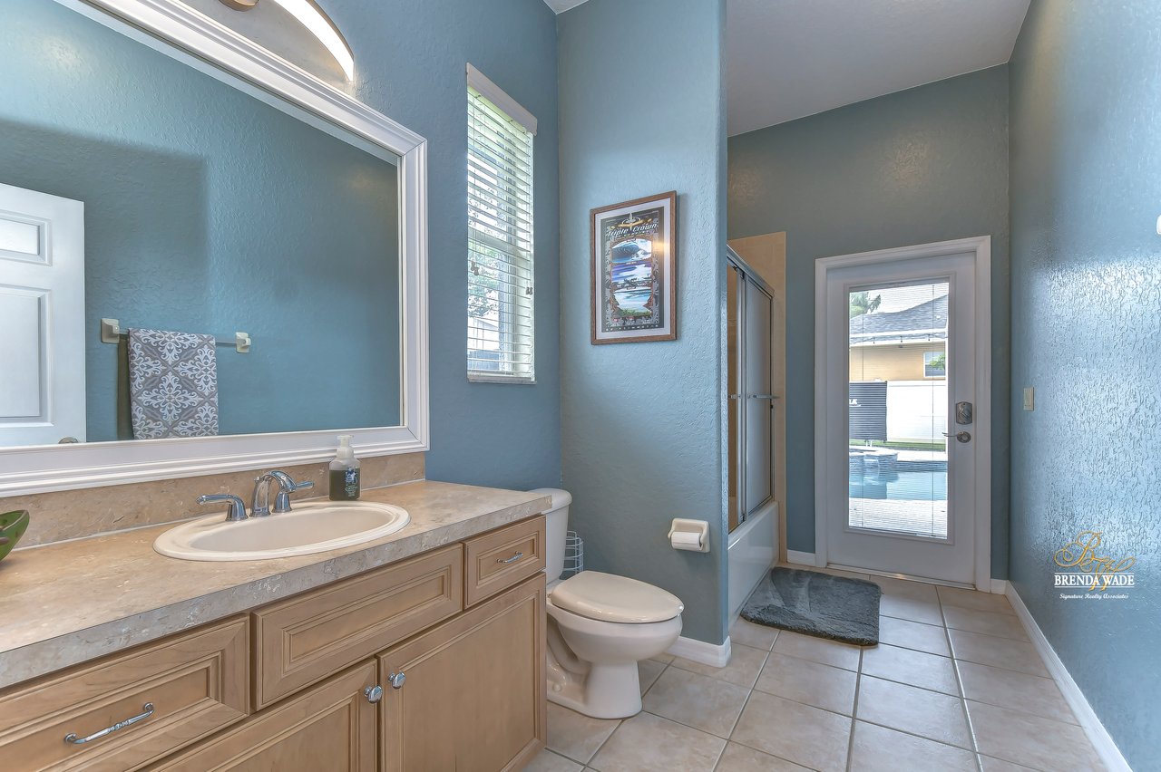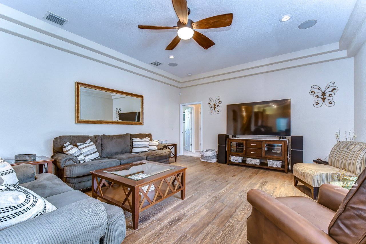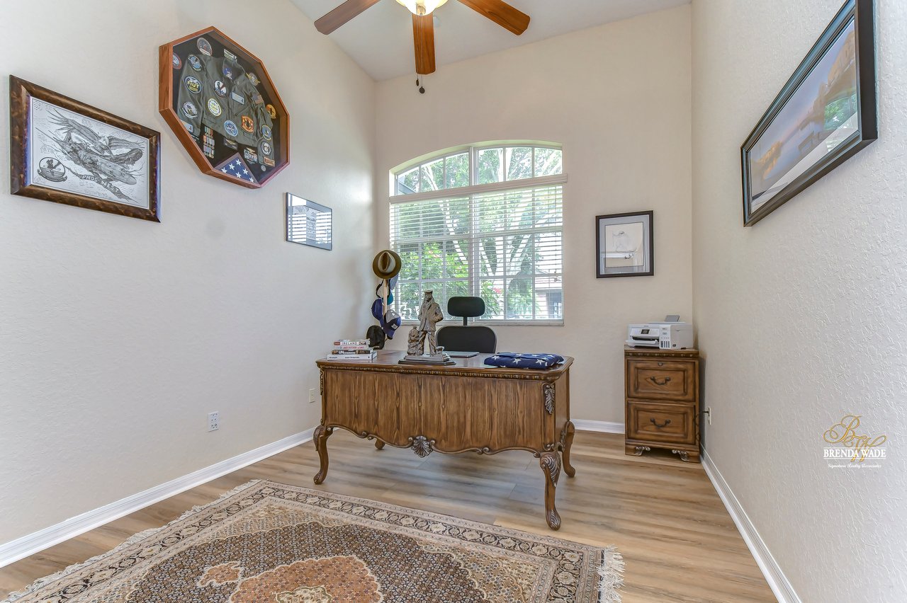 Under contract-accepting backup offers. The hunt for your dream home is finally over. This stunning pool home is located in the desirable Citrus Wood community. You'll be captivated by its beautiful curb appeal, boasting a newer roof replaced in 2020, fresh exterior paint, lush landscaping, and welcoming front porch. With its exceptional features and layout, this amazing property offers a triple split floor plan that is sure to meet all your needs. You'll love the tile flooring and stylish columns that lead you into the formal dining room and living room, both with tasteful finishes and perfect for gatherings. The slider in this area opens to the screened lanai, creating a seamless indoor-outdoor flow. A spacious office located at the front of the home provides a comfortable and productive workspace. The kitchen, truly the heart of this home, is a chef's dream come true. It features stunning wood cabinets with crown, stainless appliances, center island, bar seating, decorative tile backsplash and baseboard vac ports, making cleaning effortless. The kitchen seamlessly connects to the family room, ensuring you never miss out on conversations while preparing meals or entertaining guests. The great room features wood-look tile flooring, ceiling speakers and a pocket glass slider to lanai. The primary suite, nestled in its own wing of the house is a true oasis. Featuring a tray ceiling, his and her closets, private exit to the lanai, and an en-suite bath. The en-suite boasts dual sinks, garden soaking tub, and walk-in shower. Two additional spacious bedrooms offer large closet space and share a Jack and Jill bath, while a fourth bedroom at the back of the home offers privacy and convenience, with its own private bath that also serves as a pool bath. Upstairs, an oversized bonus room awaits, offering endless possibilities such as a media room, home gym, or game room. It also features two walk-in storage spaces, ensuring you have plenty of room for all your belongings. The outdoor space of this home is a true showstopper. Take a dip in the beautifully resurfaced pebble tec pool and soak up the sun or gather around the gas grill for some delicious barbecue while engaging in lively conversation. Two separate covered patios provide the perfect space for outdoor entertainment and relaxation. The backyard is fenced, offering a safe and secure area for the whole family to enjoy. Did we mention, this home is just an hour from Disney and various beaches. Don't miss out on this amazing home, schedule your showing now.