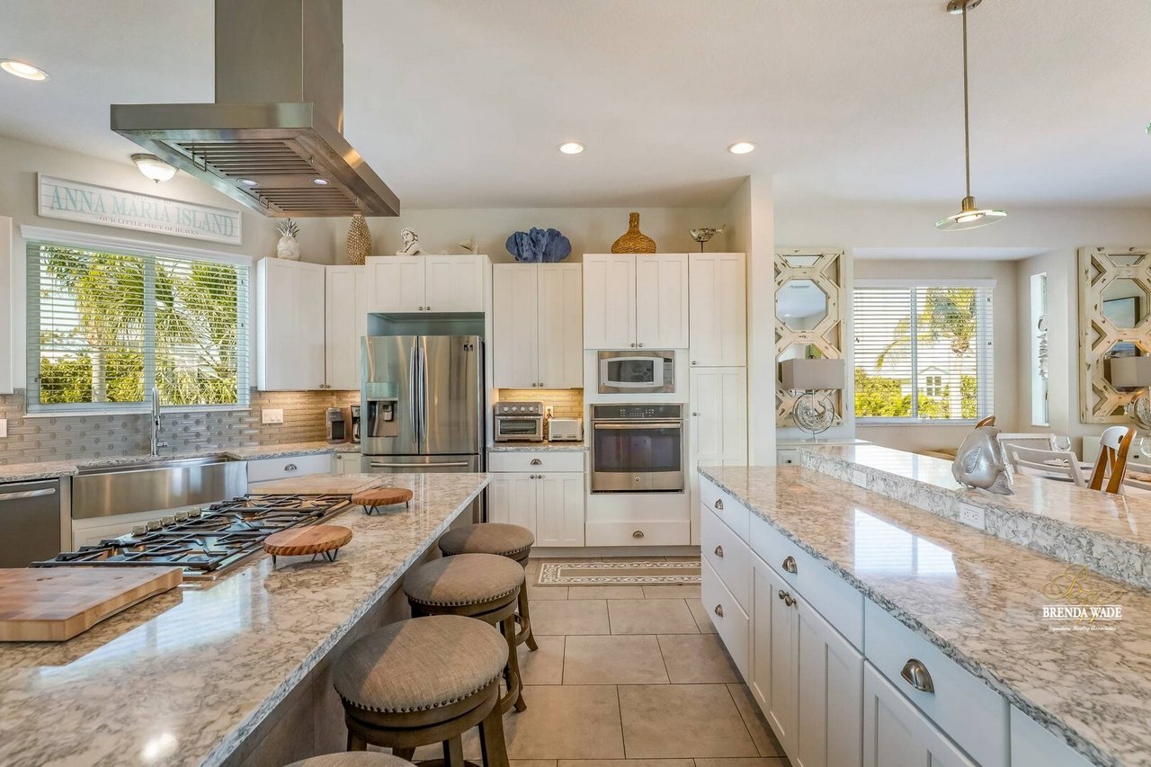 Let the island breeze guide you home to 505 S Bay Boulevard, a waterfront haven where the world slows down and coastal living feels like poetry. Tucked along the tranquil north end of Anna Maria Island, this elevated five-bedroom, five-bath home invites you to experience a lifestyle wrapped in beauty, comfort, and pure island magic. Step inside and discover more than 3,200 square feet of thoughtfully designed living space, filled with natural light and framed by sweeping water views. The open-concept floor plan flows seamlessly, anchored by a gourmet kitchen featuring dual islands, high-end finishes, and a gas cooktop--perfect for everyday living and effortless entertaining. Multiple ensuite bedrooms, a versatile top-floor loft, and separate living areas provide privacy and flexibility for family, guests, or long-term stays. Four balconies extend the indoor spaces outdoors, offering uninterrupted views of sunrises over the bay and serene evenings on the water. This gorgeous home also presents a strong investment opportunity, with the potential to generate six-figure annual vacation rental income. Custom features abound, including a heated saltwater pool, a boat dock and lift on the canal, an eco-friendly rainwater cistern system, two tankless water heaters, an R38 metal roof with spray-foam insulated walls for energy efficiency, and a 25-year termite warranty for added protection. For boating enthusiasts, the home's 32 feet of saltwater-canal frontage, deeded boat slip, and lift provide direct access to the Intracoastal Waterway and Gulf of Mexico. Durable coastal construction, impact-resistant features, and low-maintenance materials ensure peace of mind while embracing the waterfront lifestyle. Beyond the home, Anna Maria Island offers one of Florida's most celebrated coastal experiences. A short stroll or bike ride takes you to Pine Avenue's boutiques, cafes, and galleries, while world-renowned beaches with soft white sand and clear blue water await for sunbathing, shelling, or paddleboarding. From casual beach days to boating excursions and sunset views over the Gulf, this address delivers a truly effortless island lifestyle. At 505 S Bay Boulevard, you're not just investing in a home--you're securing a front-row seat to the island life that makes Anna Maria Island one of Florida's top coastal destinations. Here, every day feels like a retreat, and every moment is framed by the natural beauty and charm of one of the Gulf Coast's most desirable communities.
