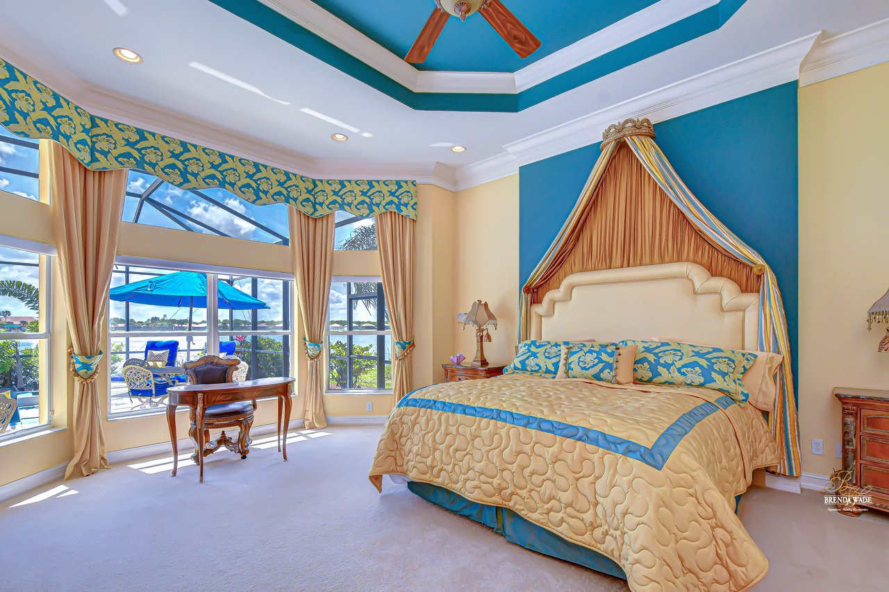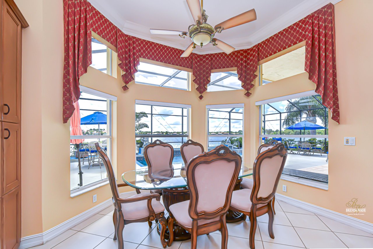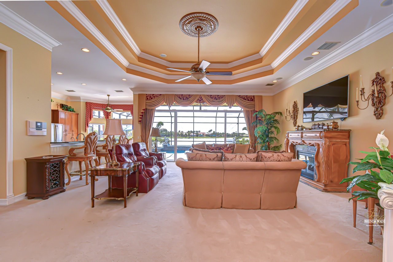 Welcome to resort-style living in the highly sought-after Valencia Lakes--a premier gated 55+ community known for its vibrant lifestyle and exceptional amenities. Perfectly positioned on a rare pie-shaped, south-facing waterfront lot, this home offers breathtaking lake views while overlooking the community center. The unique orientation provides the best of both worlds--sun-drenched pool and lanai areas all day, while the home itself stays naturally cooler with minimal direct sun exposure. From the moment you arrive, you'll appreciate the beautiful tile roof, pavered driveway, and inviting tropical courtyard entry that sets the tone for what's inside. Step through the front door and your eyes are immediately drawn to the expansive water views and the stunning lanai featuring a sport-style pool, creating the ultimate indoor-outdoor Florida lifestyle. This thoughtfully designed 2-bedroom, 2.5-bath + den residence offers a split floor plan that ensures privacy for both owners and guests, while the open-concept layout is ideal for entertaining. The home is enhanced with high-end finishes throughout, including triple tray ceilings, crown molding, upgraded lighting, and custom built-ins. At the heart of the home is the spacious kitchen, seamlessly connecting to the formal dining and great room. Features include upgraded cabinetry with custom pull-out drawers, built-in double oven, and a bright breakfast nook with serene lake views--the perfect place to start your day. Step outside to the lanai where a propane grill hookup makes outdoor cooking effortless. The private primary suite is tucked away for maximum tranquility and showcases stunning lake views, direct lanai access, and dual custom walk-in closets. The en-suite bath is generously sized with separate vanities, a dedicated makeup vanity, and full-length mirrors spanning the wall. On the opposite side of the home, the guest suite offers its own en-suite bath, providing comfort and privacy for visitors. The versatile den is ideal as a home office, fitness room, or optional third bedroom. The community center also features a wonderful on-site cafe offering breakfast, lunch, and dinner, along with special menus for holidays and events, adding to the ease and enjoyment of everyday living. Valencia Lakes isn't just a community--it's a lifestyle. Enjoy a 40-acre waterfront recreation area, resort-style pools, a 40,000 sq. ft. clubhouse, tennis and pickleball courts, bocce, basketball, a fully equipped fitness center, dog park, baseball field, community garden, and RV/boat storage. Over 100 acres of nature preserves provide peaceful views, abundant wildlife, and a true sense of serenity. With hundreds of clubs and activities, friendly neighbors, and convenient access to Tampa, St. Petersburg, Sarasota, shopping, golf, and the airport, this home offers both comfort and convenience. This is more than just a home--it's a premium lot, exceptional orientation, and lifestyle opportunity in one of the area's most desirable communities.