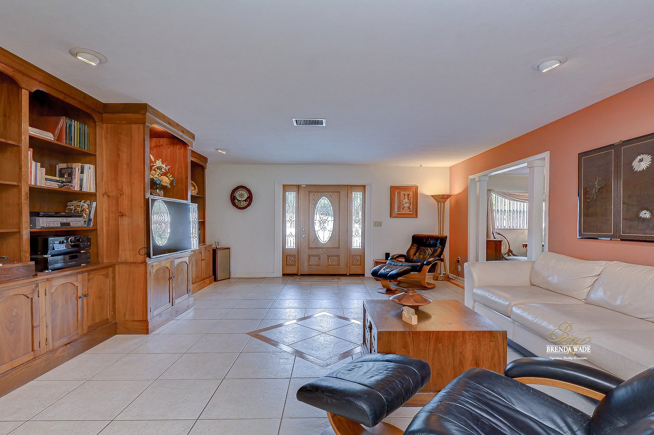 Welcome to every entertainer’s dream! With a semi-circle driveway in addition to the 2-car garage, this home is ready to welcome all of your family and friends! When you walk through the beautiful leaded glass front door, you are greeted with oversized porcelain tile with beautiful hardwood trim in the spacious family room! These stunning floors continue into the oversized Florida room! The room is surrounded by sliders allowing an abundance of natural light to flow into the home! If this room wasn’t appealing enough, it is wired for built-in speakers making it the perfect space to entertain, or enjoy the beautiful natural surroundings from the comfort of indoors! If a more traditional entertaining space is what you are looking for, the formal living and dining room feature rich hardwood floors, abundant natural light, and a beautiful chandelier! The kitchen features custom natural hickory cabinets with accent cabinet lighting and granite countertops! The hardwood floors extend into all three bedrooms in the home, with spacious closets present as well! The master and secondary bathrooms are recently remodeled from the ground up, featuring all-new tile, cabinets, countertops, and showers! The master features a secondary entrance into the Florida room with plantation shutters, allowing you to quickly access the gardener's paradise in the backyard! The mature tropical landscaping has been meticulously cared for and surrounds you in this fenced pie shaped backyard, featuring a 100+ year old oak tree! The backyard also contains a large workshop/shed! The home is conveniently located to everything Brandon offers, with the BrandonHospital, Westfield mall, tons of restaurants, and Selmon Expressway all just minutes away!
