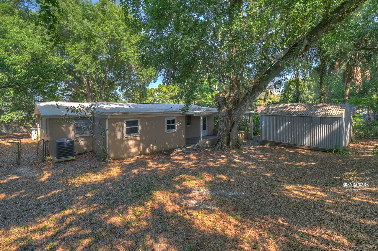 If you are looking for a little bit of country in the city, you have come to the right place! This home is literally minutes on foot to SR-60, has neighbors on one side only, and is surrounded by trees and other greenery! The inside will not disappoint, with both the bath and kitchen having been updated! You will have peace of mind knowing the A/C was replaced in 2019 as well! When you step through the front door you arrive at the great room and will notice the luxury vinyl floors and the large window that makes the most of the natural light! Off to one side, there is another room that boasts spanish floors that could be used as a dining room or even a bonus room, whichever works for you and your family! The kitchen with raised panel cabinets, granite counters, stainless appliances, and picture window is a space where you will enjoy rustling up family meals! A half bathroom is central to the living areas, convenient for guests! The master bedroom and secondary bedrooms all feature 2020 carpeting, practically as good as new! The remodeled main bathroom is a show-stopper with spacious tub and shower combination, tile floors, and vanity with floor-to-ceiling cabinetry so you will have plenty of storage! At the back of the home, there is a large covered lanai so outdoor living will be a given at this house! There is also a large shed that will stay which would be great for anyone that likes to have a separate workshop to tinker! With no HOA you have endless choices, bring your boat, trailer, or RV and store them on the property! This is not your cookie-cutter home so if you are looking for character, this is the one! Come take a look today!