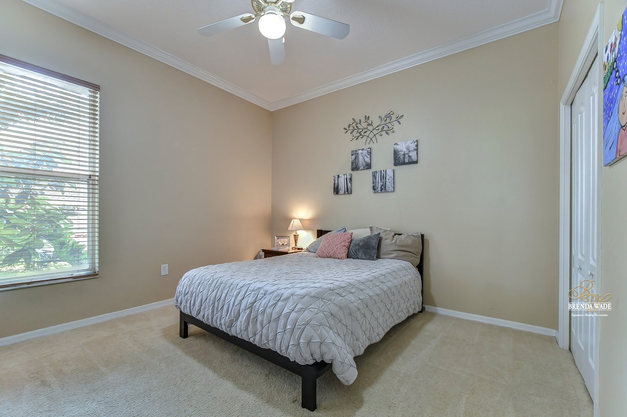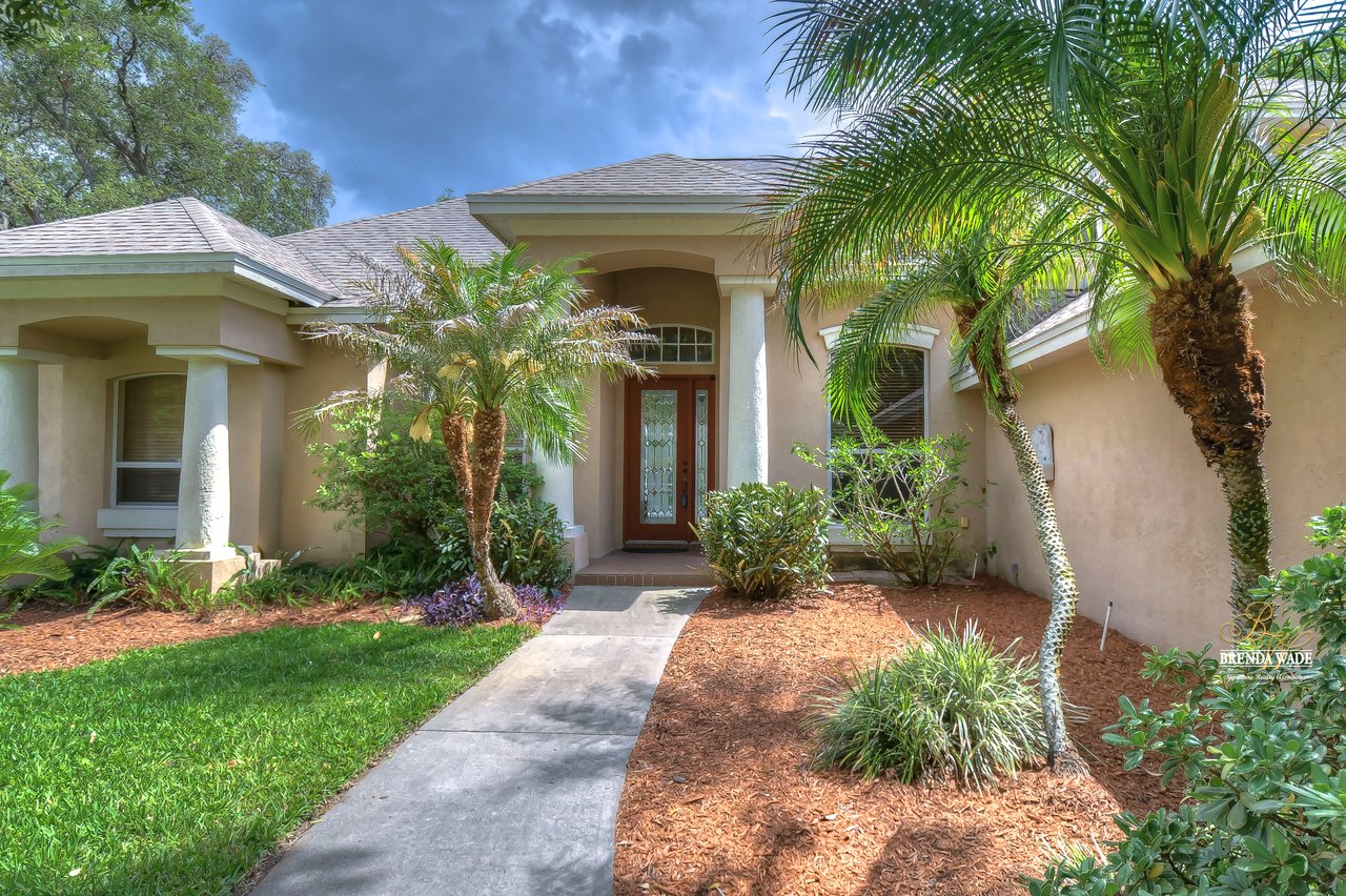 STEAL of THE DAY! LOOK AT THIS PRICE!!! HUGE REDUCTION MAKES THE PERFECT OPPORTUNITY FOR YOU! You will fall in love with the small intimate community of Canterbury Oaks! Nestled off Bloomingdale Avenue, between the River Hills and Twin Lakes communities, this gated neighborhood of 1/3 acre homesites and grandfather oak-lined streets features homes by the premier Tampa Bay builder Sunrise Homes! Tucked away at the back of the neighborhood on a quiet loop street, this is the perfect tranquil location! On arrival, you will appreciate the sophisticated curb appeal with side-entry garage, lush landscaping, and column accents that add character to this statement home! The roof was replaced in 2018 so you can check one high-ticket item off your list! The inside will not disappoint with over 3,350 sf featuring 4 bedrooms, 3.5 baths, office, and bonus room! Features include hardwood floors throughout all living areas, crown molding, and signature Sunrise oversized windows! The formal dining room with crown molding is the perfect spot for family gatherings! The formal living room with slider to the lanai and views of the sparkling salt-water pool is another space that would be perfect for entertaining! The kitchen is the heart of this home with raised panel cabinets, thick granite counters, island, stainless appliances, and separate breakfast nook! The family room with fireplace, huge picture window, and custom built-ins for you to display your decor pieces, is the perfect spot for family gatherings! The spacious primary suite is located on the first floor and boasts crown molding, French doors to the lanai, and attached bath with garden tub and separate shower! There are two closets, one being a walk-in with tons of storage! On the opposite side of the home, you will also find a separate guest bedroom and bathroom, perfect for guests wanting privacy! Head upstairs and you will find another two bedrooms, full bath, and large bonus room with built-ins! The sparkling, heated salt-water pool with spa sits under your screened lanai that offers you the perfect spot for outdoor entertaining! The huge 800 sqft garage offers plenty of space for all your vehicles as well as space for a workbench! This is a wonderful home in a coveted neighborhood so do not delay, schedule your private showing!