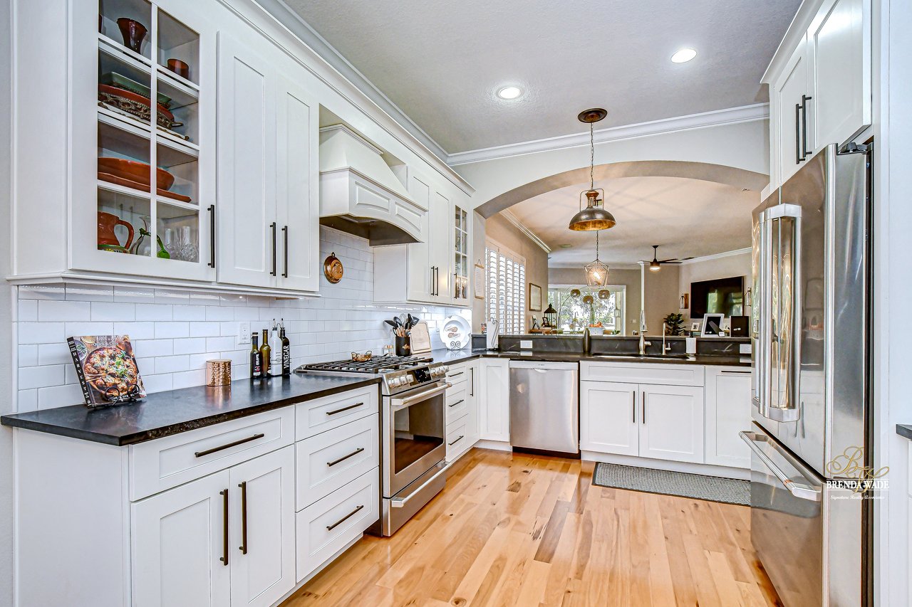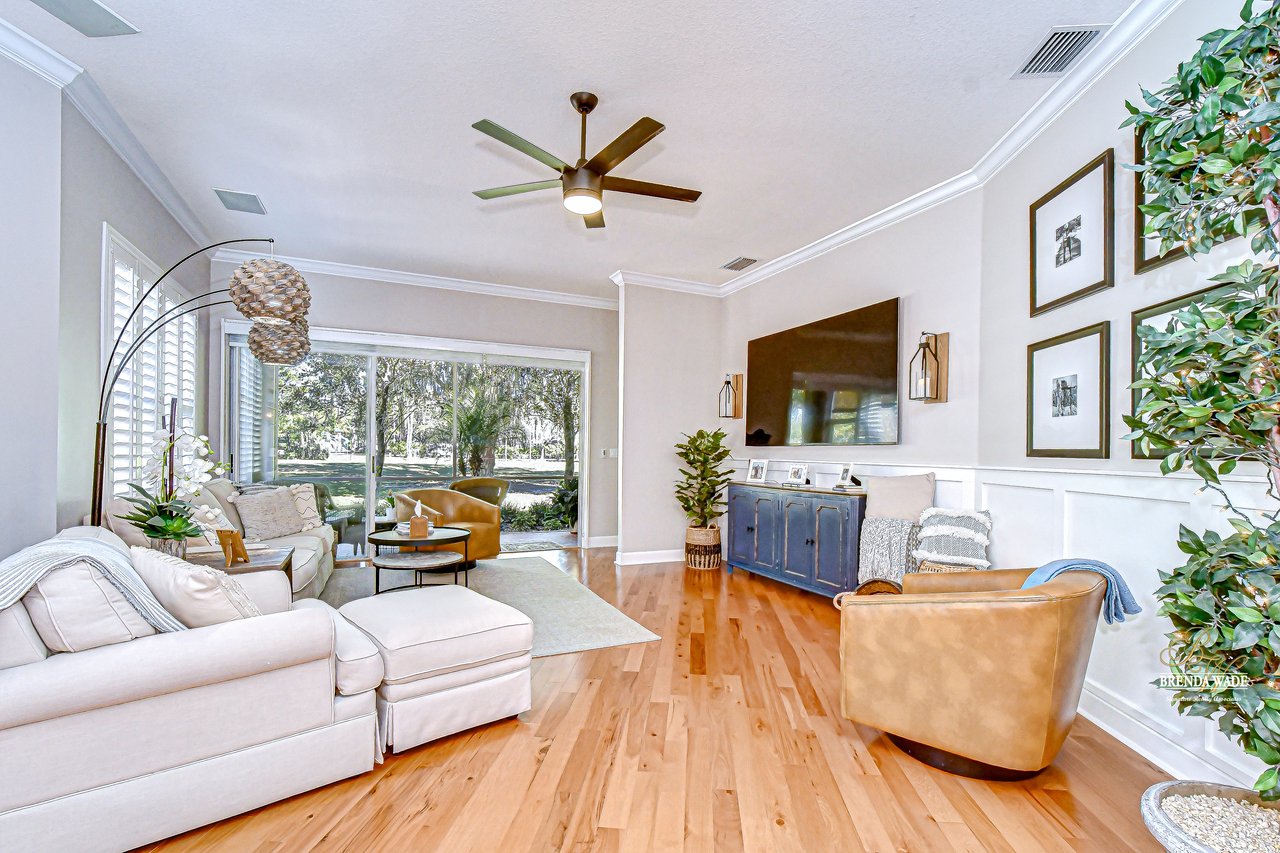 Welcome to Fairway One in River Hills -- a dream home that combines style, functionality, and golf course living! From the moment you arrive, you'll notice the pavered drive and entryway, stunning new landscaping (2025), and charming curb appeal -- all hinting at the thoughtful updates and design throughout. Inside, the home immediately impresses with rich wood flooring, wide baseboards, plantation shutters, and elegant crown and wall molding throughout (2021). One of the standout features of this home is the upstairs loft, a versatile space with a huge walk-in closet and enough privacy to serve as a 4th bedroom if desired -- perfect for family, guests, or a hobby space. The first-floor private office behind French doors provides an ideal work-from-home setup, combining style and function. Storage is abundant at every turn, making organization effortless. The garage features a dedicated storage closet, overhead shelving, and additional cabinets, while the first-floor guest bedroom takes advantage of under-stair space with a large closet. There's also a second-floor storage closet, ensuring there's space for everything throughout the home. The completely remodeled kitchen (2020) is a true showstopper: soft-close cabinetry with under-cabinet lighting, subway tile backsplash, sleek countertops, and stainless steel appliances combine beauty and efficiency. A sunny breakfast nook with golf course views makes every meal feel special, while the open-concept layout flows seamlessly into the spacious family room with sweeping fairway views and direct access to the screened lanai -- ideal for entertaining or relaxing. Step outside to enjoy resort-style amenities just steps from your backyard, while Fairway One homeowners also enjoy exclusive access to their private neighborhood pool -- a rare perk that elevates the lifestyle this home offers. The primary suite is a serene retreat with sliders to the lanai, a large walk-in closet, and a spa-inspired bath featuring dual sinks, granite counters, a frameless glass shower, and a soaking tub. First-floor guests enjoy a private, remodeled suite, and upstairs, the loft and additional bedroom offer flexible space for sleeping, working, or play. Step outside to your screened and pavered lanai or the expanded open patio, perfect for morning coffee, entertaining friends, or soaking in the panoramic golf course views. With thoughtful updates, versatile spaces, incredible storage throughout, modern elegance, and unmatched River Hills amenities, this home is the ultimate combination of comfort, style, and Florida lifestyle -- truly the perfect place to call your own.