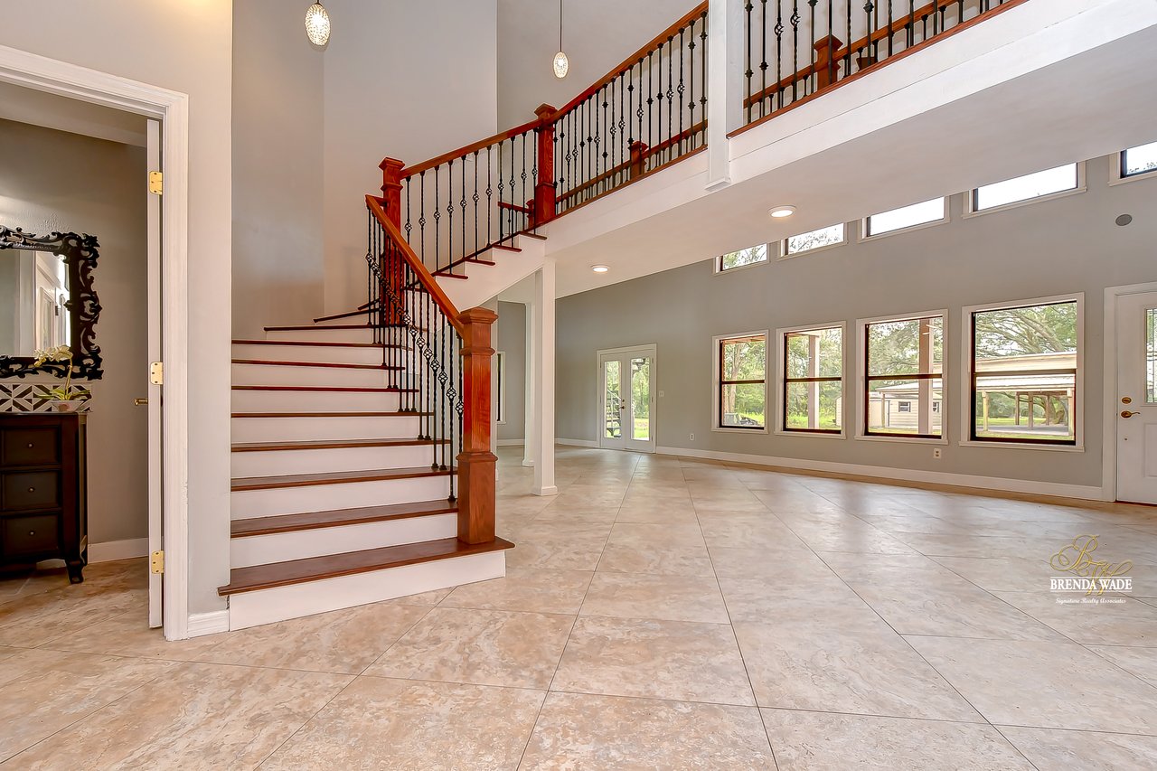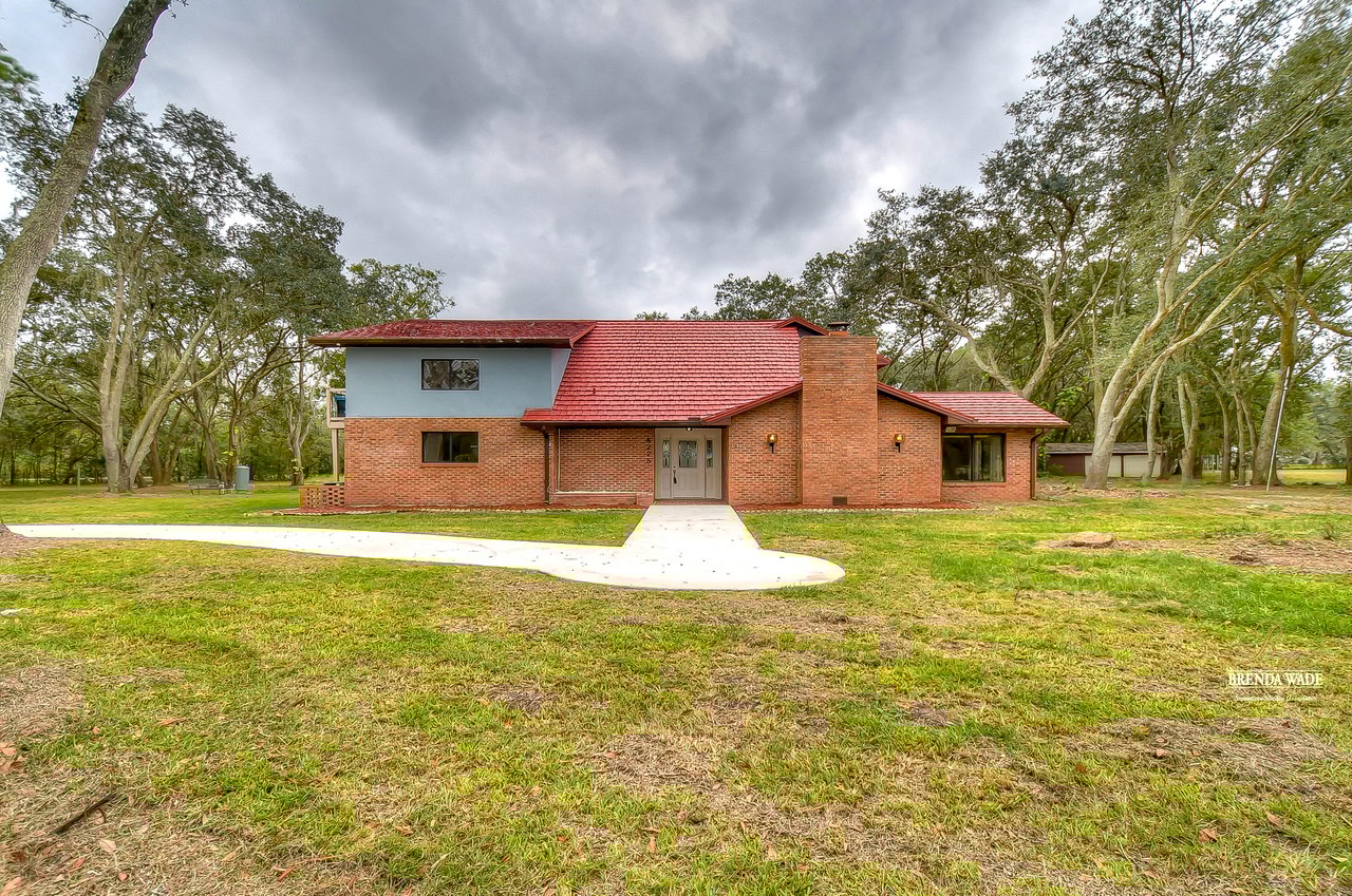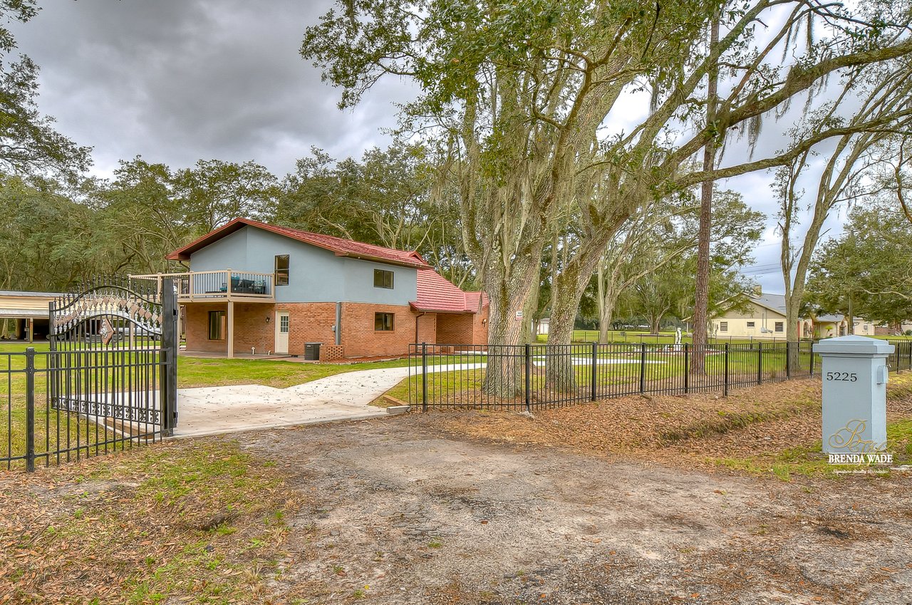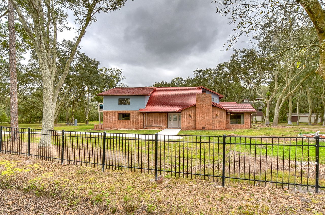 Country Living at its Finest! Your opportunity has arrived to own an updated charmer situated on 1.57-acres of pure bliss at the end of a quiet road! Owners have spent $40,000 on clearing trees so you can enjoy the property and tranquil views! So much of this home is NEW! The new gated entrance welcomes you to the brick exterior, new stucco exterior, 3 car rear entry garage, and a beautiful metal roof that can last for decades to come! There is NO HOA and NO CDD, so bring all of your boats, RV’s, and trailers and store them on the property with ease under the HUGE covered RV port! Step through the grand entrance and into this open concept floorplan where this home lives big! Neutral paint, soaring ceilings, and NO carpet throughout the entire home! Talk about easy cleaning! There is a versatile great room to the right of the foyer with a statement brick fireplace, crown molding, ceiling fans, and oversized tile set at the diagonal! The living and dining room combination features stunning volume ceilings, stacked wall of windows, and French doors that lead you to the patio! The kitchen is a showstopper with granite countertops, stainless appliances with built-in oven & microwave, center island with cooktop, and SO much space to prepare meals in this spacious room! The owner’s suite is secluded on the first floor for ample privacy! Private patio exit, huge walk-in closet with organizers, and en-suite featuring stone counters, soaking tub, and walk-in shower! Head up the new staircase with an iron railing and discover three additional sizable bedrooms, perfect for a growing family! The picture-perfect second floor offers an open loft/bonus room area! You have endless opportunities to create a game room, home office, media room, or even just a playroom for the kids! Relax and enjoy the outdoor views on your wrap-around balcony facing the backyard and spiral staircase that leads you to the patio! This home is ideal for entertaining both inside and out with the oversized pavered patio and covered seating area! The three-car garage offers a convenient half-bath while you are working outdoors! The pole barn and storage shed are a fantastic bonus to this remarkable property! Easy access to I-4, and central to Tampa and Lakeland, this home is a winner! Come see it while you can!
