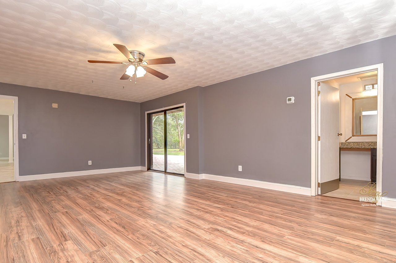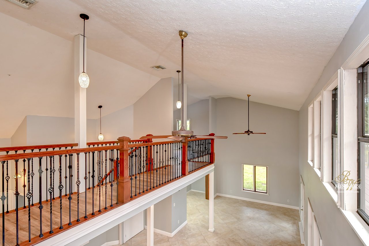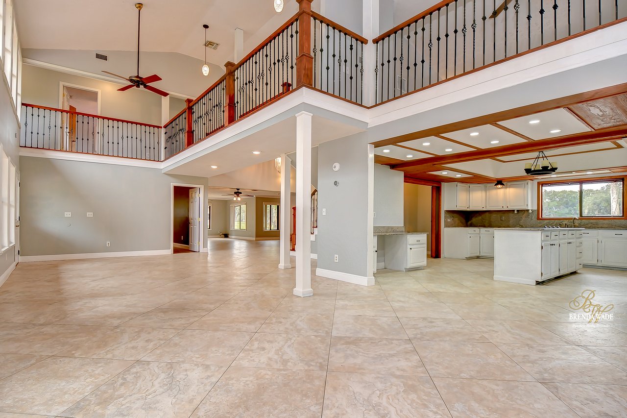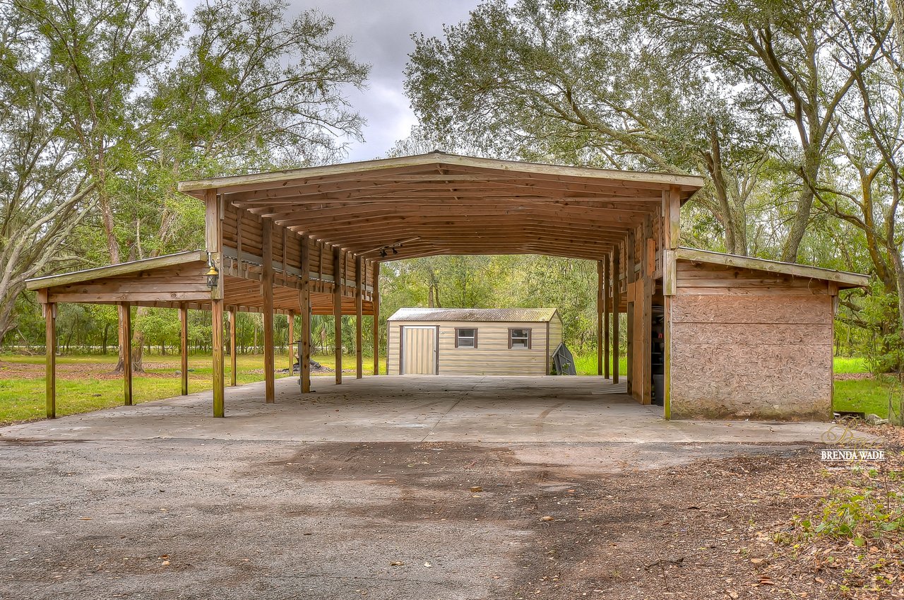Country Living at its Finest! Your opportunity has arrived to own an updated charmer situated on 1.57-acres of pure bliss at the end of a quiet road! Owners have spent $40,000 on clearing trees so you can enjoy the property and tranquil views! So much of this home is NEW! The new gated entrance welcomes you to the brick exterior, new stucco exterior, 3 car rear entry garage, and a beautiful metal roof that can last for decades to come! There is NO HOA and NO CDD, so bring all of your boats, RV’s, and trailers and store them on the property with ease under the HUGE covered RV port! Step through the grand entrance and into this open concept floorplan where this home lives big! Neutral paint, soaring ceilings, and NO carpet throughout the entire home! Talk about easy cleaning! There is a versatile great room to the right of the foyer with a statement brick fireplace, crown molding, ceiling fans, and oversized tile set at the diagonal! The living and dining room combination features stunning volume ceilings, stacked wall of windows, and French doors that lead you to the patio! The kitchen is a showstopper with granite countertops, stainless appliances with built-in oven & microwave, center island with cooktop, and SO much space to prepare meals in this spacious room! The owner’s suite is secluded on the first floor for ample privacy! Private patio exit, huge walk-in closet with organizers, and en-suite featuring stone counters, soaking tub, and walk-in shower! Head up the new staircase with an iron railing and discover three additional sizable bedrooms, perfect for a growing family! The picture-perfect second floor offers an open loft/bonus room area! You have endless opportunities to create a game room, home office, media room, or even just a playroom for the kids! Relax and enjoy the outdoor views on your wrap-around balcony facing the backyard and spiral staircase that leads you to the patio! This home is ideal for entertaining both inside and out with the oversized pavered patio and covered seating area! The three-car garage offers a convenient half-bath while you are working outdoors! The pole barn and storage shed are a fantastic bonus to this remarkable property! Easy access to I-4, and central to Tampa and Lakeland, this home is a winner! Come see it while you can!
