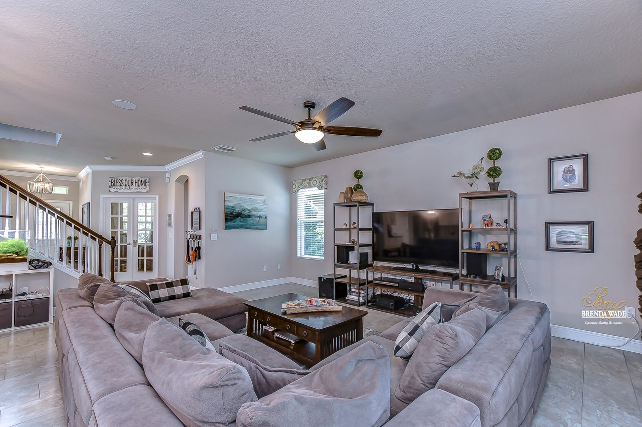 This Starling at FishHawk Ranch beauty has been loaded with upgrades and ready for YOU! Starling is zoned for the BEST “A” rated schools in Hillsborough County and boasts resort-like amenities! Community pools, splash pad, fitness center, dog parks, nature trails, and tennis courts! The owners installed reclaimed water so you can save TONS on your water bills! Spend your mornings on the front porch relaxing on your rocking chair enjoying the Florida weather with a coffee in hand! Step inside and you will notice the neutral paint palette, soaring ceilings, updated light fixtures, contemporary tile flooring, and open concept design that boasts throughout the first floor! The dining room is a treat with crown molding double windows, and arch entryway into the kitchen! The gourmet kitchen showcases granite countertops, 42-in designer cabinets with crown, stainless appliances, center island with seating, mosaic tile backsplash, closet pantry, and breakfast nook! Convenient to guests, there is an updated half bathroom on the first floor! Working from home will be a breeze with the private home office behind a set of french doors! Head upstairs where this family-friendly floor plan features three bedrooms and two bathrooms! The loft upstairs is so versatile with beautiful upgraded flooring offering space for a media/game room or even a playroom to keep the kids' clutter away from the living areas! The primary suite boasts tons of natural lighting, tray ceiling with crown, and an en-suite with dual sinks, granite counters, soaking tub, separate walk-in shower, and large walk-in closet! The other two bedrooms share a second full bathroom with dual sinks! All bedrooms have updated fans and light fixtures! Continue the tour into the backyard where you will discover quite the oasis! The current owners have screened in and pavered the back patio as well as added a built-in cedar pergola! They fenced in the yard which is surrounded by privacy shrubs so you can have peace of mind with that! There surely is pride in ownership of this home AND the backyard! Don’t let this one go, one lucky family will have hit the jackpot with this one!