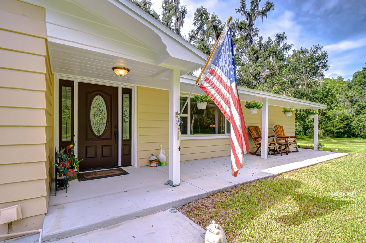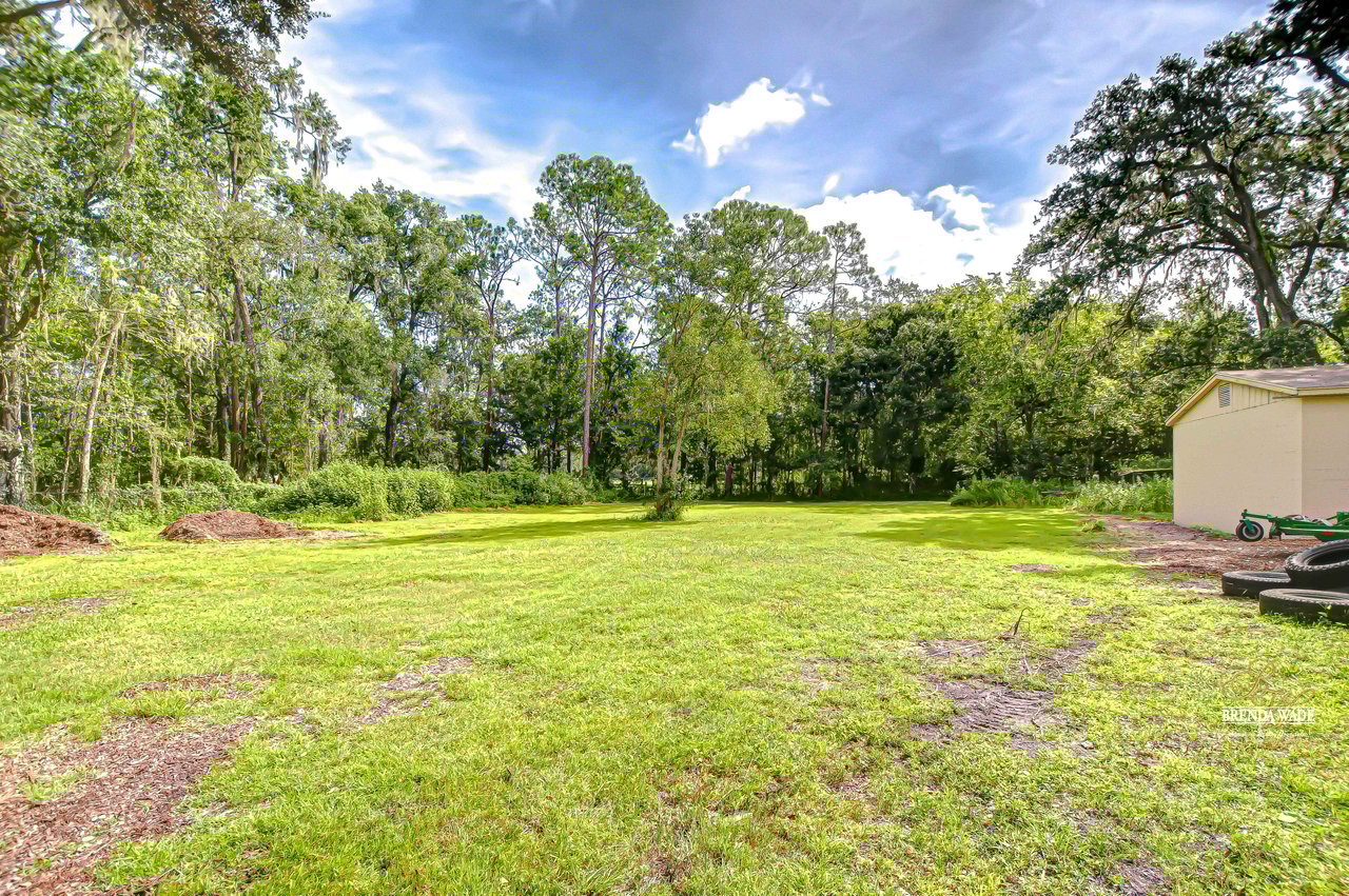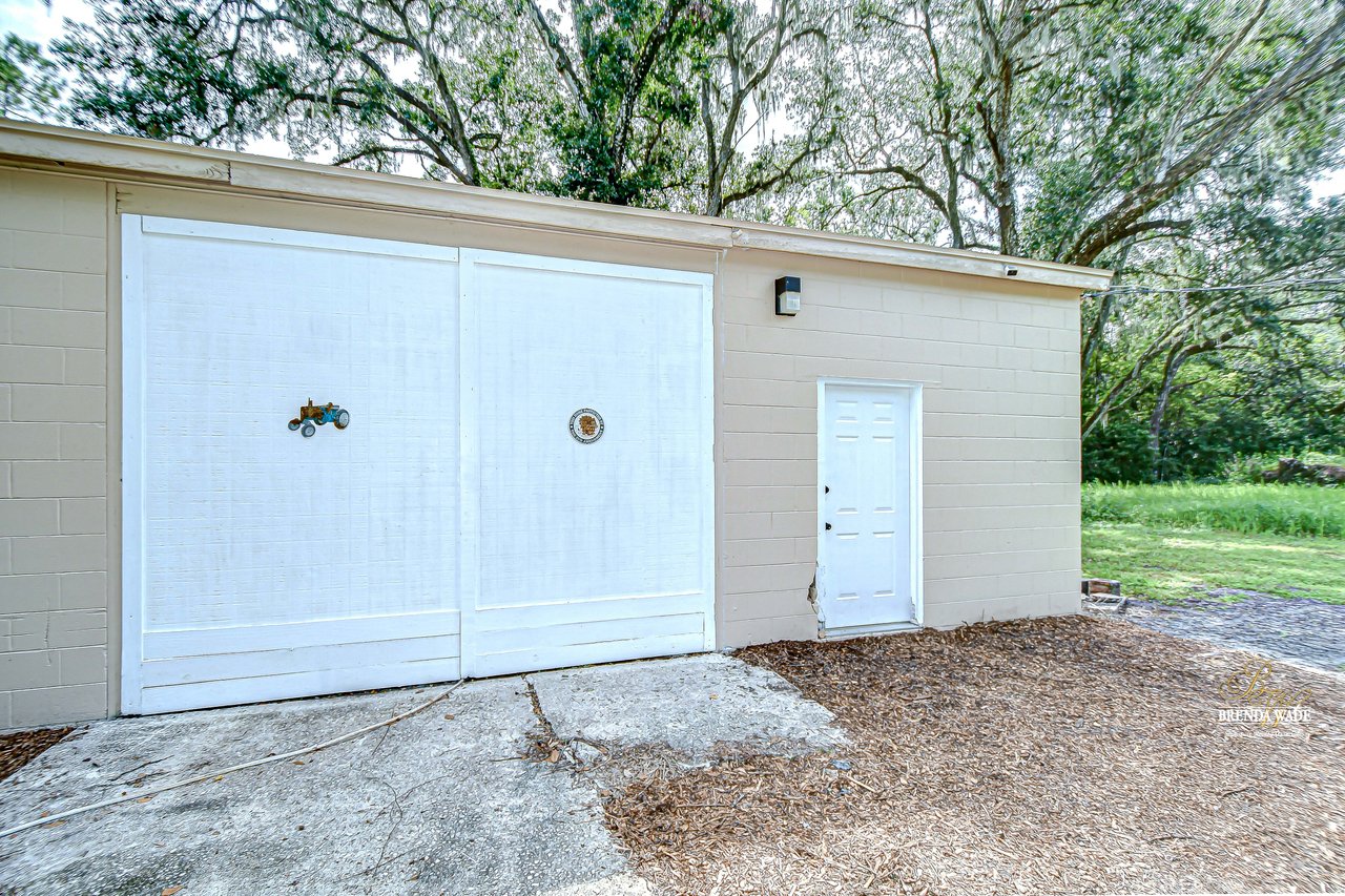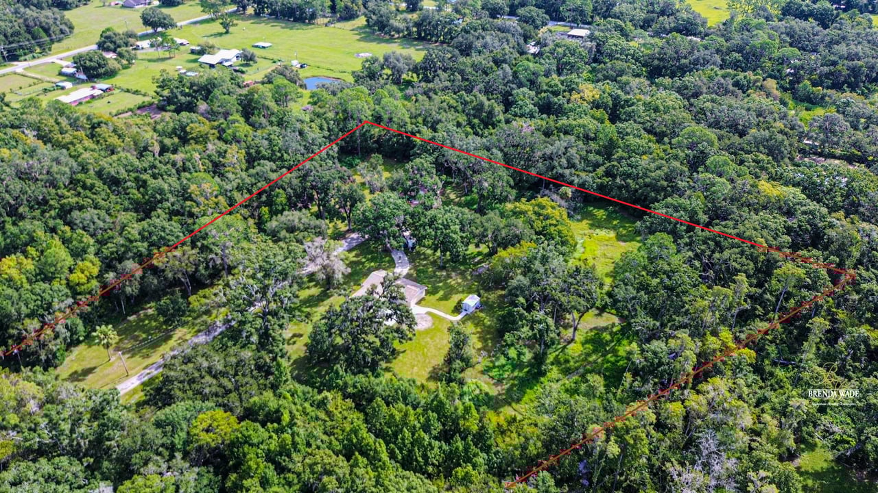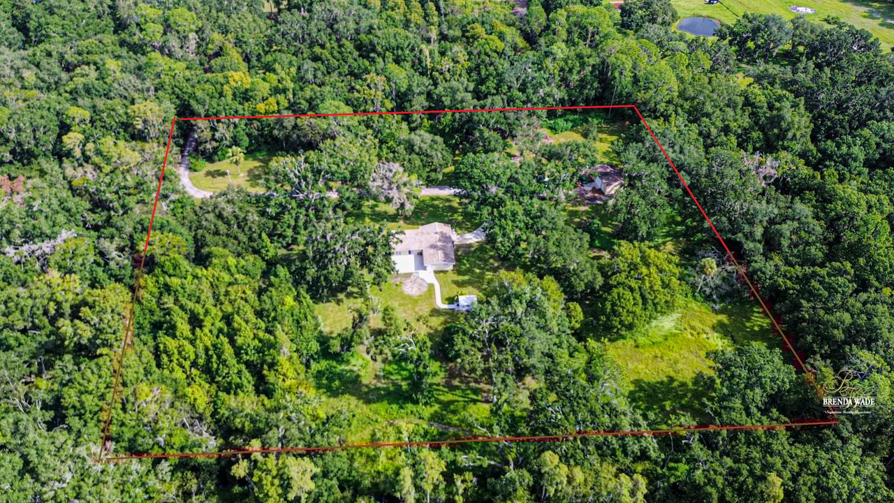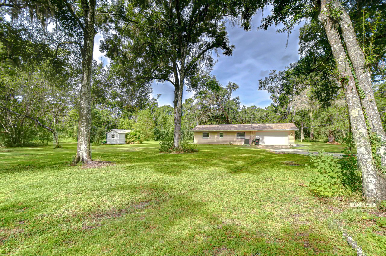 Discover the perfect balance of peace and convenience with this one-of-a-kind property! Nestled on 5.43 acres of stunning land, this home offers the tranquility of country living while keeping you just minutes from major highways, shopping centers, and everyday essentials. This exceptional property is framed by towering oak trees, including a magnificent centuries-old oak that greets you at the entrance--a living landmark that sets the tone for the peace and history found here. Inside, the home shines with brand-new porcelain tile floors (2025) throughout and a designer-updated kitchen boasting black stainless appliances, generous counter space, and plenty of storage. The formal dining room is spacious and inviting, with sliding glass doors that open to tranquil backyard views. The primary suite offers a peaceful escape with its en-suite bath and large walk-in closet, while two additional bedrooms and a full bath sit privately on the opposite side of the home. Recent updates provide comfort and peace of mind: the A/C units for both the home and mancave were replaced in 2025, along with the water heater (2025), ensuring efficient, worry-free living. Outside, the property is full of surprises. The insulated "man cave" workshop is fully equipped with new AC (2025), a dehumidifier, abundant storage, and workspace, plus a double-door entry measuring 9 ft tall by 10 ft wide--perfect for projects big or small. A cozy "she shed" offers another private escape, while the expansive outdoor patio is the perfect place to relax and take in the sights and sounds of nature. Deer, wild turkey, and owls often wander the property, adding to its serene charm. And the best part? No HOA! With 5.43 acres of usable land, you're free to bring your RV, horses, toys, and animals. A 1hp submersible well pump ensures you'll always have more than enough water--truly, "enough to service a small village." You'll also find many old-growth camphor trees, long leaf pines, camphor, cypress, and native (wild) FL orange trees, and an abundance of large shade trees, which not only add beauty and character but also naturally help keep mosquitoes at bay. This property is a rare find--a home, a retreat, and a piece of history all in one. Here, every oak and camphor tree has a story, and now it's ready to be part of yours.