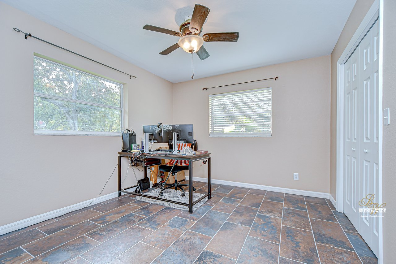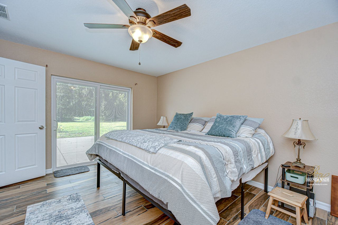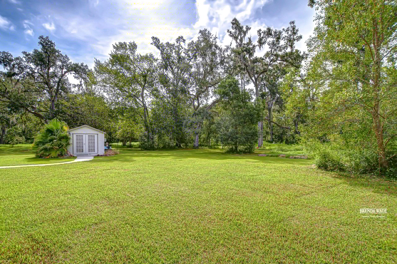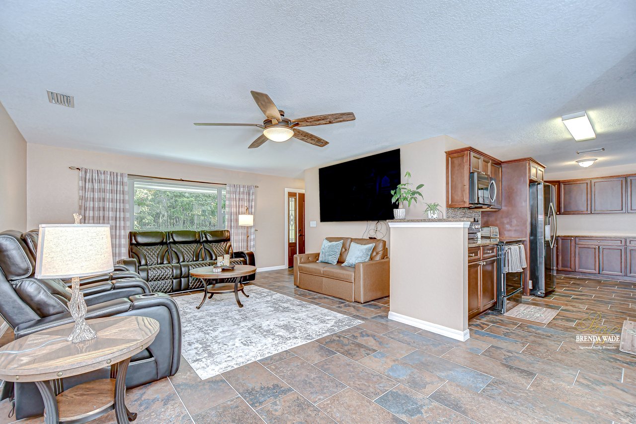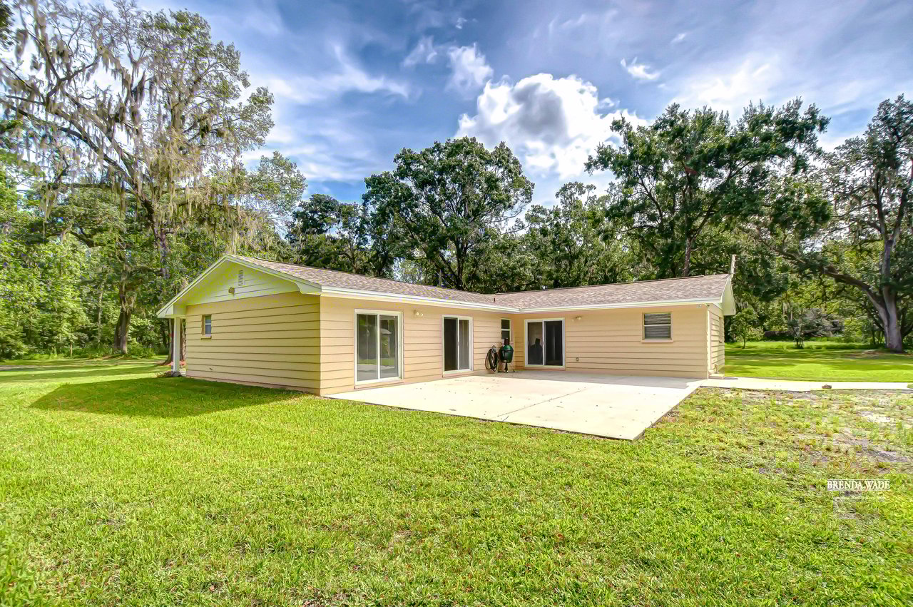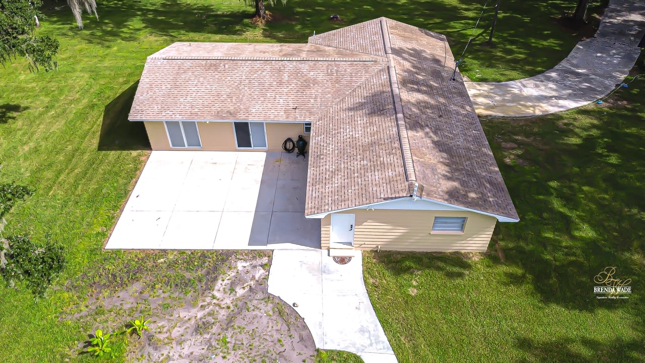 Discover the perfect balance of peace and convenience with this one-of-a-kind property! Nestled on 5.43 acres of stunning land, this home offers the tranquility of country living while keeping you just minutes from major highways, shopping centers, and everyday essentials. This exceptional property is framed by towering oak trees, including a magnificent centuries-old oak that greets you at the entrance--a living landmark that sets the tone for the peace and history found here. Inside, the home shines with brand-new porcelain tile floors (2025) throughout and a designer-updated kitchen boasting black stainless appliances, generous counter space, and plenty of storage. The formal dining room is spacious and inviting, with sliding glass doors that open to tranquil backyard views. The primary suite offers a peaceful escape with its en-suite bath and large walk-in closet, while two additional bedrooms and a full bath sit privately on the opposite side of the home. Recent updates provide comfort and peace of mind: the A/C units for both the home and mancave were replaced in 2025, along with the water heater (2025), ensuring efficient, worry-free living. Outside, the property is full of surprises. The insulated "man cave" workshop is fully equipped with new AC (2025), a dehumidifier, abundant storage, and workspace, plus a double-door entry measuring 9 ft tall by 10 ft wide--perfect for projects big or small. A cozy "she shed" offers another private escape, while the expansive outdoor patio is the perfect place to relax and take in the sights and sounds of nature. Deer, wild turkey, and owls often wander the property, adding to its serene charm. And the best part? No HOA! With 5.43 acres of usable land, you're free to bring your RV, horses, toys, and animals. A 1hp submersible well pump ensures you'll always have more than enough water--truly, "enough to service a small village." You'll also find many old-growth camphor trees, long leaf pines, camphor, cypress, and native (wild) FL orange trees, and an abundance of large shade trees, which not only add beauty and character but also naturally help keep mosquitoes at bay. This property is a rare find--a home, a retreat, and a piece of history all in one. Here, every oak and camphor tree has a story, and now it's ready to be part of yours.