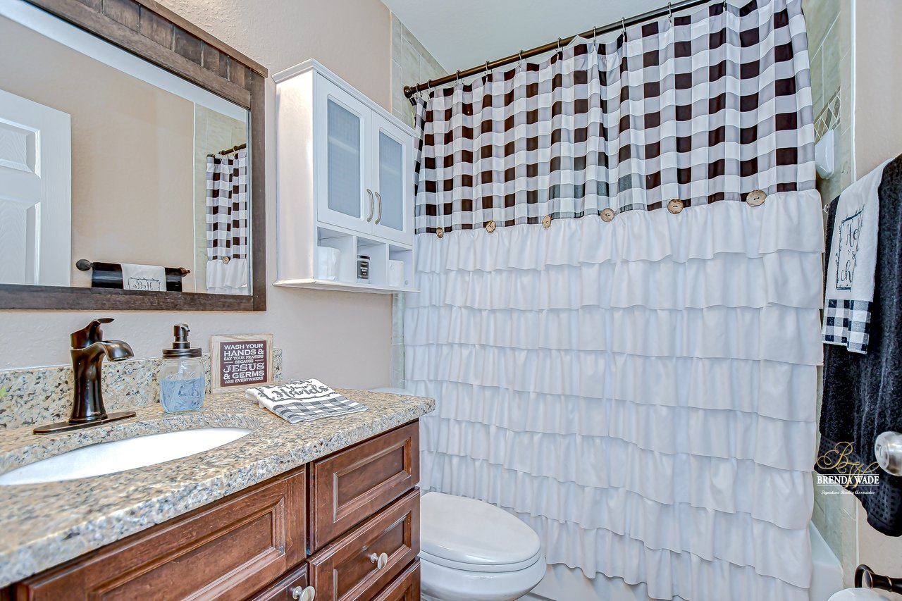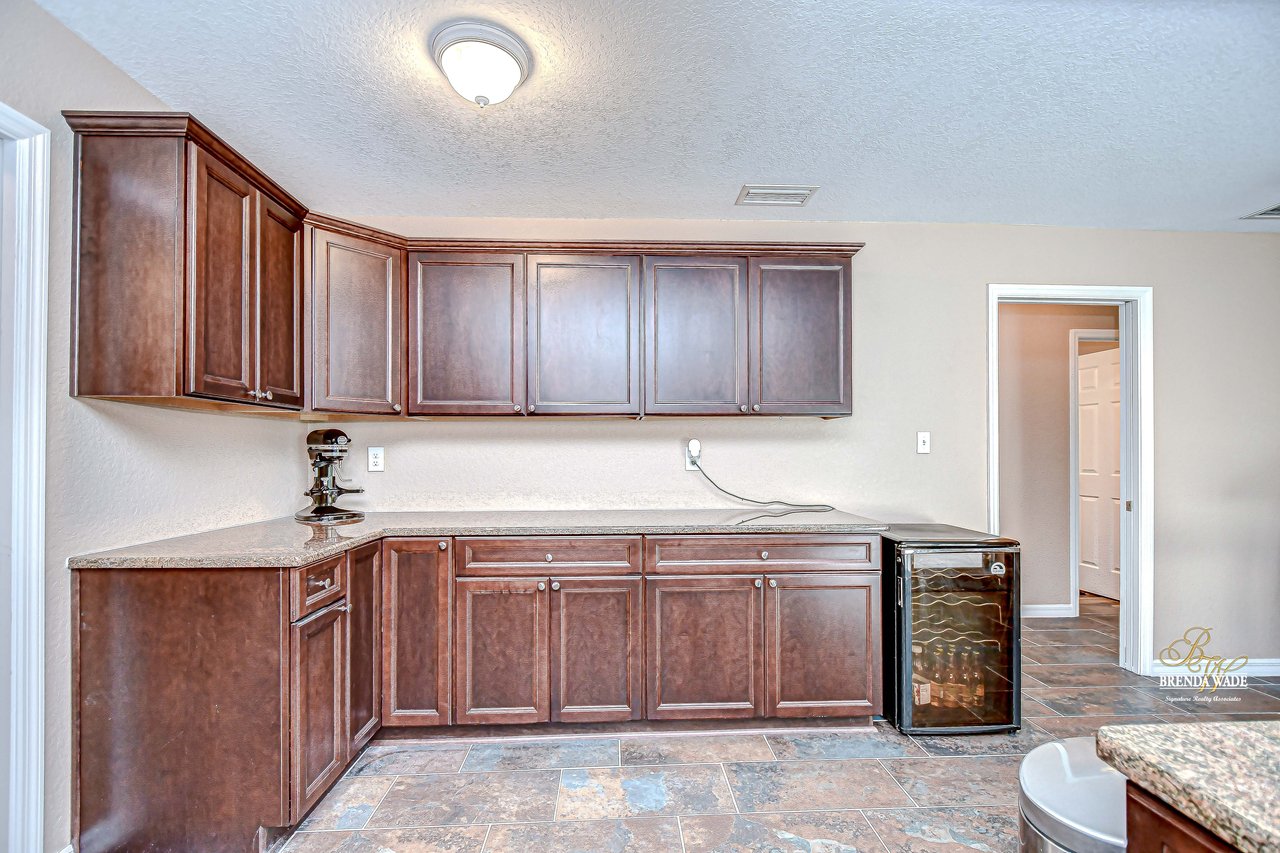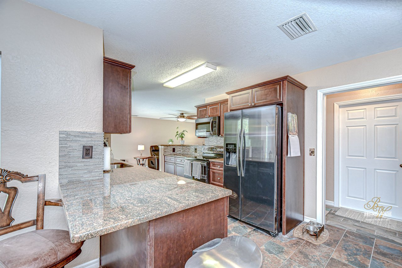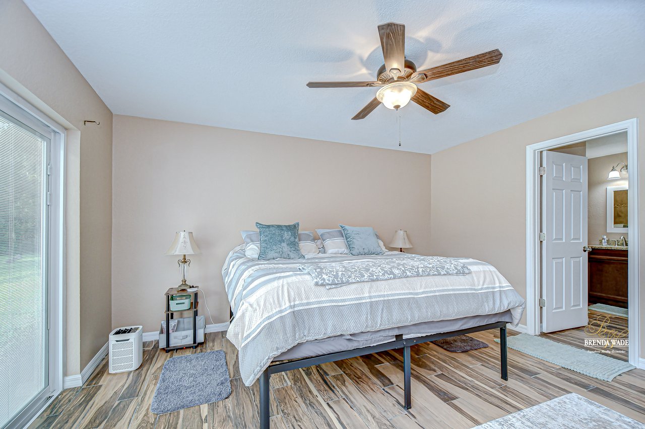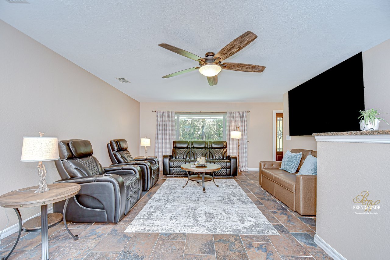 Discover the perfect balance of peace and convenience with this one-of-a-kind property! Nestled on 5.43 acres of stunning land, this home offers the tranquility of country living while keeping you just minutes from major highways, shopping centers, and everyday essentials. This exceptional property is framed by towering oak trees, including a magnificent centuries-old oak that greets you at the entrance--a living landmark that sets the tone for the peace and history found here. Inside, the home shines with brand-new porcelain tile floors (2025) throughout and a designer-updated kitchen boasting black stainless appliances, generous counter space, and plenty of storage. The formal dining room is spacious and inviting, with sliding glass doors that open to tranquil backyard views. The primary suite offers a peaceful escape with its en-suite bath and large walk-in closet, while two additional bedrooms and a full bath sit privately on the opposite side of the home. Recent updates provide comfort and peace of mind: the A/C units for both the home and mancave were replaced in 2025, along with the water heater (2025), ensuring efficient, worry-free living. Outside, the property is full of surprises. The insulated "man cave" workshop is fully equipped with new AC (2025), a dehumidifier, abundant storage, and workspace, plus a double-door entry measuring 9 ft tall by 10 ft wide--perfect for projects big or small. A cozy "she shed" offers another private escape, while the expansive outdoor patio is the perfect place to relax and take in the sights and sounds of nature. Deer, wild turkey, and owls often wander the property, adding to its serene charm. And the best part? No HOA! With 5.43 acres of usable land, you're free to bring your RV, horses, toys, and animals. A 1hp submersible well pump ensures you'll always have more than enough water--truly, "enough to service a small village." You'll also find many old-growth camphor trees, long leaf pines, camphor, cypress, and native (wild) FL orange trees, and an abundance of large shade trees, which not only add beauty and character but also naturally help keep mosquitoes at bay. This property is a rare find--a home, a retreat, and a piece of history all in one. Here, every oak and camphor tree has a story, and now it's ready to be part of yours.