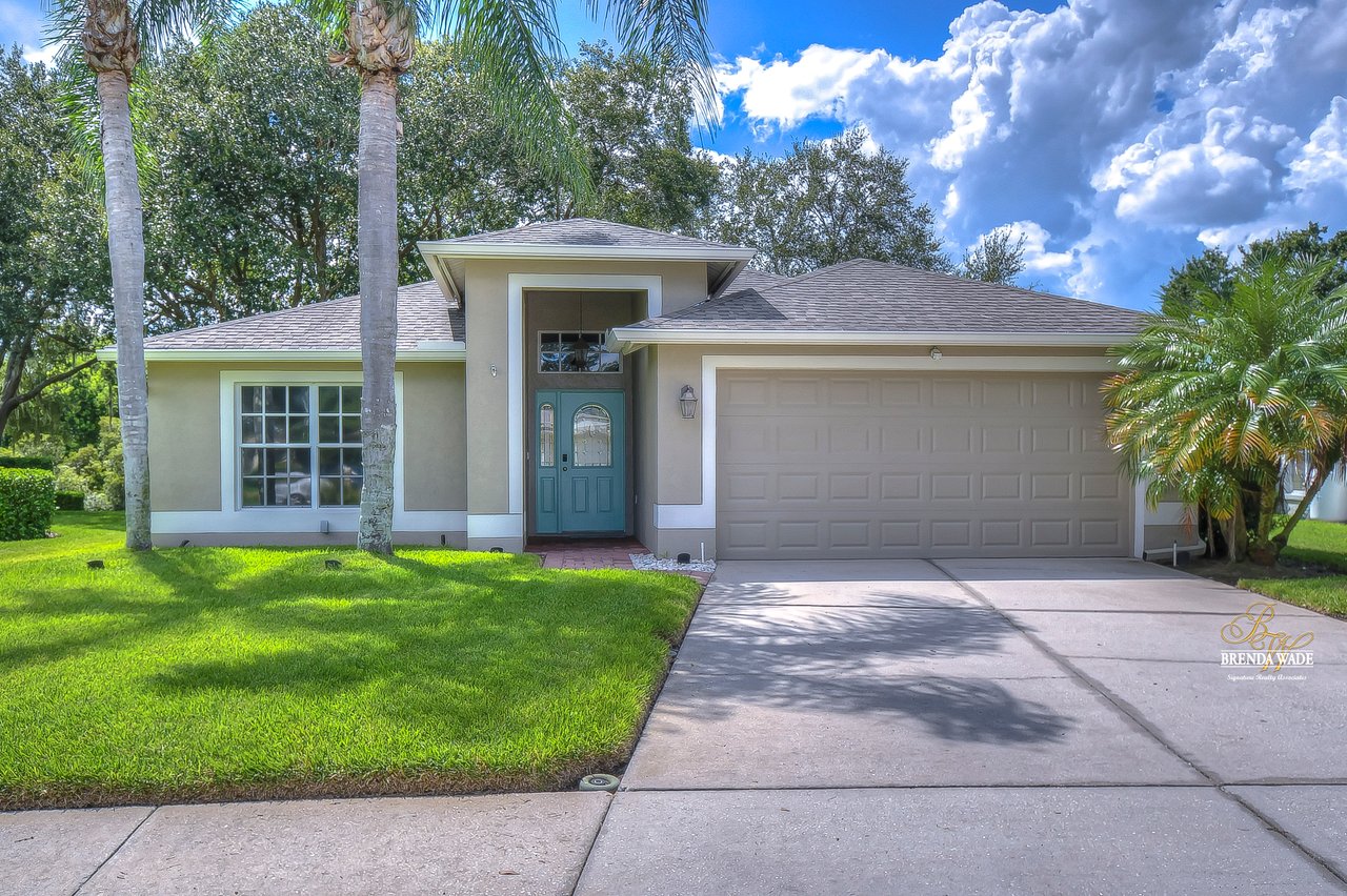 You won’t find ANYTHING quite like this waterfront beauty sitting on an OVERSIZED LOT! This impeccably maintained home located in the highly desirable River Hills Community offers the most tranquil setting with a pond in your backyard surrounded by trees! As soon as you step inside you can appreciate the high ceilings, FRESH neutral paint, beautiful wood tile flooring, and great natural lighting! There was a NEW A/C unit replaced in 2019Once you arrive at the open concept design you will find yourself in awe with the view from your great room of the pond! There is a triple slider and vaulted ceiling allowing this space to really live big! The gourmet kitchen has been updated tastefully with granite countertops, GE Profile stainless appliances, 42-in raised cabinets topped with crown, soft close drawers and cabinets, subway tile backsplash, and a sunny breakfast nook! Invite the whole family over for your next holiday in this spacious dining room with a vaulted ceiling! The owner’s suite showcases that stunning pond view as well as a HUGE walk-in closet, and an en-suite bathroom with dual sinks, a soaking tub, and a walk-in shower! The triple split floorplan features two additional generously sized bedrooms on one side of the home and the fourth bedroom on its own wing with plenty of space for all! Ready to relax?! Step out to the screened and covered lanai and enjoy the Florida weather, the wildlife, and the serene waterfront setting! If you’re looking to grill or have even more space to spend time with loved ones there is a pavered patio next to the screened lanai! New gutters with leaf shields were installed in 2020! The current owners installed a high-tech Vivent Alarm system with keyless entry with the seamless option for you to continue with once you make this home yours! Located in the gated River Hills Golf Club community, this neighborhood offers AMAZING amenities and has some of the best neighbors around! You will LOVE River Hills and everything it offers including a private golf course, Clubhouse, tennis courts, friendly neighbors, and zoned for some of the best schools in Hillsborough County! This spectacular home feels like a brand-new home it has been so well cared for and now it's ready for its new owners! If you’re lucky, it can be you!