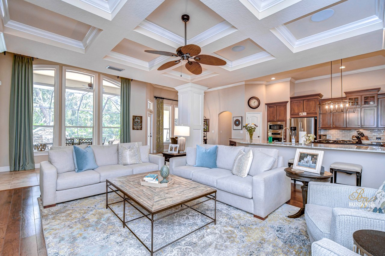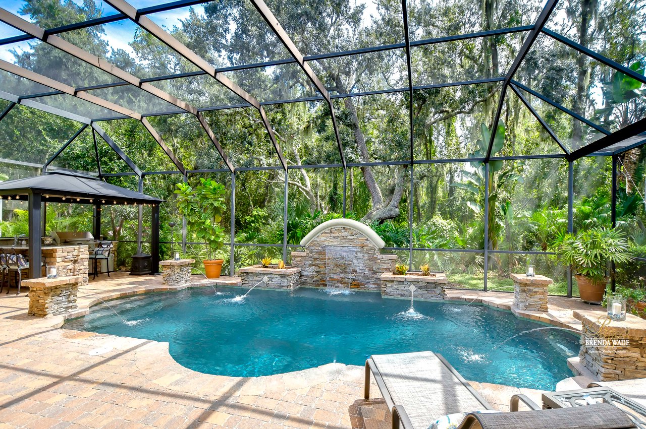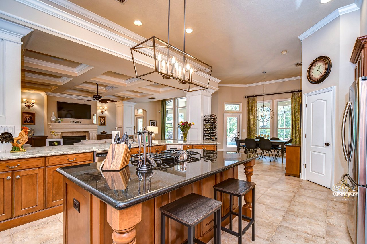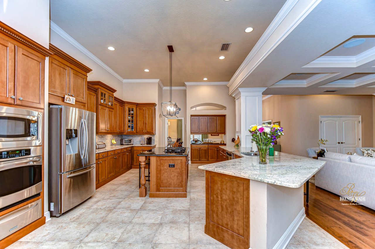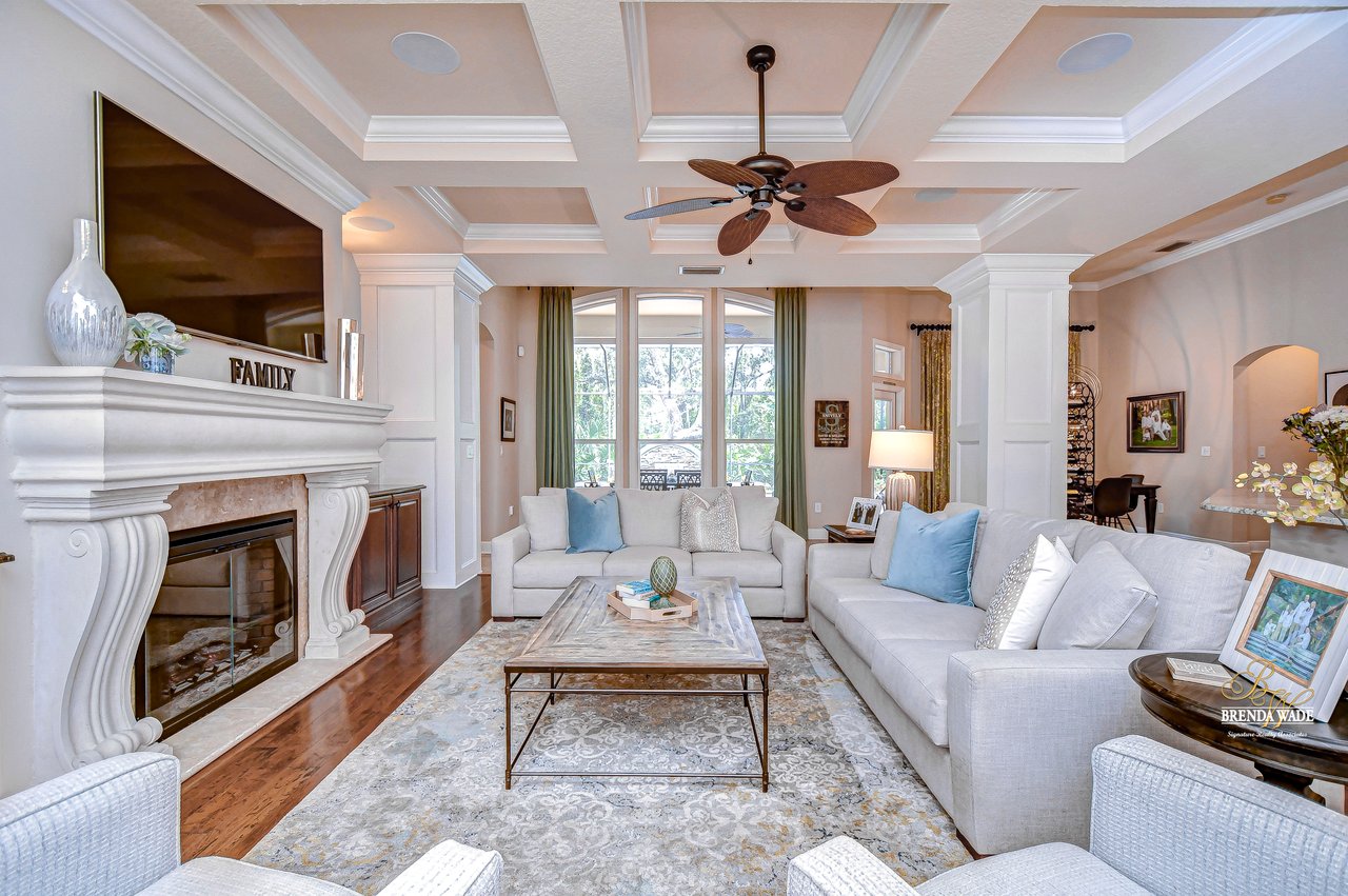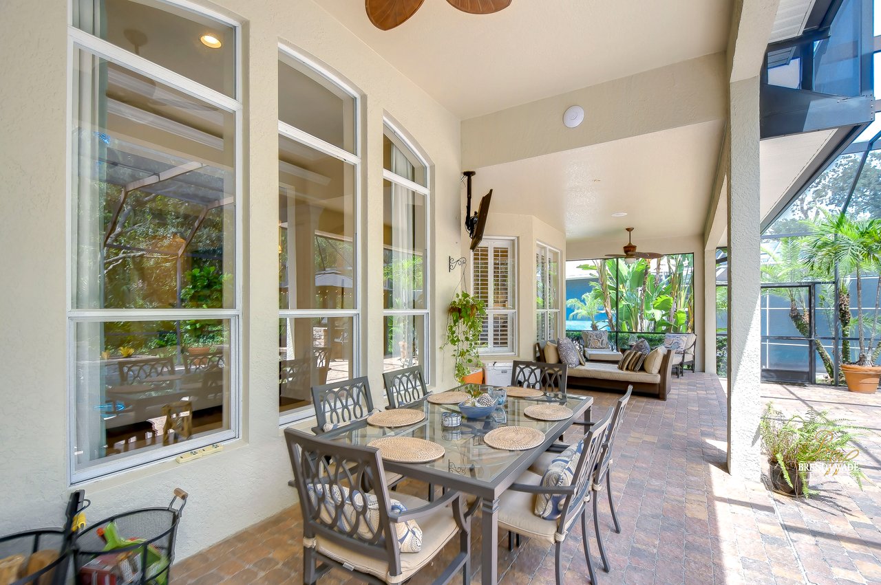 You do not want to miss out on this FANTASTIC opportunity! This home has been well maintained, and updated, and now ready for you to call it yours! Located in the highly desirable Gated Tern Wood Fishhawk Ranch community, this home is zoned for some of the BEST schools in the county! You will fall head over heels from the moment you arrive! The picture-perfect curb appeal features manicured landscaping, a glass front door with matching sidelights, decorative shutters, pavered drive, and a beautiful front porch! This home features a newer roof (2023), two updated AC units (one replaced this year), fresh interior & exterior paint, a central vacuum system, a tankless water heater, and a detached in-law suite complete with a full kitchen and bath. The grand and extended front porch welcomes you, setting the tone for the elegance that awaits inside. Step through the foyer into a world of refined details, where soaring ceilings and impeccable finishes abound. The home features crown molding in every room, stunning custom trim work, and plantation shutters. To your left, beautiful glass French doors open to an expansive office space, perfect for working from home. Adjacent is a spacious formal dining room, complete with a built-in, custom pass-through hutch for effortless entertaining. Take a few more steps to discover the stunning kitchen offering a massive granite peninsula, 42" maple cabinetry with dentil crown molding, a built-in ice maker, a warming drawer, and a large island with a gas cooktop - a chef's dream come true. The great room dazzles with an elegant coffered ceiling, a limestone mantle fireplace, and breathtaking views of the pool and conservation area. The primary suite is a private sanctuary, offering two oversized custom walk-in closets and a luxurious, en-suite featuring a seamless glass shower, travertine tile, jetted tub, and split vanities with extra storage. Two additional bedrooms on the opposite of the home sit off the bonus room. A fourth bedroom located at the front of the home features stunning double French doors to the patio- The view is beautiful! The home also includes a detached 800 SqFt in-law suite/guest house with a full kitchen, sitting area, two bathrooms, washer & dryer hook-up, private entrance, and porch- it's stunning! Step outside the main house to the expansive lanai, designed with entertaining in mind. It features durable Belgard pavers, both sun-soaked and shaded areas, and a fully equipped outdoor kitchen. The heated pool, complete with captivating water features, promises endless enjoyment. This grand home is filled with luxurious features and thoughtful conveniences, too many to list! This community is one-of-a-kind with resort-style pools at the aquatic center, miles of trails, a skate park, a fitness center, park square, and zoned for the TOP schools in Hillsborough County! Schedule your private tour today and discover this remarkable property before it's gone!