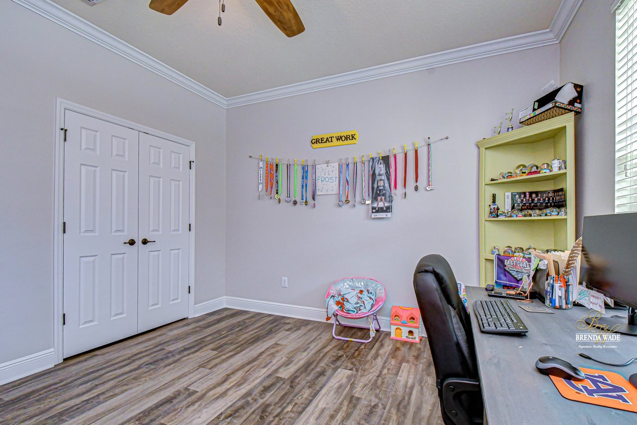 Fall in love with this spacious, one-story gem just two blocks from the community pool and only a quarter mile from both Stowers Elementary School and Barrington Middle School! Thoughtfully designed with a split floor plan, the secluded primary suite offers a peaceful retreat, while the second and third bedrooms are conveniently located near the front of the home with a shared hall bathroom. The fourth bedroom is tucked in the center of the home with its own private en-suite--perfect for guests or multigenerational living. The gourmet kitchen is a true centerpiece, featuring 42" cabinetry, granite countertops, an oversized center island, stainless steel appliances, and a walk-in pantry. Crown molding throughout the main living areas adds an elegant touch, while recent updates--including interior and exterior paint completed in 2024--give the home a fresh, modern feel. The primary suite showcases a spa-like en-suite with a frameless shower, garden tub, and a spacious walk-in closet. Designed with efficiency and comfort in mind, this home features a new AC unit (2024), gas tankless water heater, and double-pane windows to help keep utility costs low. Step outside to enjoy the inviting front porch or unwind by the gas fire pit on the extended, covered, and paved lanai--perfect for relaxing or entertaining year-round. Residents of FishHawk West enjoy resort-style amenities including the Lake House, dog park, miles of walking and biking trails, a community pool and splash park, fitness center, playgrounds, and year-round events on the Central Park lawn. This is more than just a home--it's a lifestyle!