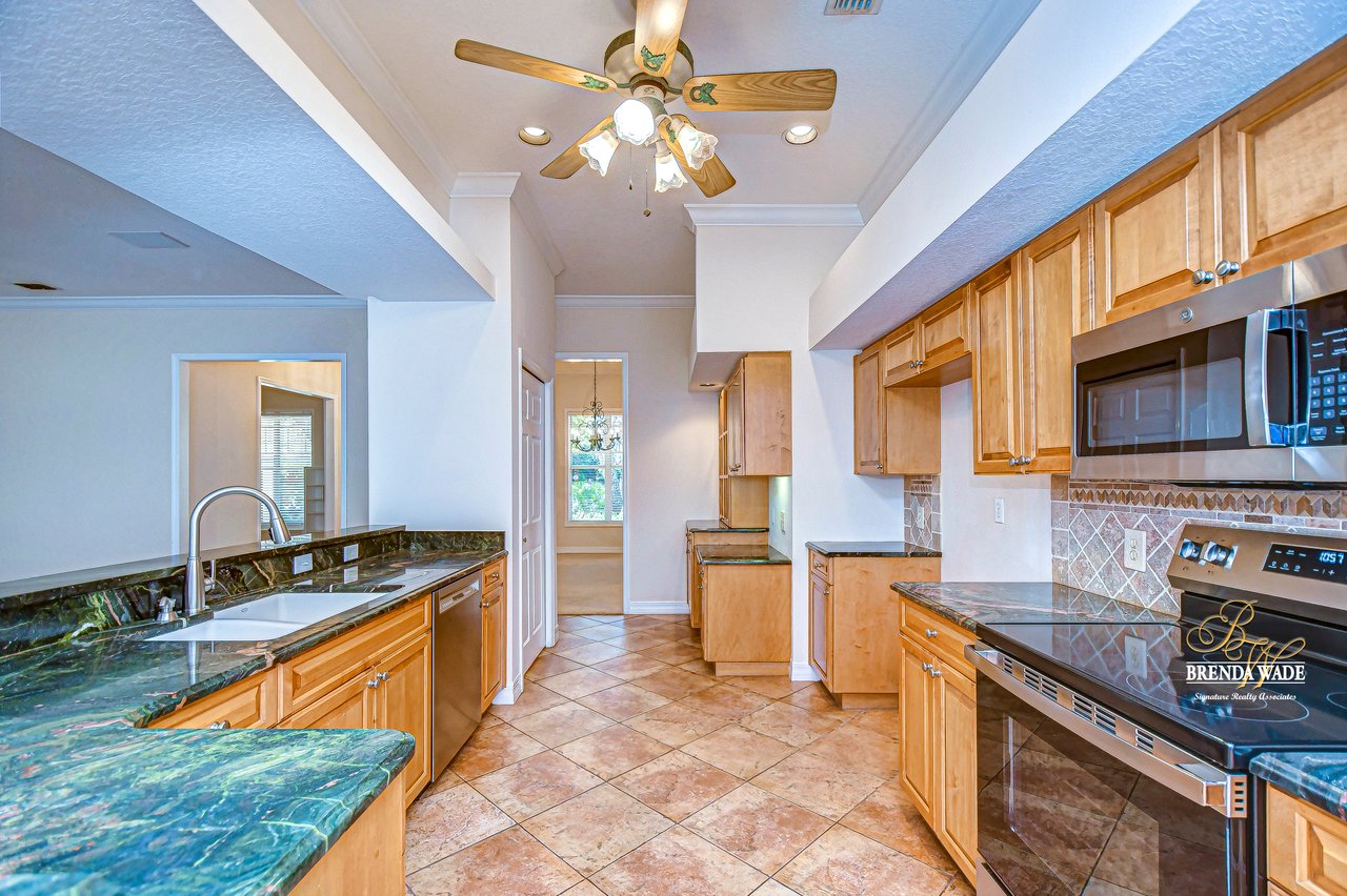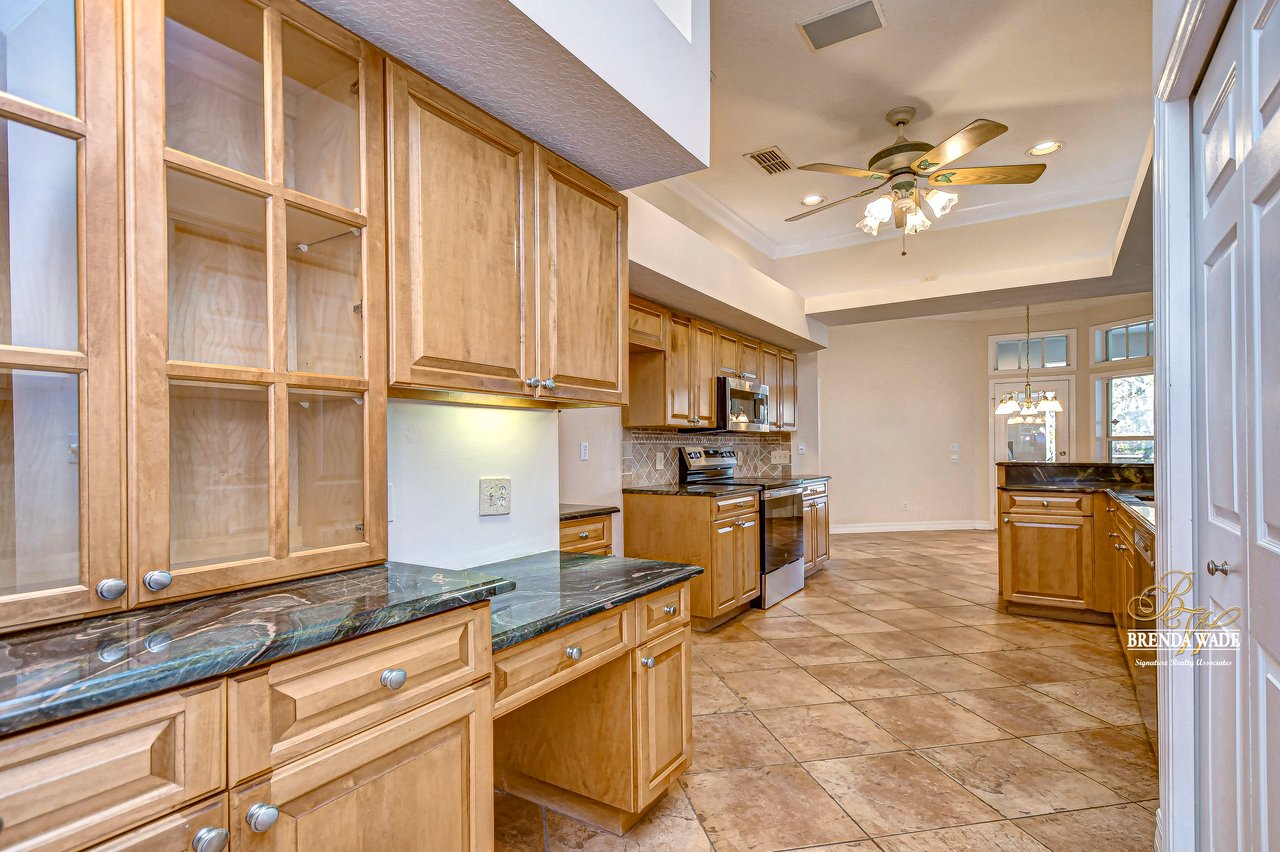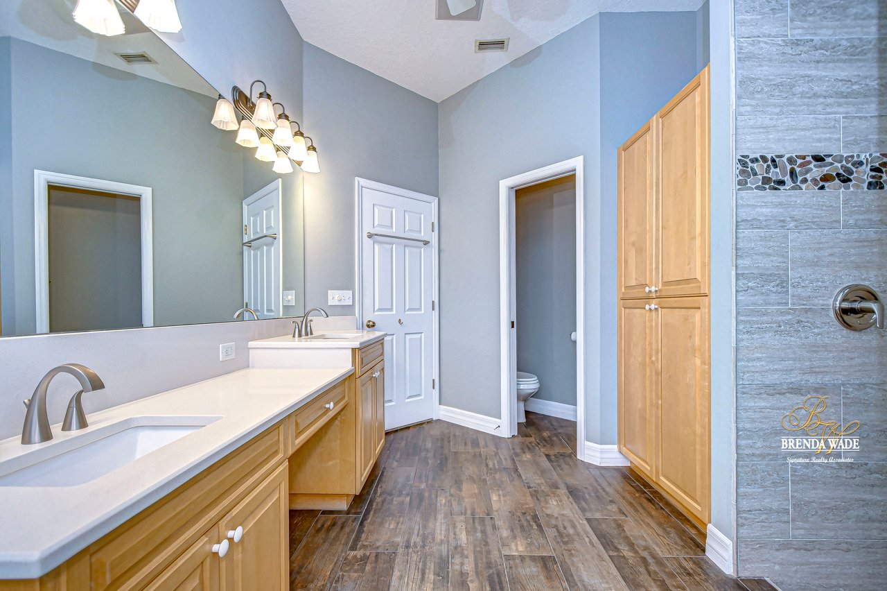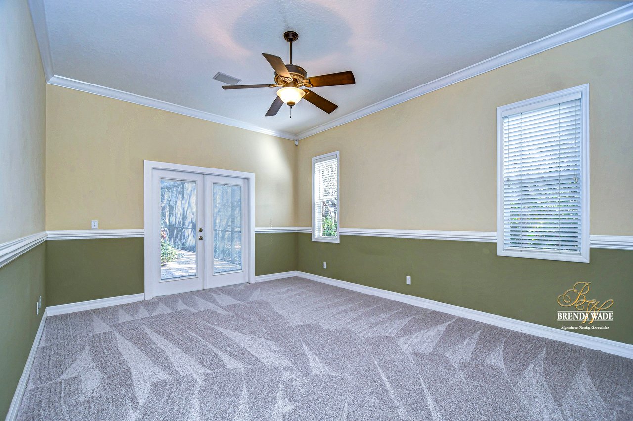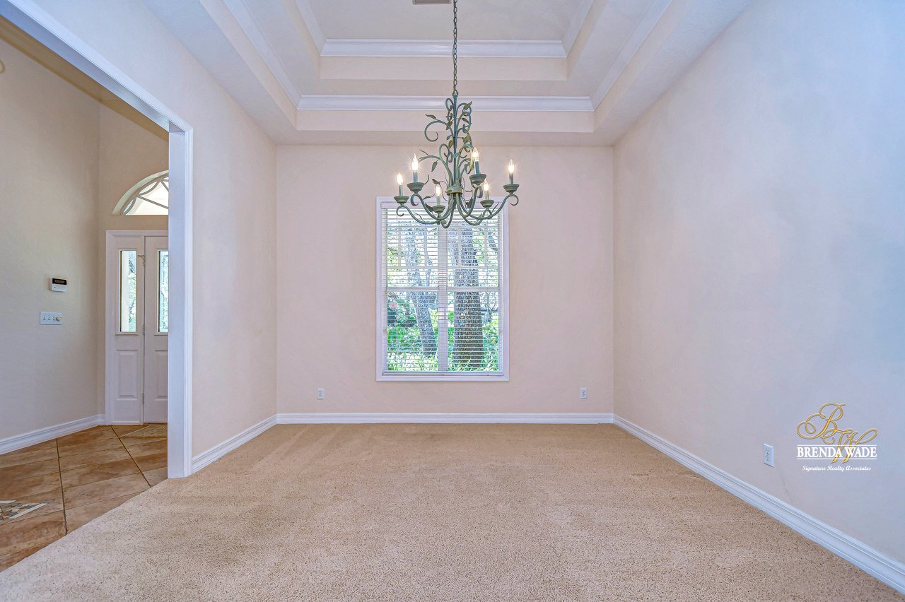 One or more photo(s) has been virtually staged. Welcome to Your Dream Home in Fish Hawk Trails! Nestled on an oversized pie-shaped lot in the highly desirable Fish Hawk Trails community, this exquisite home offers a perfect blend of elegance, privacy, and modern convenience. With a low-maintenance, private wooded lot, this property provides a true retreat. Step inside to a grand foyer that opens to the formal dining room and a versatile flex space adorned with custom barn doors and built-ins, perfect for a home office, playroom, music room, or formal living area. Beautiful crown molding graces every room, adding timeless sophistication throughout the home. The spacious great room is an entertainer's dream, featuring built-ins, a wood-burning fireplace, and surround sound, all while offering breathtaking views of the backyard oasis and pond-style heated saltwater pool. The adjacent kitchen, showcases gorgeous granite countertops, rich wood cabinetry, bar seating, a butler's pantry, and an expansive sunlit breakfast nook. Retreat to the luxurious primary suite, where private lanai access, a custom double-entry walk-in closet with built-in organization, and a foundation-embedded safe create the ultimate sanctuary. The en-suite bath offers a double vanity, soaking tub, and stunning walk-in shower. Two additional generously sized bedrooms on the opposite side of the home share a full bath, which conveniently doubles as a pool bath. A fourth bedroom near the primary suite makes for a perfect guest retreat with easy access to a third full bath. The expansive extended lanai is built for both relaxation and entertainment, featuring a built-in grill, which is ideal for hosting BBQs. The heated saltwater pool is surrounded by lush tropical landscaping within the lanai. Major upgrades include a brand-new pool cage (2023) and a pool heater (2024), ensuring years of enjoyment. Beyond the lanai, a sprawling fenced yard offers plenty of space to unwind, making this home a nature lover's paradise. Designed with convenience in mind, this home also features custom shelving and storage racks in the garage for ultimate organization. Don't miss this rare opportunity to own a private, low-maintenance retreat in Fish Hawk Trails.