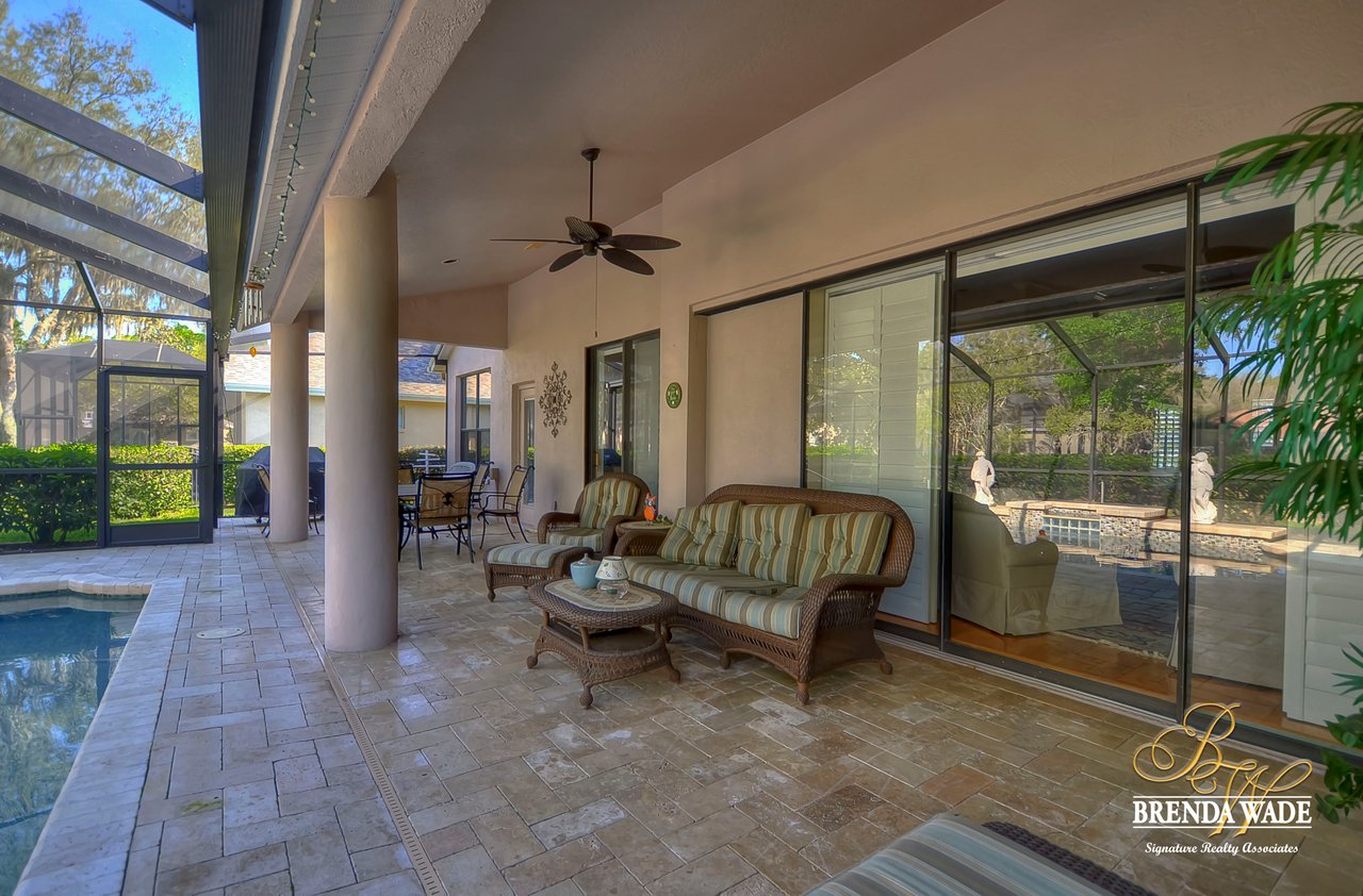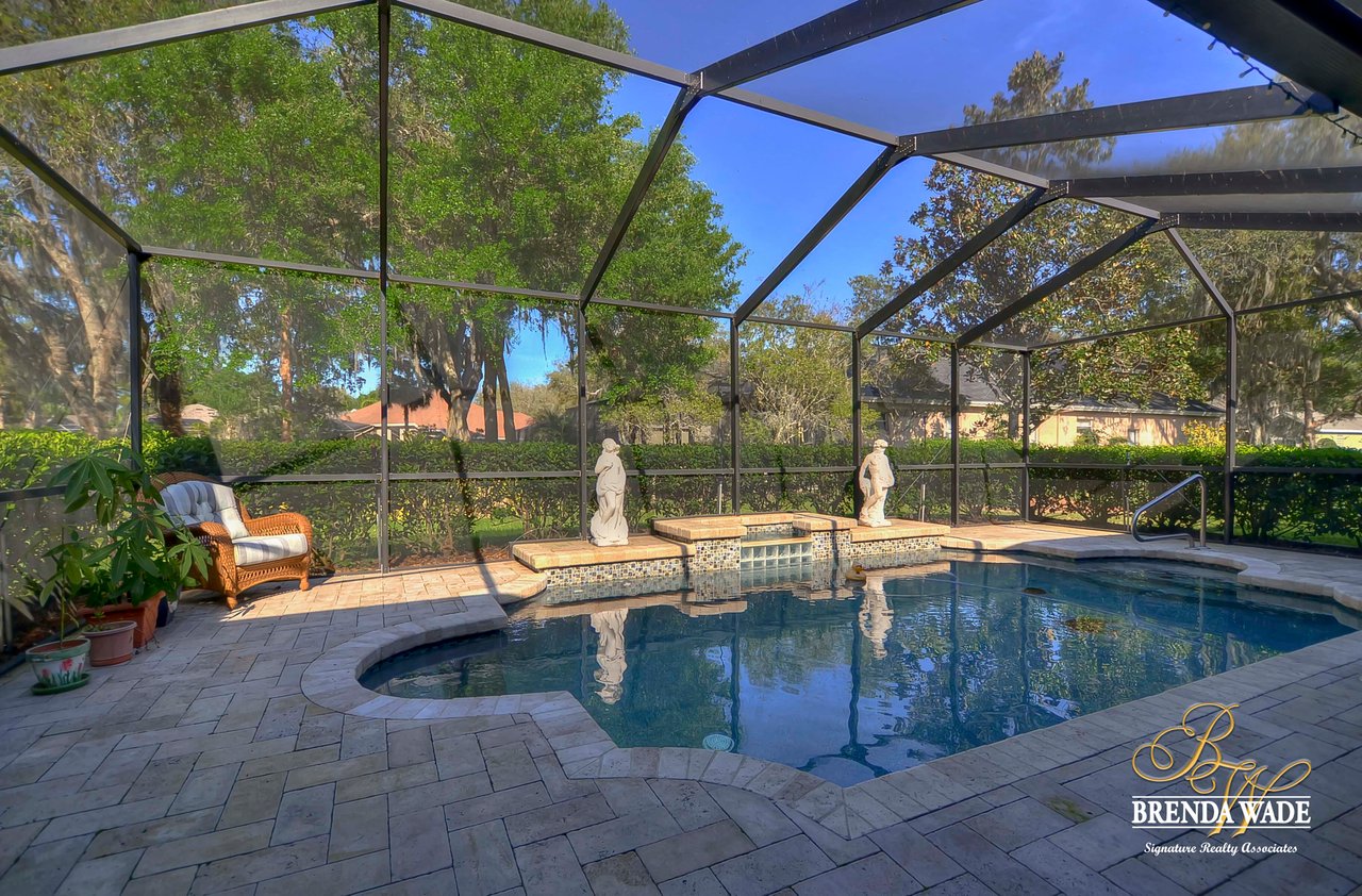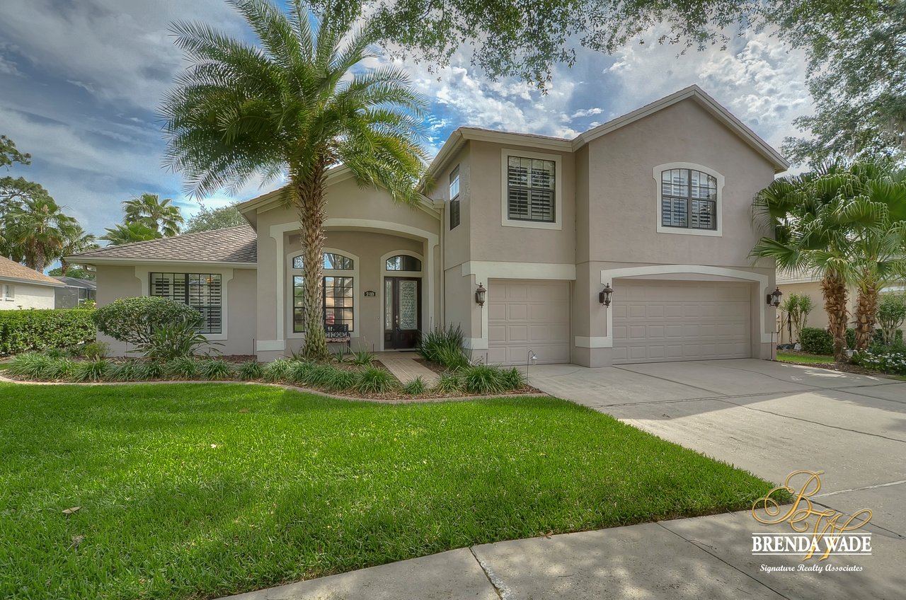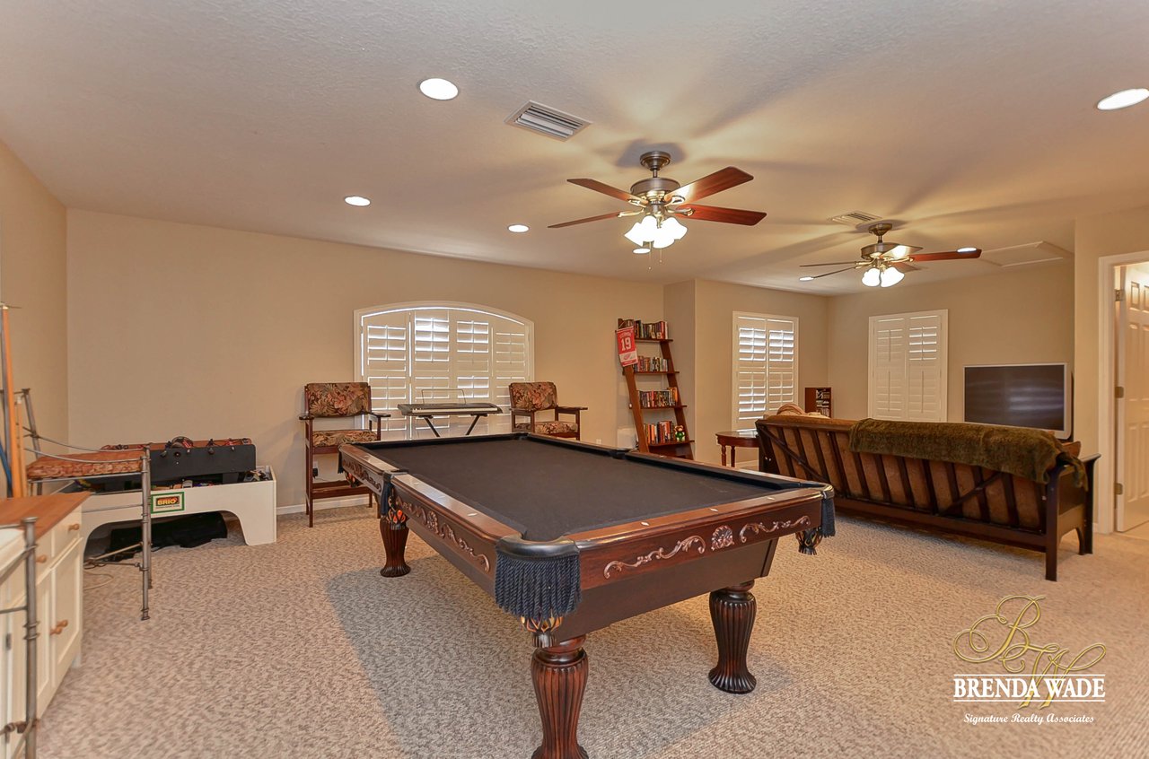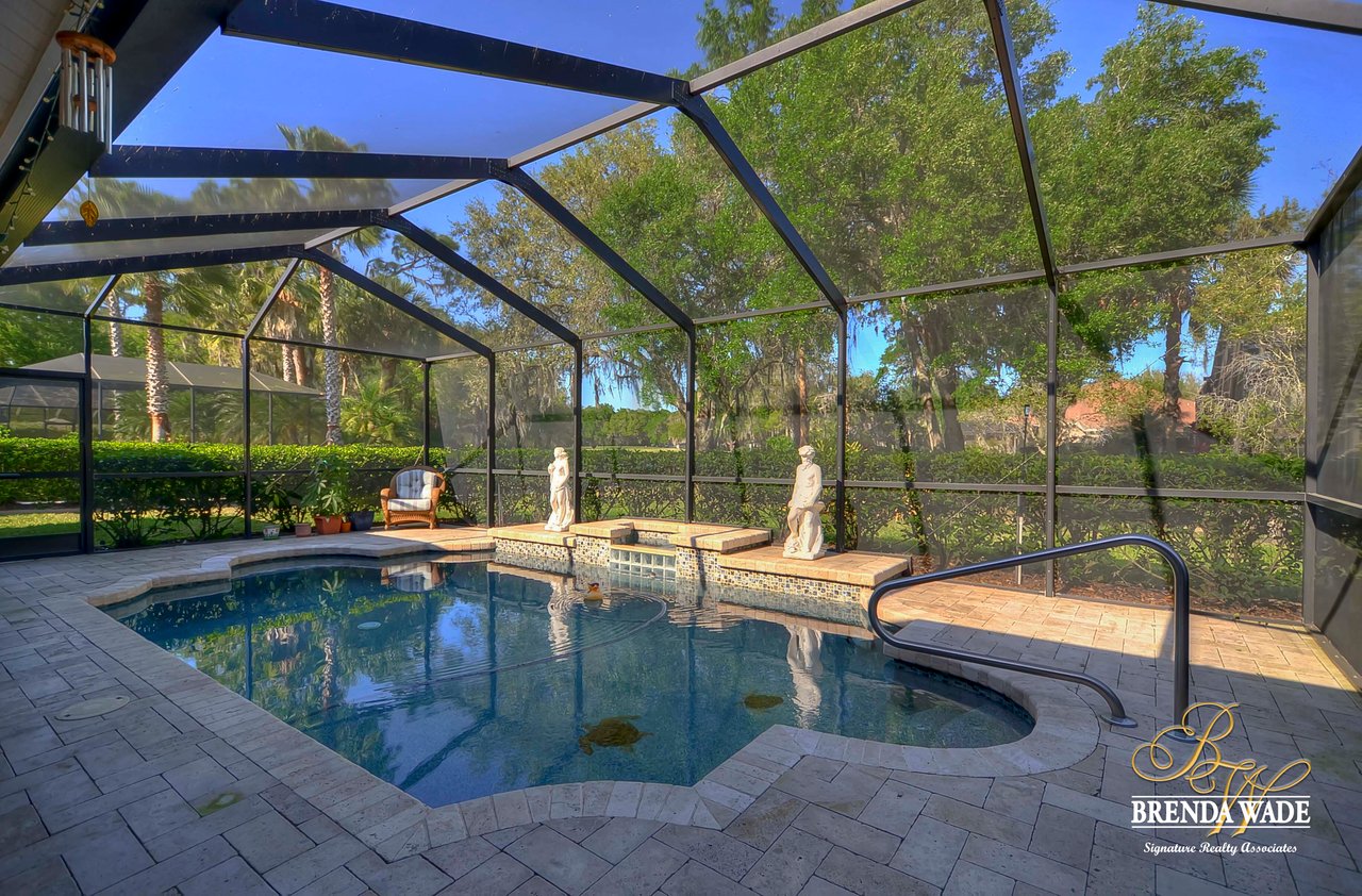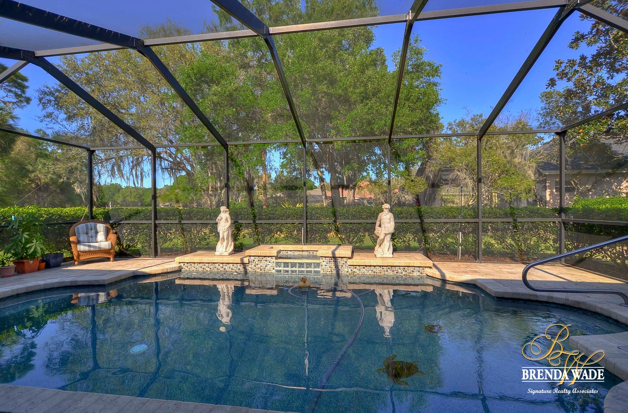 This one is a Showstopper! Stunning 4 bedroom, decorator’s dream home is located on one of the best lots in the coveted River Hills community! Sitting on a prestigious lot, overlooking the golf course’s 14th hole and featuring beautiful updates throughout! Enjoy all the beauty of this community with No CDD fee and access to a marvelous clubhouse! Inside awaits a large formal dining room with column accents and rich wood flooring throughout! More features that are displayed throughout the home include: crown molding, plantation shutters, beautiful lighting and fans, and neutral paint colors! Moving forward is a large great room overlooking the pool and golf course and featuring a large built in entertainment center with fireplace and bookshelves. Imagine all the sweet memories to be made in this space! Open to the great room is a bright and airy kitchen with granite countertops, white 42” cabinets with crown, stainless appliances, diagonal tile backsplash, and sunny eat-in nook area! The master suite is secluded on one side of the home with private exit to the lanai, built in speakers, and Updated en-suite with garden tub, New vanity sinks, and walk-in closet; this is a true retreat! On the opposite side of the home you will find 3 more bedrooms and two more full baths. One of the bedrooms has a pool bath attached, great for guests! Upstairs is a large bonus with attractive ceiling fans, plantation shutters, plus attached bath! This space would make a great in-law suite, guest retreat or college student space! More Updates Include: Both Air Conditioning replaced in 2014 and 2019, guest and pool bath updated in 2014! An oasis awaits you on the large pavered lanai boasting plenty of covered seating and sparkling pool, refinished with PebbleTec in 2010! Come take a look before it’s gone!