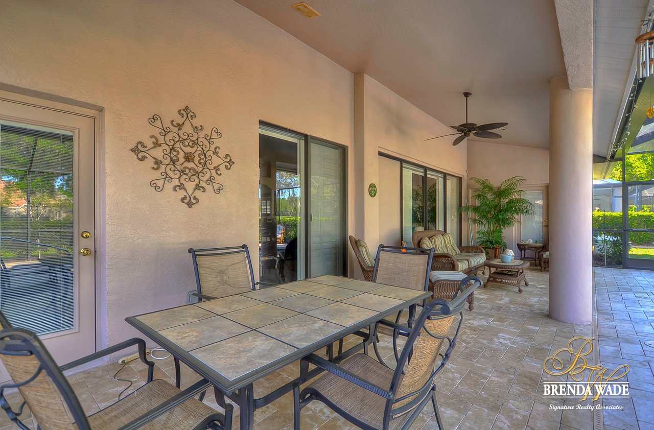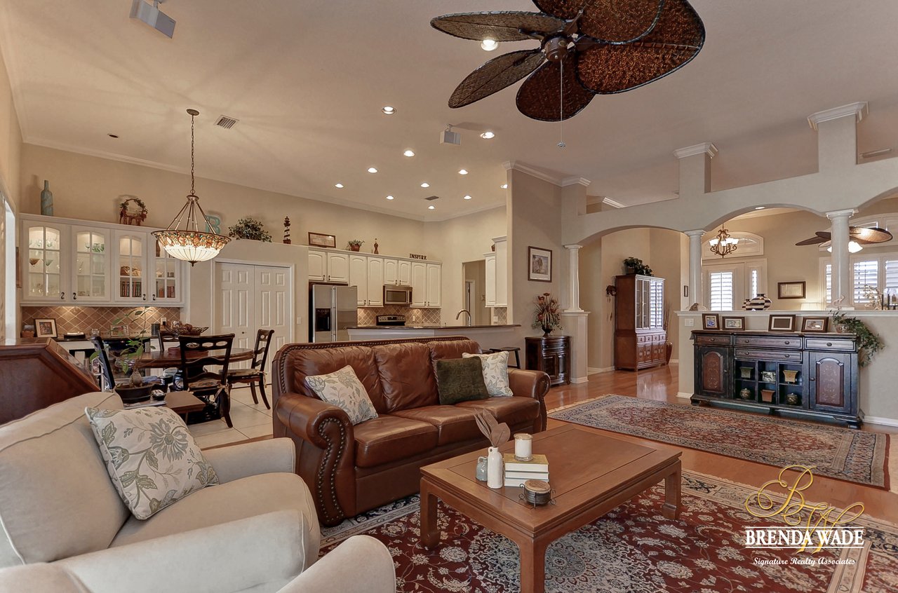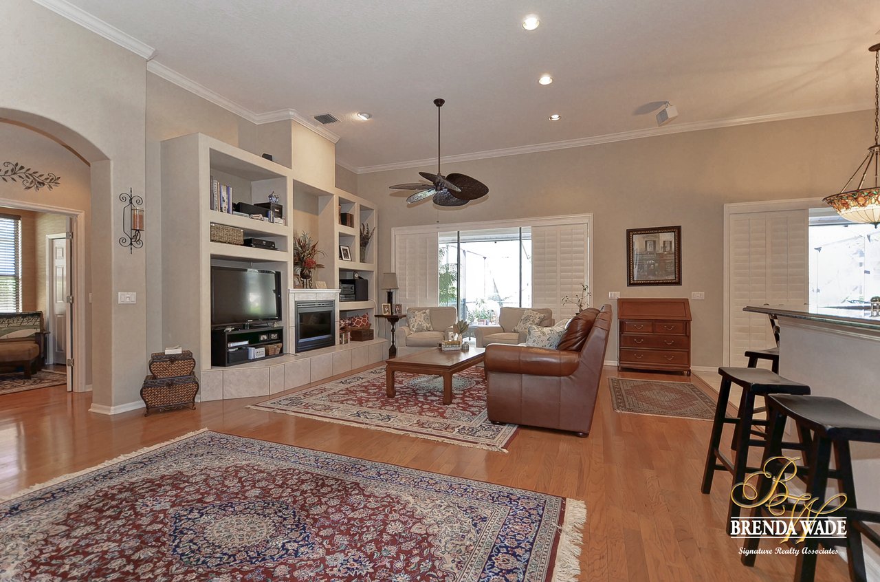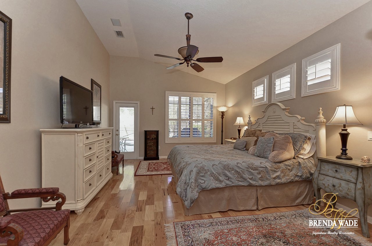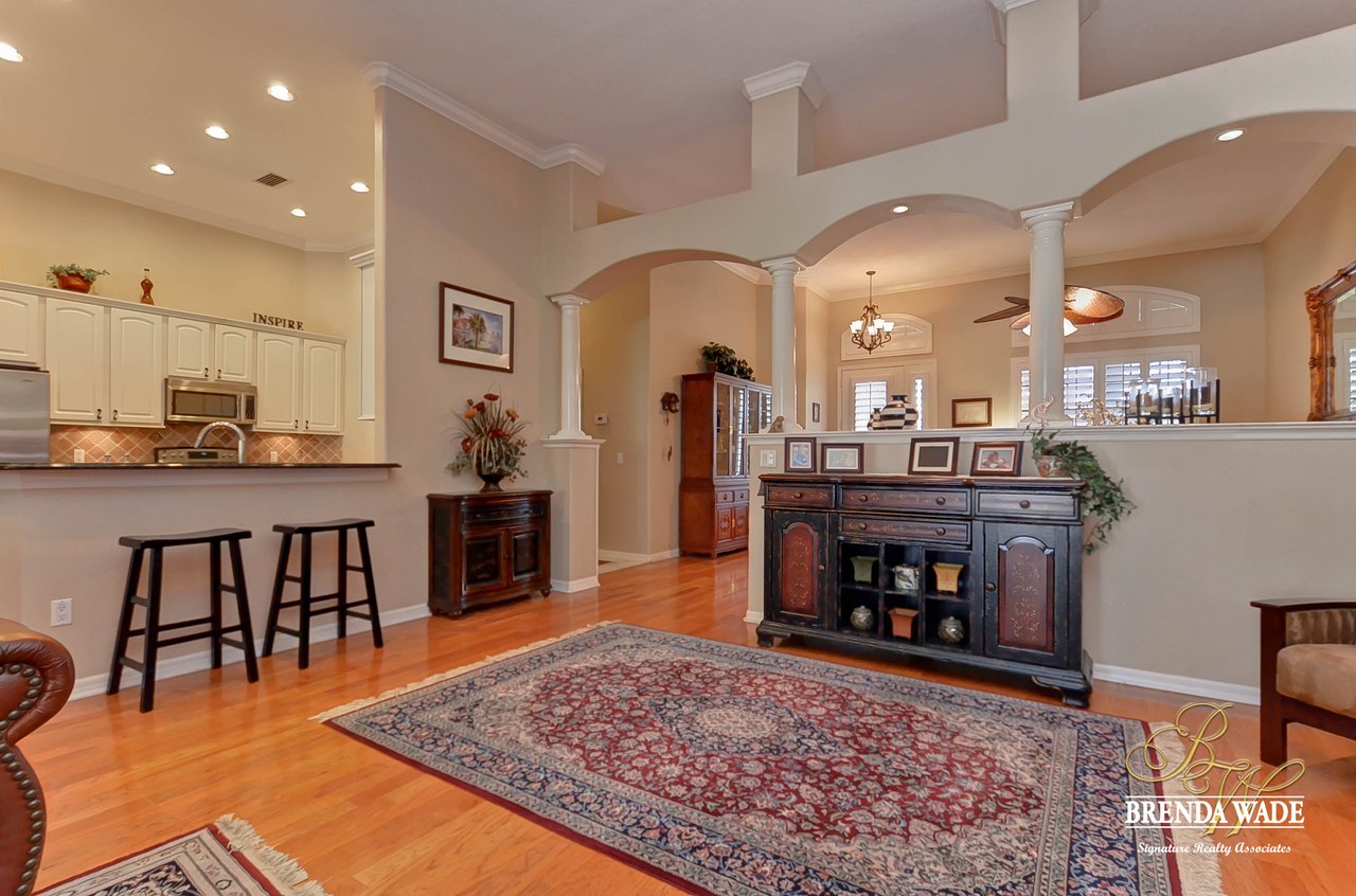 This one is a Showstopper! Stunning 4 bedroom, decorator’s dream home is located on one of the best lots in the coveted River Hills community! Sitting on a prestigious lot, overlooking the golf course’s 14th hole and featuring beautiful updates throughout! Enjoy all the beauty of this community with No CDD fee and access to a marvelous clubhouse! Inside awaits a large formal dining room with column accents and rich wood flooring throughout! More features that are displayed throughout the home include: crown molding, plantation shutters, beautiful lighting and fans, and neutral paint colors! Moving forward is a large great room overlooking the pool and golf course and featuring a large built in entertainment center with fireplace and bookshelves. Imagine all the sweet memories to be made in this space! Open to the great room is a bright and airy kitchen with granite countertops, white 42” cabinets with crown, stainless appliances, diagonal tile backsplash, and sunny eat-in nook area! The master suite is secluded on one side of the home with private exit to the lanai, built in speakers, and Updated en-suite with garden tub, New vanity sinks, and walk-in closet; this is a true retreat! On the opposite side of the home you will find 3 more bedrooms and two more full baths. One of the bedrooms has a pool bath attached, great for guests! Upstairs is a large bonus with attractive ceiling fans, plantation shutters, plus attached bath! This space would make a great in-law suite, guest retreat or college student space! More Updates Include: Both Air Conditioning replaced in 2014 and 2019, guest and pool bath updated in 2014! An oasis awaits you on the large pavered lanai boasting plenty of covered seating and sparkling pool, refinished with PebbleTec in 2010! Come take a look before it’s gone!