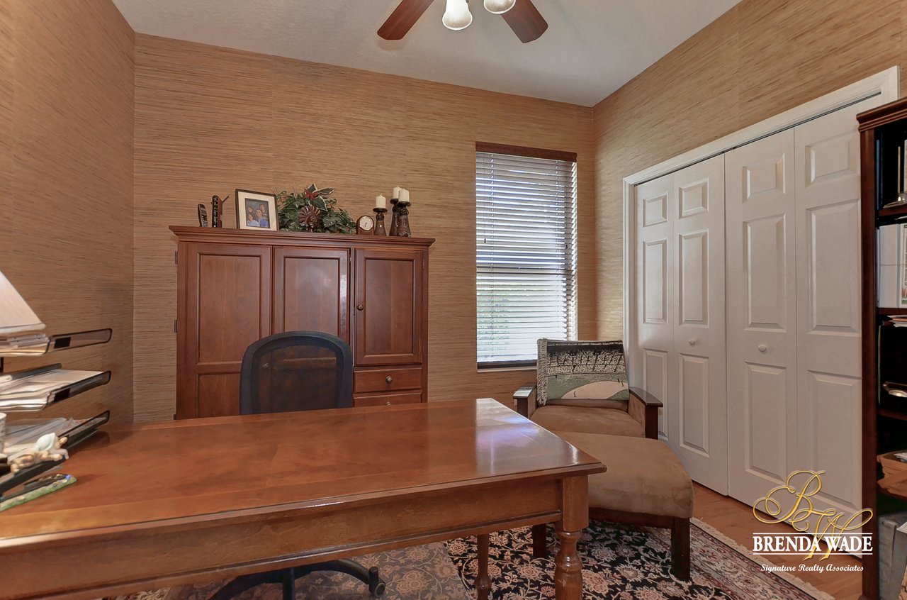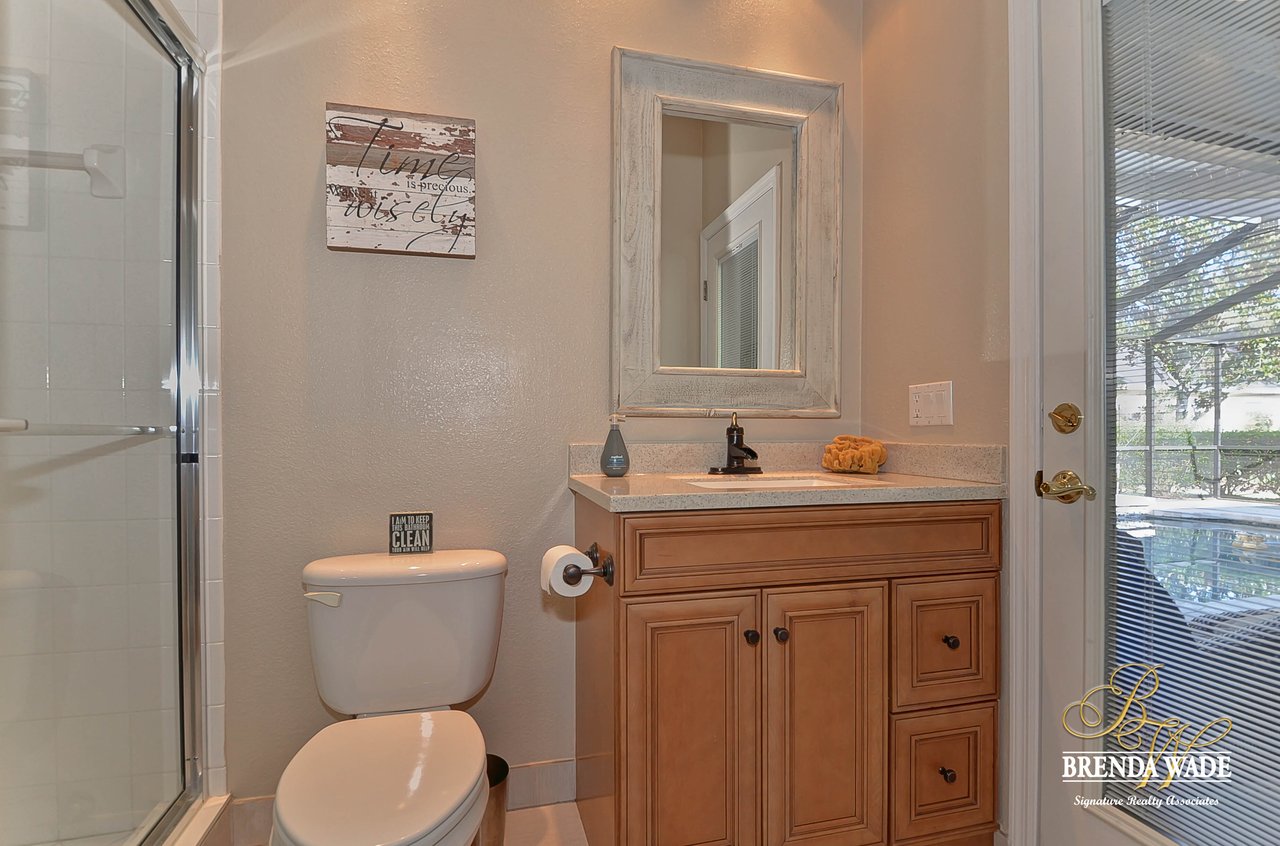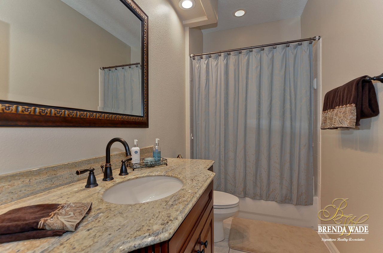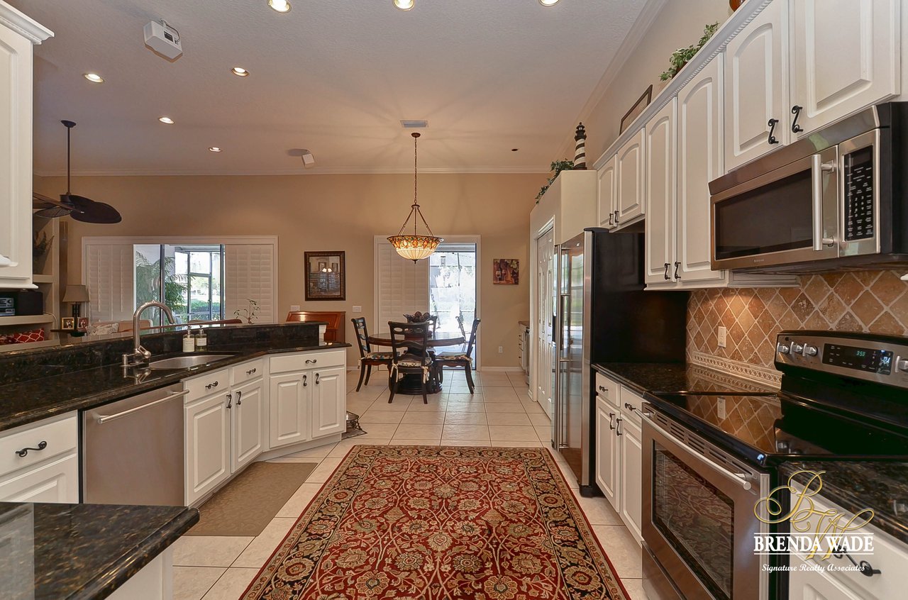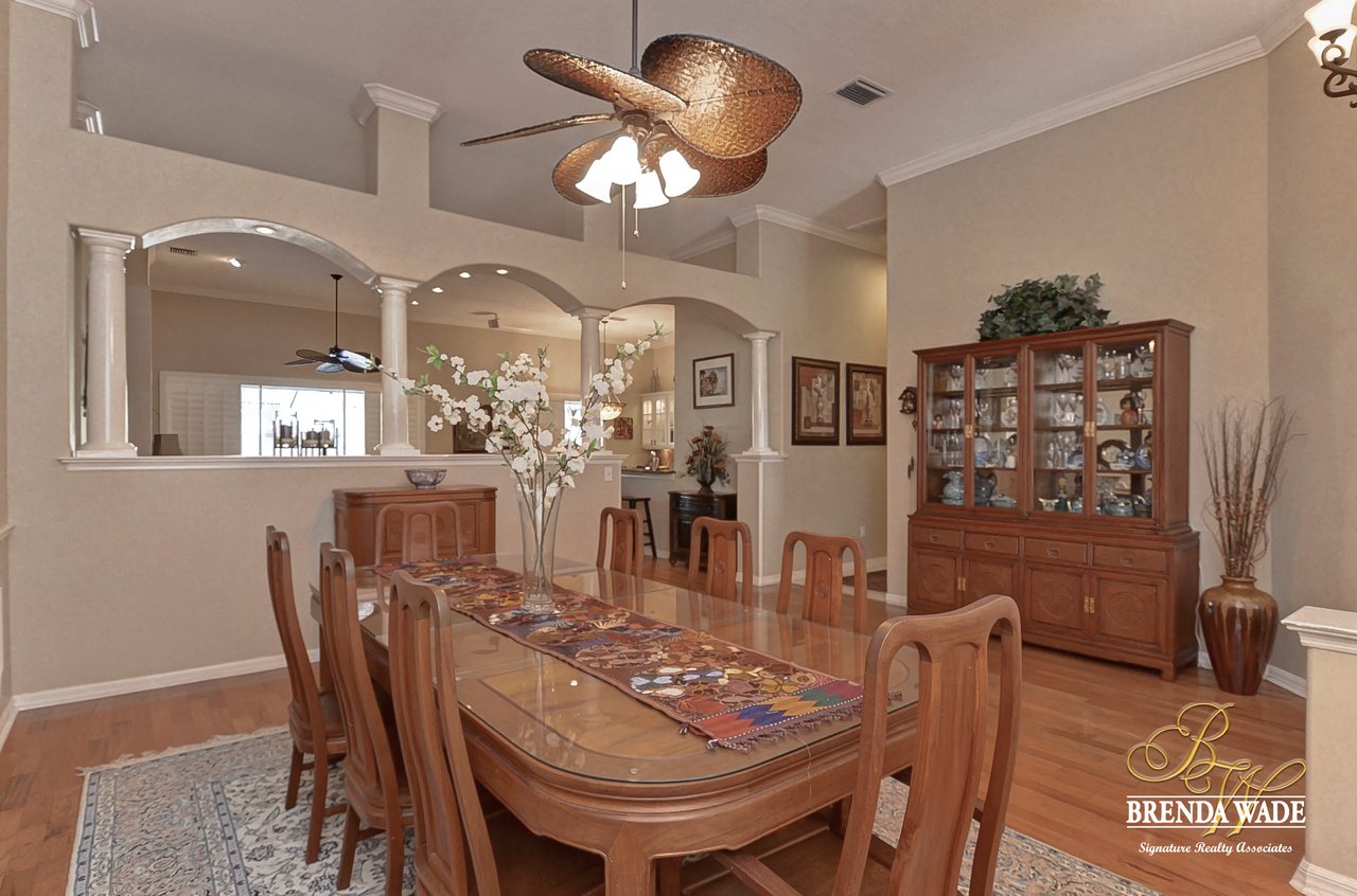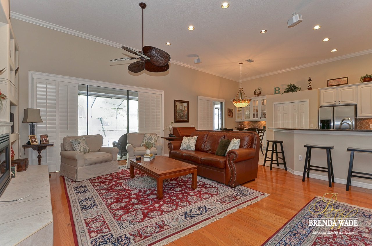 This one is a Showstopper! Stunning 4 bedroom, decorator’s dream home is located on one of the best lots in the coveted River Hills community! Sitting on a prestigious lot, overlooking the golf course’s 14th hole and featuring beautiful updates throughout! Enjoy all the beauty of this community with No CDD fee and access to a marvelous clubhouse! Inside awaits a large formal dining room with column accents and rich wood flooring throughout! More features that are displayed throughout the home include: crown molding, plantation shutters, beautiful lighting and fans, and neutral paint colors! Moving forward is a large great room overlooking the pool and golf course and featuring a large built in entertainment center with fireplace and bookshelves. Imagine all the sweet memories to be made in this space! Open to the great room is a bright and airy kitchen with granite countertops, white 42” cabinets with crown, stainless appliances, diagonal tile backsplash, and sunny eat-in nook area! The master suite is secluded on one side of the home with private exit to the lanai, built in speakers, and Updated en-suite with garden tub, New vanity sinks, and walk-in closet; this is a true retreat! On the opposite side of the home you will find 3 more bedrooms and two more full baths. One of the bedrooms has a pool bath attached, great for guests! Upstairs is a large bonus with attractive ceiling fans, plantation shutters, plus attached bath! This space would make a great in-law suite, guest retreat or college student space! More Updates Include: Both Air Conditioning replaced in 2014 and 2019, guest and pool bath updated in 2014! An oasis awaits you on the large pavered lanai boasting plenty of covered seating and sparkling pool, refinished with PebbleTec in 2010! Come take a look before it’s gone!
