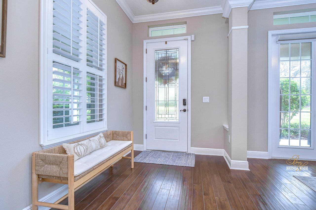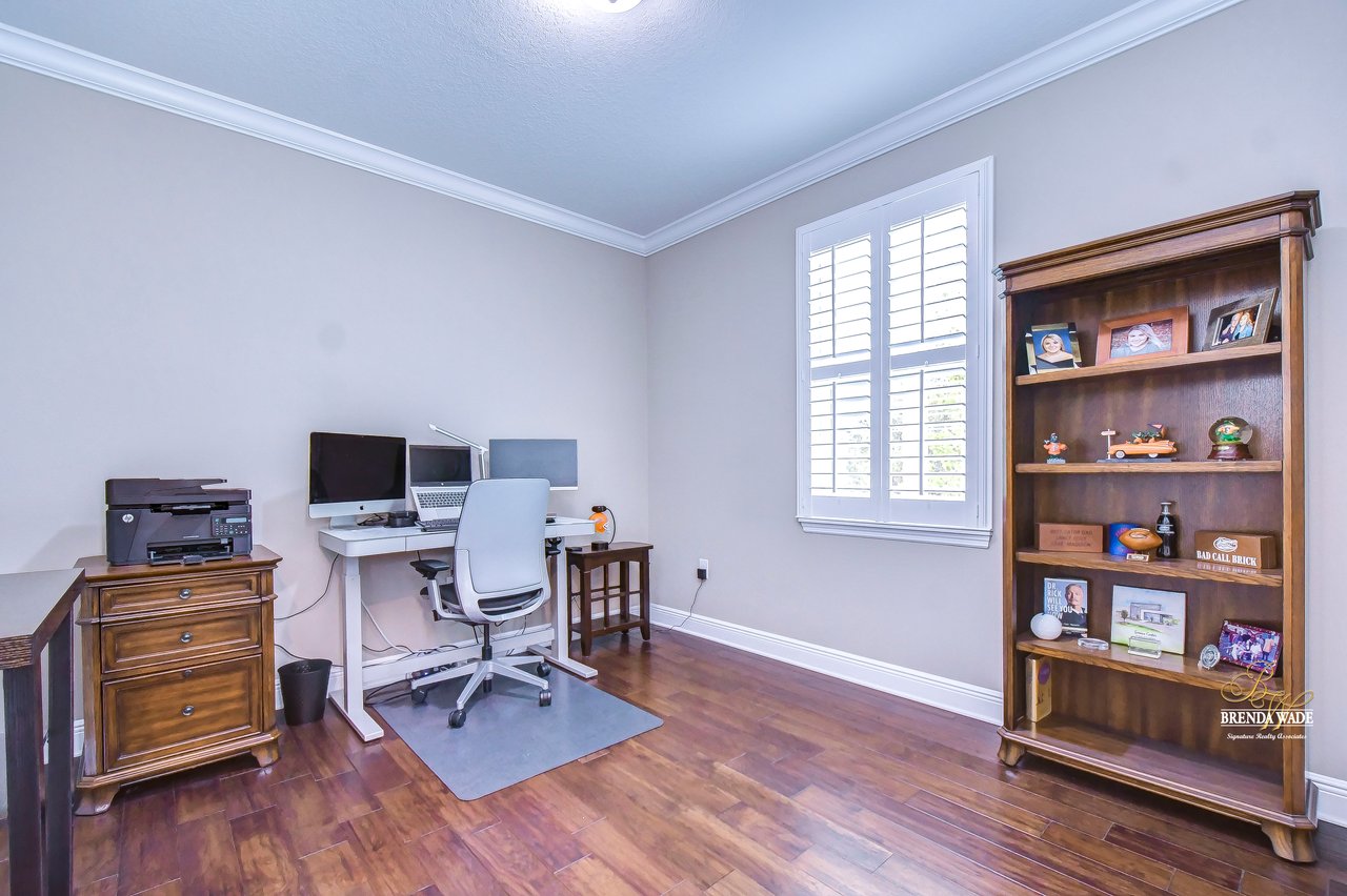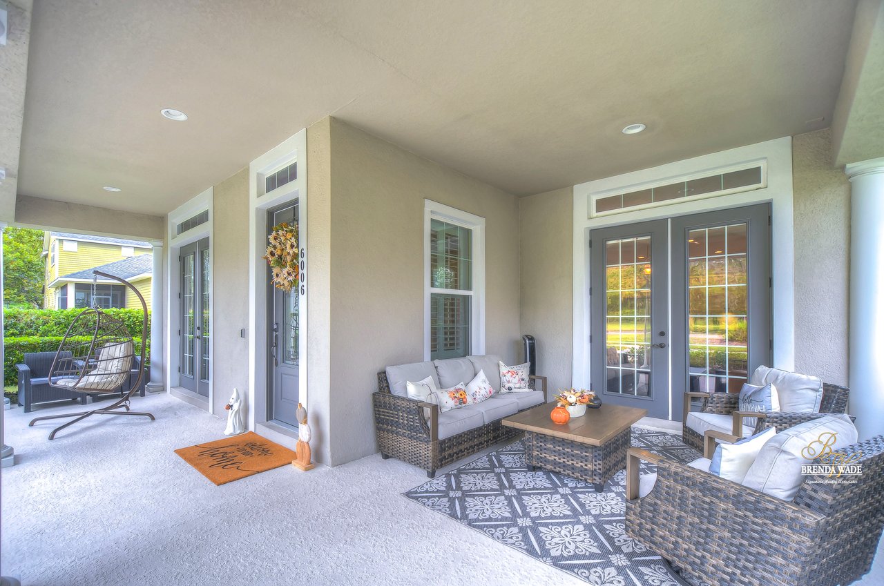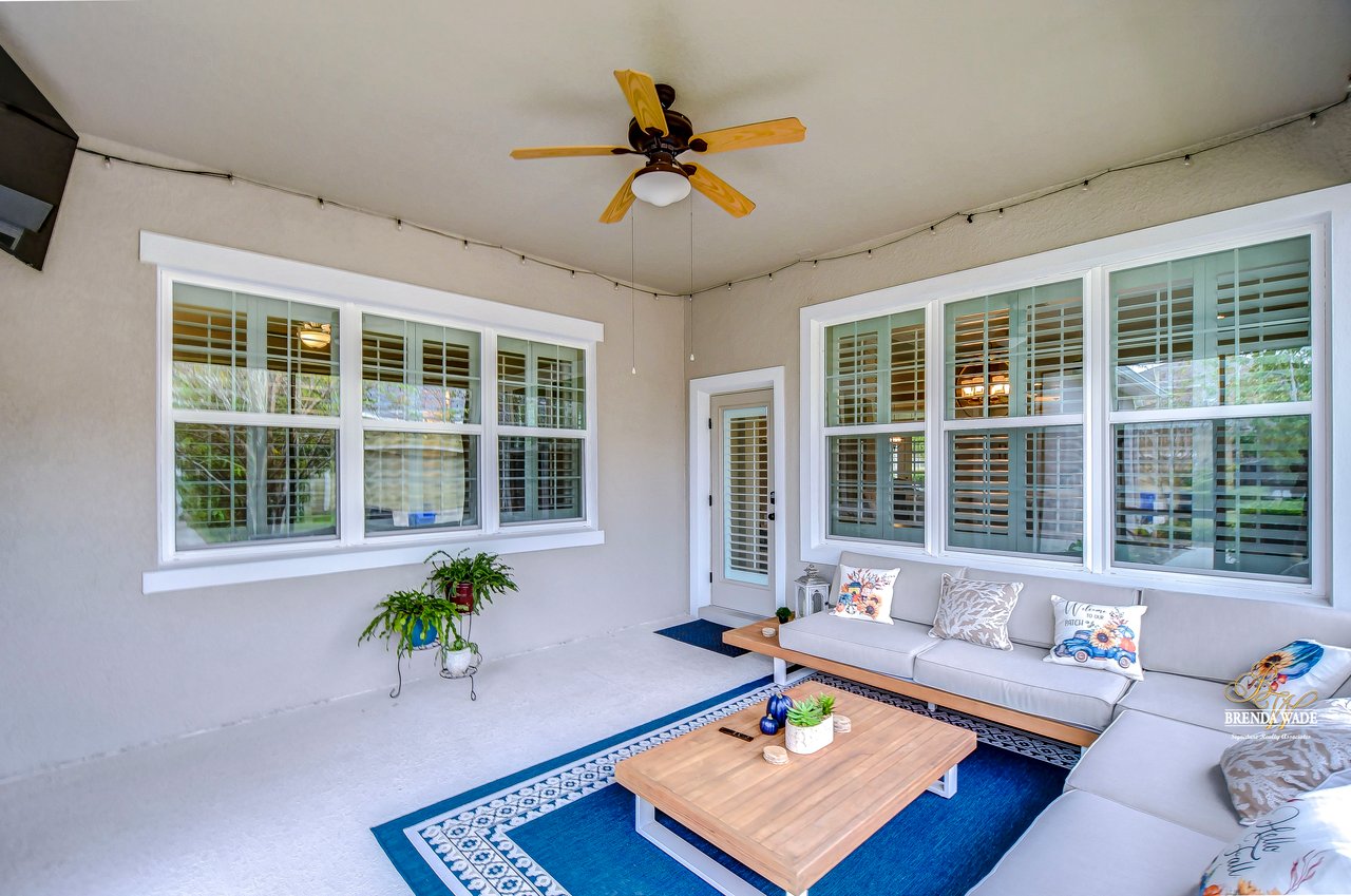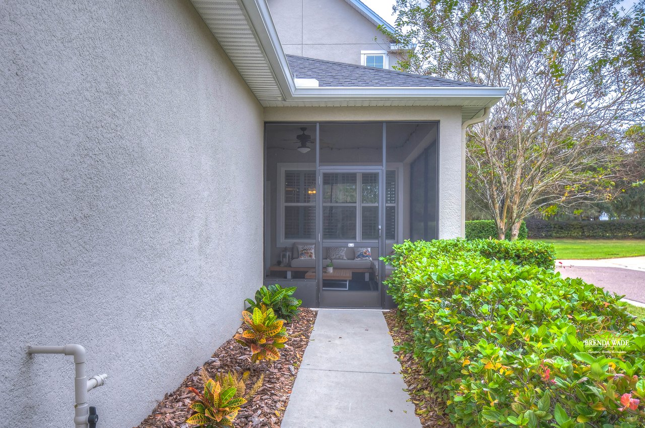 The curb appeal will draw you into this wonderful Fishhawk Ranch home and then the location and private lot will keep you looking! Gorgeous David Weekley home offering 4 bedrooms, 3.5 baths, plantation shutters, neutral paint, luxury flooring, crown moulding, and a built-in Heos entertainment/theater system! Get ready to fall in love as you step onto the wraparound-covered front porch! Upon entry, a versatile flex room to the left offer's options for an office, formal living room, or music space. The kitchen is a culinary haven, featuring granite countertops, a 5-burner gas cooktop with a stainless-steel vent, built-in oven, built-in microwave, granite sink, walk-in pantry, and a huge breakfast nook with built-in cabinetry, and French doors to the front patio. The Center Stage Island completes this upgraded space, making it perfect for entertaining. Never miss out on the conversation with the family room adjacent to the kitchen with built-in ceiling speakers. A formal dining room completes this open space bathed in natural light! The primary suite is privately situated on the first floor, featuring a large walk-in closet with a customized system. The en-suite bathroom boasts a dual sink vanity and an extra-large walk-in tile shower with dual rainfall showerheads. Don't miss the half bath perfect for guests better you head upstairs. The second floor hosts 2 additional bedrooms featuring large closets and shared bath, while a fourth bedroom features a spacious closet and private bath! A bonus room/game room provides additional living and entertaining space. The first-floor laundry room is equipped with upgraded cabinets and counter space for added convenience. Outside, a spacious screened patio provides to perfect space to entertain or enjoy a relaxing evening while watching the sunset! Great location for children to play in a private alley behind the home. All this is accompanied by the one-of-a-kind, resort-style amenities FishHawk has to offer including; parks, playgrounds, a recreation center, fitness, tennis/basketball courts, and more! Don't miss this chance to experience luxury living in FishHawk Ranch West!