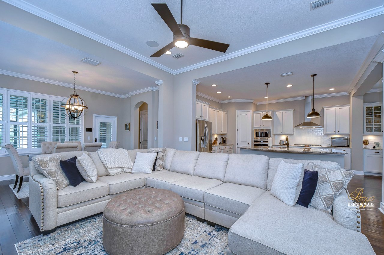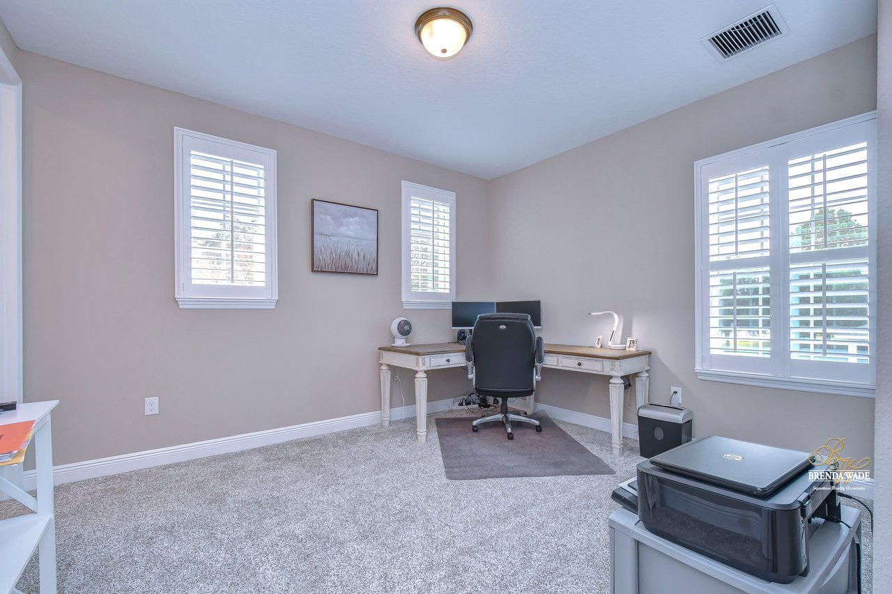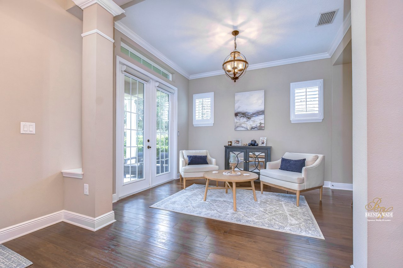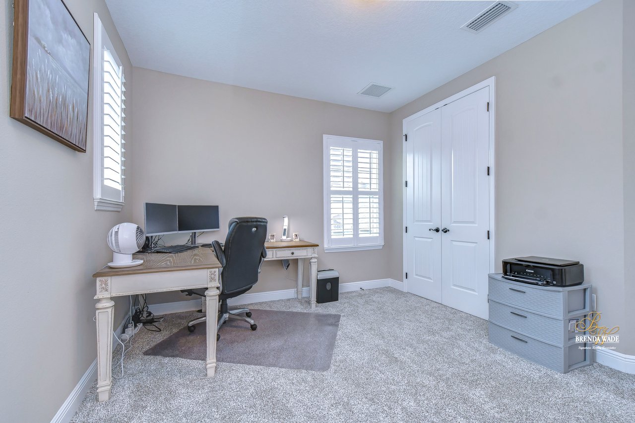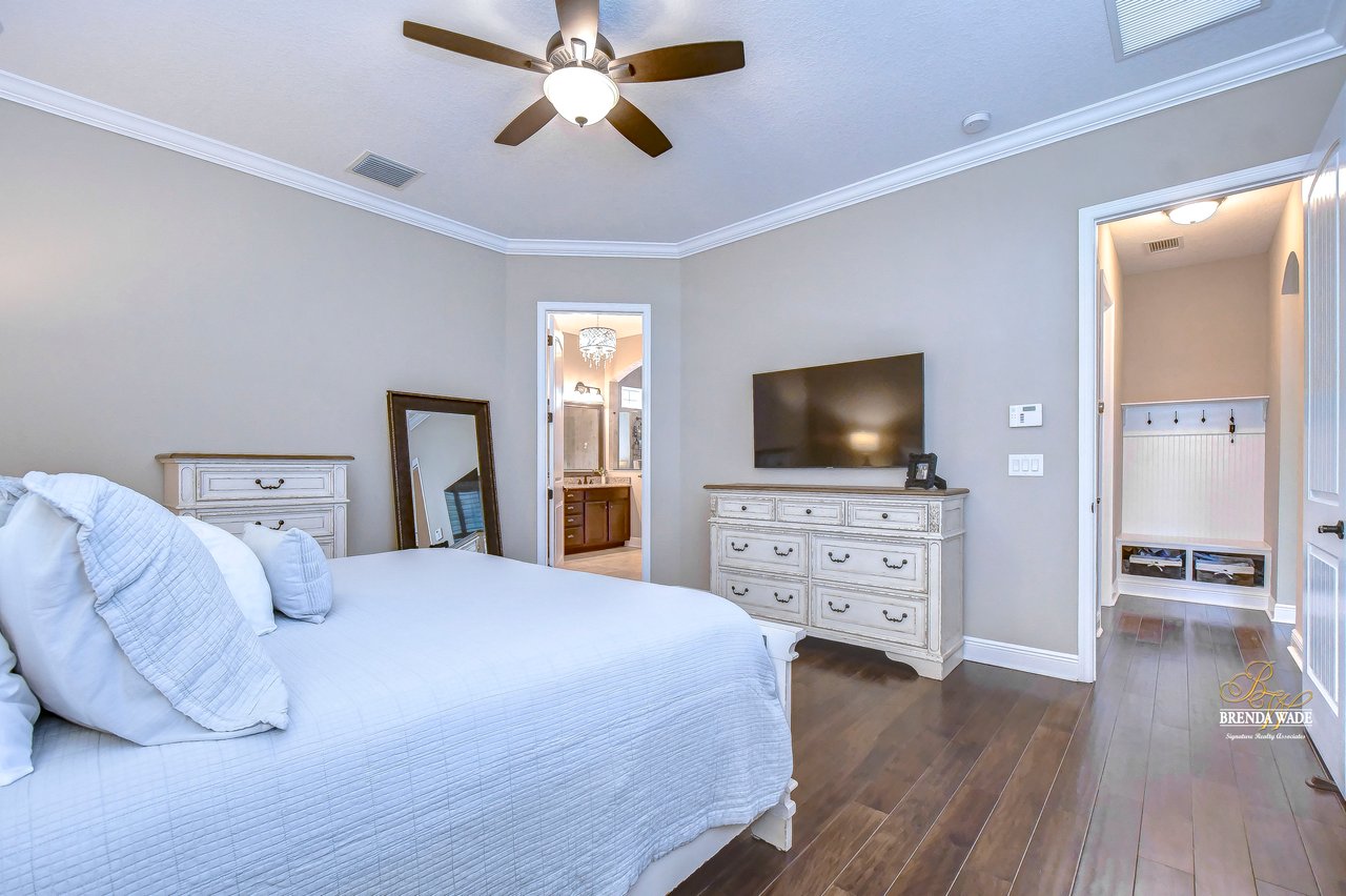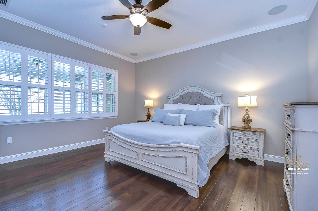 The curb appeal will draw you into this wonderful Fishhawk Ranch home and then the location and private lot will keep you looking! Gorgeous David Weekley home offering 4 bedrooms, 3.5 baths, plantation shutters, neutral paint, luxury flooring, crown moulding, and a built-in Heos entertainment/theater system! Get ready to fall in love as you step onto the wraparound-covered front porch! Upon entry, a versatile flex room to the left offer's options for an office, formal living room, or music space. The kitchen is a culinary haven, featuring granite countertops, a 5-burner gas cooktop with a stainless-steel vent, built-in oven, built-in microwave, granite sink, walk-in pantry, and a huge breakfast nook with built-in cabinetry, and French doors to the front patio. The Center Stage Island completes this upgraded space, making it perfect for entertaining. Never miss out on the conversation with the family room adjacent to the kitchen with built-in ceiling speakers. A formal dining room completes this open space bathed in natural light! The primary suite is privately situated on the first floor, featuring a large walk-in closet with a customized system. The en-suite bathroom boasts a dual sink vanity and an extra-large walk-in tile shower with dual rainfall showerheads. Don't miss the half bath perfect for guests better you head upstairs. The second floor hosts 2 additional bedrooms featuring large closets and shared bath, while a fourth bedroom features a spacious closet and private bath! A bonus room/game room provides additional living and entertaining space. The first-floor laundry room is equipped with upgraded cabinets and counter space for added convenience. Outside, a spacious screened patio provides to perfect space to entertain or enjoy a relaxing evening while watching the sunset! Great location for children to play in a private alley behind the home. All this is accompanied by the one-of-a-kind, resort-style amenities FishHawk has to offer including; parks, playgrounds, a recreation center, fitness, tennis/basketball courts, and more! Don't miss this chance to experience luxury living in FishHawk Ranch West!