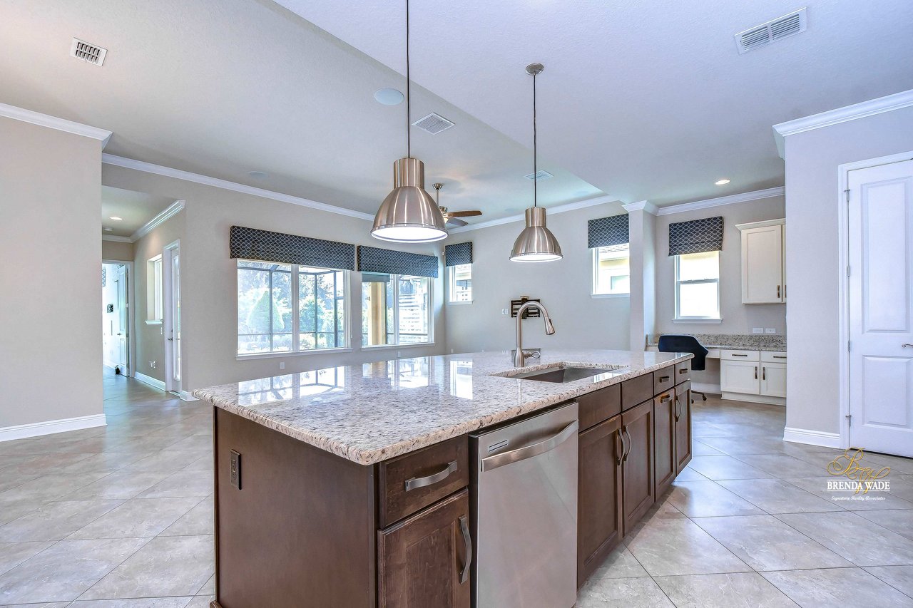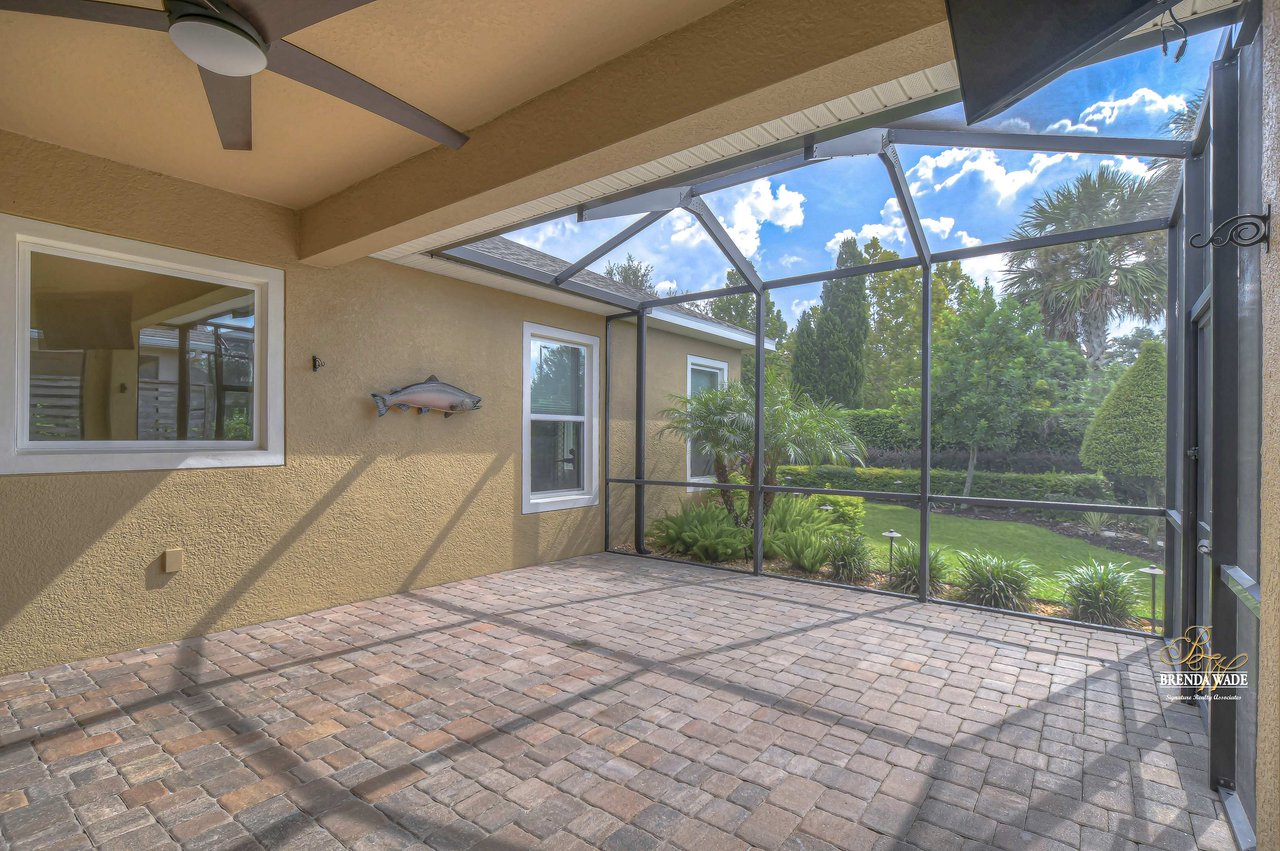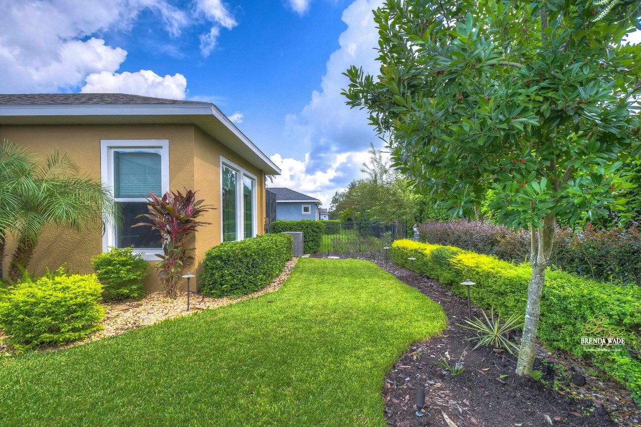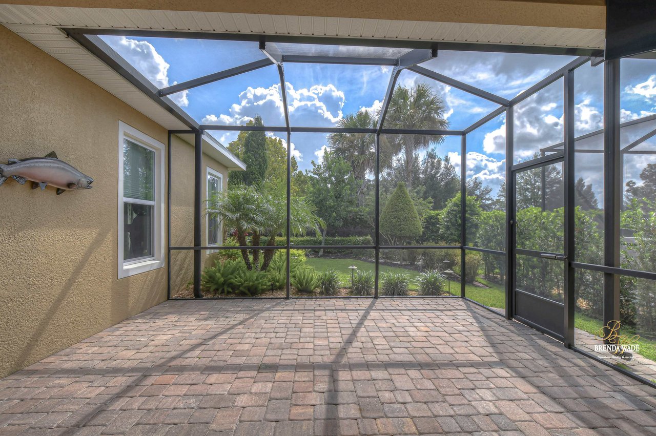 One or more photo(s) has been virtually staged. Welcome to the resort-style community of Encore, a 55+ gated community, redefining what active, hands-free living aspires to be! With an on-site activities director, your social calendar will be overflowing with options. The Oasis Club offers residents a full fitness center, meeting, club, and party room, PICKLEBALL court, multiple pools, bocce ball, fire pits, and miles of trails! This stunning home combines luxury, comfort, and contemporary living. From its impeccable curb appeal to its' thoughtfully designed open floor plan offering a sunlit interior and flexibility. The kitchen is the heart of the home overlooking the family and dining room with custom build-in cabinetry, it offers the perfect space for gatherings with family and friends. This STUNNING kitchen boasts 42-inch white cabinets with crown, glass tile backsplash, top-of-the-line new appliances, granite countertops, and a HUGE center island with bar seating. The split floor plan gives the primary suite and secondary bedroom absolute privacy. The primary suite is a true oasis with beautiful porcelain tile floors, barn doors, tray ceiling, peaceful views of the backyard, and a STUNNING en-suite bath featuring a HUGE walk-in shower and a walk-in closet with custom organizational shelves and drawers. The second bedroom features a front sitting area and an en-suite bath, ensuring comfort for guests. Take a step outside to your spacious oversized screened lanai surrounded by beautiful professional landscaping and lighting, making this the perfect place to enjoy your morning coffee, watch the sunsets, or enjoy time with friends! Did we mention NO backyard neighbors? This incredible home is conveniently located near shopping centers, parks, and dining options, offering not just luxury, but also convenience. This active 55+ community itself offers a serene and secure environment, making it the perfect place to call home.
