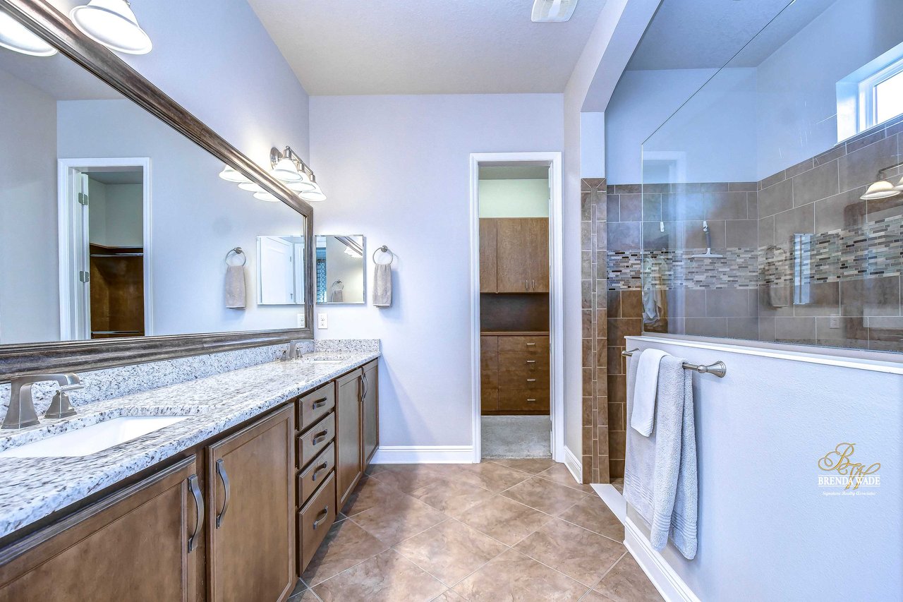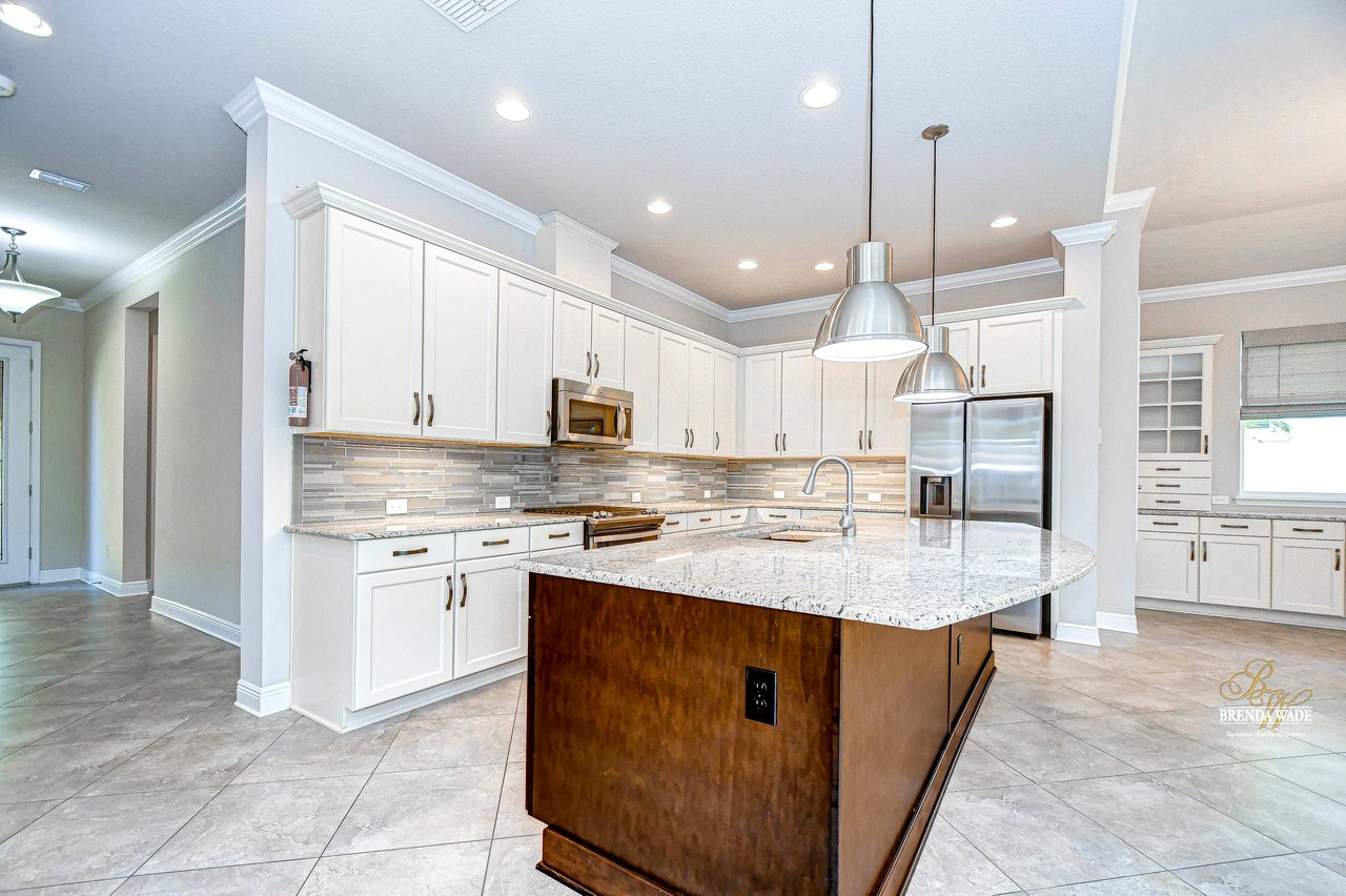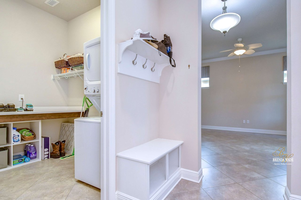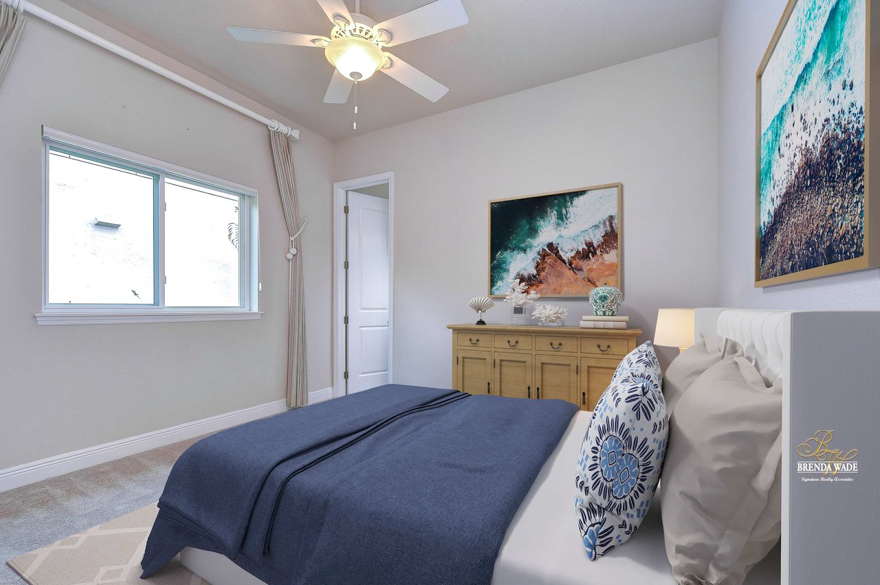 One or more photo(s) has been virtually staged. Welcome to the resort-style community of Encore, a 55+ gated community, redefining what active, hands-free living aspires to be! With an on-site activities director, your social calendar will be overflowing with options. The Oasis Club offers residents a full fitness center, meeting, club, and party room, PICKLEBALL court, multiple pools, bocce ball, fire pits, and miles of trails! This stunning home combines luxury, comfort, and contemporary living. From its impeccable curb appeal to its' thoughtfully designed open floor plan offering a sunlit interior and flexibility. The kitchen is the heart of the home overlooking the family and dining room with custom build-in cabinetry, it offers the perfect space for gatherings with family and friends. This STUNNING kitchen boasts 42-inch white cabinets with crown, glass tile backsplash, top-of-the-line new appliances, granite countertops, and a HUGE center island with bar seating. The split floor plan gives the primary suite and secondary bedroom absolute privacy. The primary suite is a true oasis with beautiful porcelain tile floors, barn doors, tray ceiling, peaceful views of the backyard, and a STUNNING en-suite bath featuring a HUGE walk-in shower and a walk-in closet with custom organizational shelves and drawers. The second bedroom features a front sitting area and an en-suite bath, ensuring comfort for guests. Take a step outside to your spacious oversized screened lanai surrounded by beautiful professional landscaping and lighting, making this the perfect place to enjoy your morning coffee, watch the sunsets, or enjoy time with friends! Did we mention NO backyard neighbors? This incredible home is conveniently located near shopping centers, parks, and dining options, offering not just luxury, but also convenience. This active 55+ community itself offers a serene and secure environment, making it the perfect place to call home.