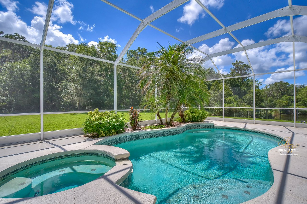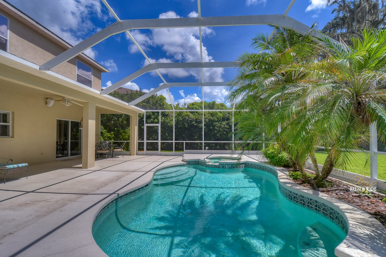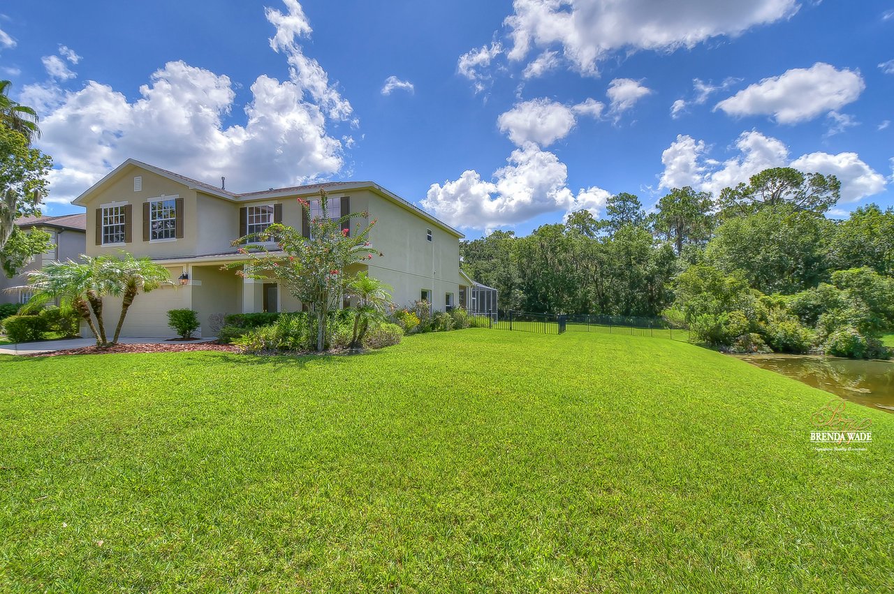 NEW ROOF JUST INSTALLED IN SEPTEMBER 2022! Wow, you don't see many settings like this one! At the very end of a cul-de-sac, with a huge backyard bordered by lush conservation and a peaceful pond is this .36-acre lot! You've got to see it for yourself! From the cozy covered front porch, you enter the leaded glass double front doors and instantly feel at home! The owner has taken great care of the home and updated it tastefully! Notice the updated luxury vinyl plank flooring in the foyer, which continues throughout the first floor! The formal living and dining rooms feature plantation shutters on the large windows offering great views! The A M A Z I N G kitchen is large and updated with 42" raised white cabinets topped with crown, granite countertops, breakfast bar seating, and so much room to prepare meals together! You can spend your everyday meals in the breakfast nook where you get to enjoy the peaceful pond and maybe some wildlife! A slider from the family room leads out to the large covered pool and lanai! Rounding out the first floor is a powder room with pedestal sink, conveniently located for company! Upstairs you will find the super-sized primary bedroom with a nice sitting area, giant double walk-in closet, and a BEAUTIFULLY updated bathroom with walk-in shower, dual sinks, and gorgeous tile flooring! There are three more generously sized bedrooms, one with crown molding and another with a walk-in closet! Just wait till you see the backyard - it's huge! Fenced along the lush conservation there's more than enough room to run and play when you're not enjoying the heated pool with tropical landscaping! You will also be given access to the amenities FishHawk Ranch has to offer including community pools, fitness center, aquatic club, walking trails and so much more! If you have school-aged children, you will love the A-rated schools that this home is zoned for! This setting is one in a million: expansive views, yet nestled on a very private lot! It's a winner, come see it while you can! View the home virtually with this link: