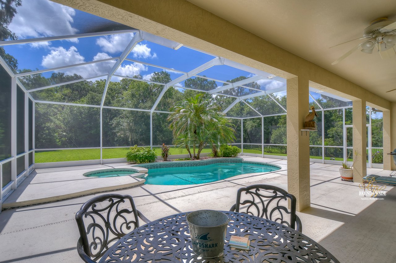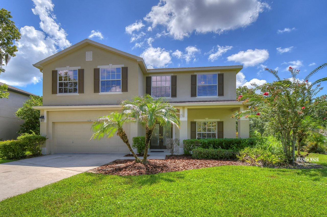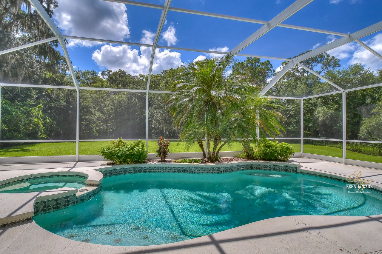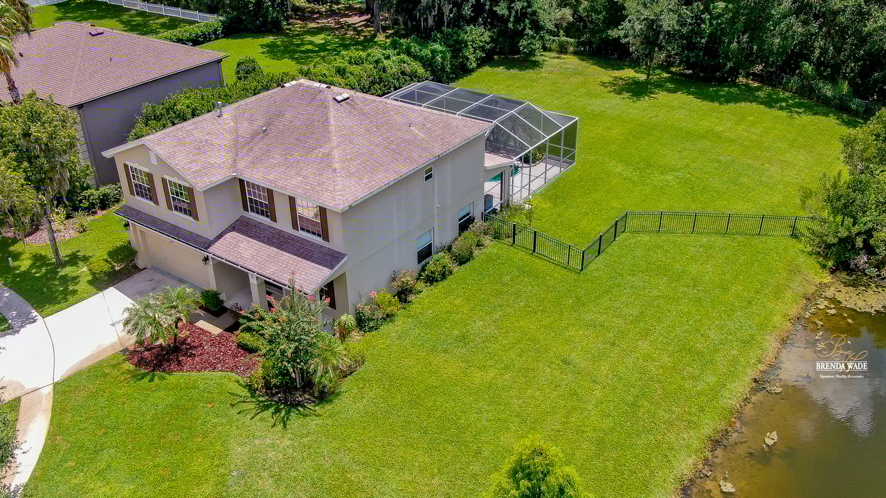 NEW ROOF JUST INSTALLED IN SEPTEMBER 2022! Wow, you don't see many settings like this one! At the very end of a cul-de-sac, with a huge backyard bordered by lush conservation and a peaceful pond is this .36-acre lot! You've got to see it for yourself! From the cozy covered front porch, you enter the leaded glass double front doors and instantly feel at home! The owner has taken great care of the home and updated it tastefully! Notice the updated luxury vinyl plank flooring in the foyer, which continues throughout the first floor! The formal living and dining rooms feature plantation shutters on the large windows offering great views! The A M A Z I N G kitchen is large and updated with 42" raised white cabinets topped with crown, granite countertops, breakfast bar seating, and so much room to prepare meals together! You can spend your everyday meals in the breakfast nook where you get to enjoy the peaceful pond and maybe some wildlife! A slider from the family room leads out to the large covered pool and lanai! Rounding out the first floor is a powder room with pedestal sink, conveniently located for company! Upstairs you will find the super-sized primary bedroom with a nice sitting area, giant double walk-in closet, and a BEAUTIFULLY updated bathroom with walk-in shower, dual sinks, and gorgeous tile flooring! There are three more generously sized bedrooms, one with crown molding and another with a walk-in closet! Just wait till you see the backyard - it's huge! Fenced along the lush conservation there's more than enough room to run and play when you're not enjoying the heated pool with tropical landscaping! You will also be given access to the amenities FishHawk Ranch has to offer including community pools, fitness center, aquatic club, walking trails and so much more! If you have school-aged children, you will love the A-rated schools that this home is zoned for! This setting is one in a million: expansive views, yet nestled on a very private lot! It's a winner, come see it while you can! View the home virtually with this link: