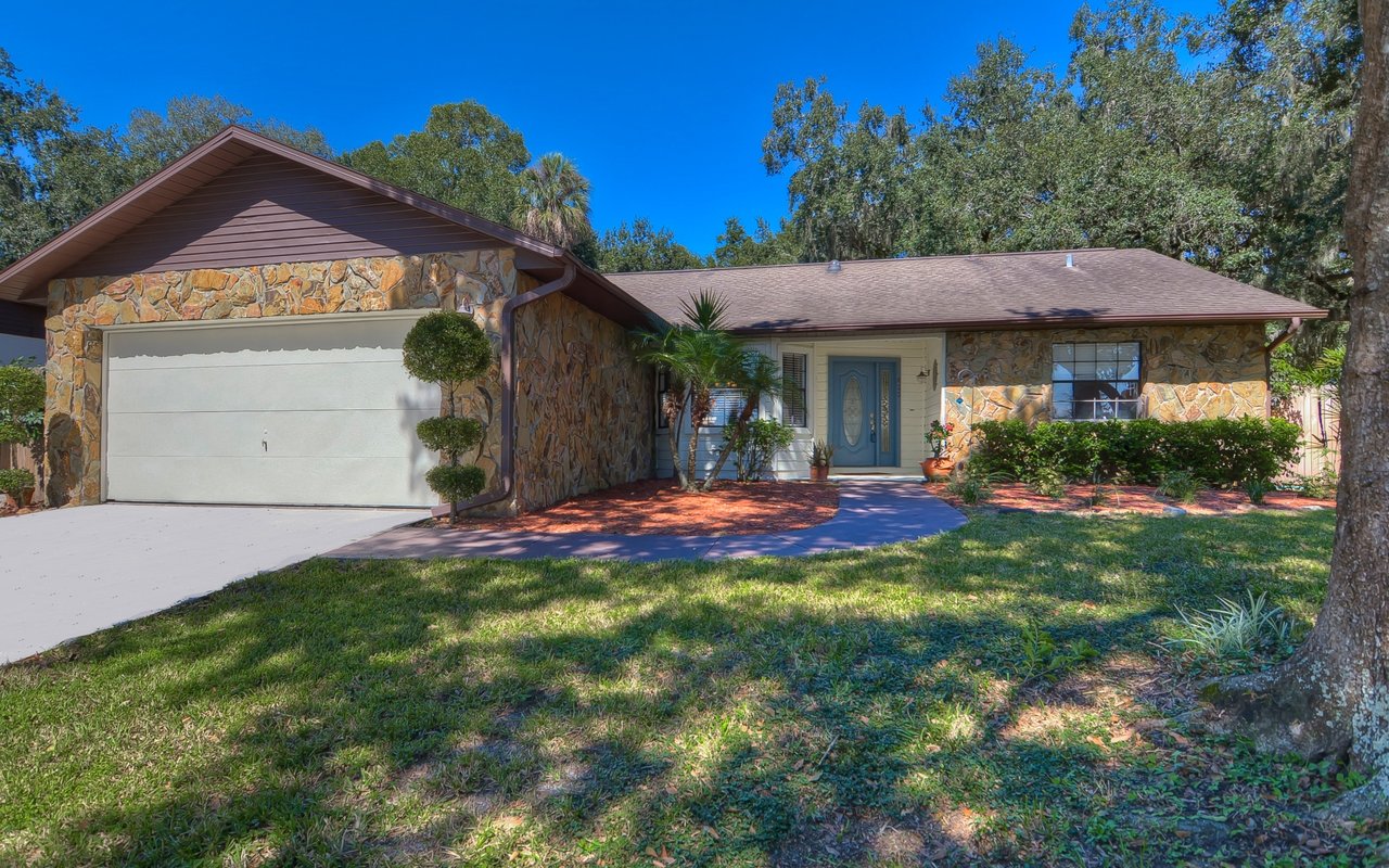 Wonderful pool home! If you are looking for the perfect family home in a central location, this is the home for you! With 3 bedrooms, 2 bathrooms and a bright open floor plan, this home will welcome you from the moment you arrive! Curb appeal includes fresh 2017 exterior paint, lush landscaping and pretty stone accents! Also enjoy peace of mind knowing the hot water heater is new in 2018! Inside awaits a spacious, open plan with separate formal dining room. This space is great for entertaining and offers attractive beadboard accent! The kitchen boasts stainless appliances, backsplash, tons of cabinet and counter space and updated lighting! All throughout the living areas is a stunning engineered wood flooring added in 2015! For more casual dining, there is a eat-in nook open to the kitchen! Spacious family room features tall vaulted ceilings and double French doors leading to the screened and covered lanai! Split floor plan with master suite on one side! Master offers plenty of space for a king size bed, more French doors to the lanai and en-suite with large walk-in closet, his and hers sinks and walk-in shower! Two more bedrooms are on the opposite side of the home with a remodeled 2nd bathroom! Step outside onto the oasis with a large covered and screened area with plenty of space for seating as well as an oversized swimming pool and spa! So close to I-75, commuting to Tampa will be a breeze! This home is move-in ready and waiting for you! Come take a look for yourself, you will not be disappointed!