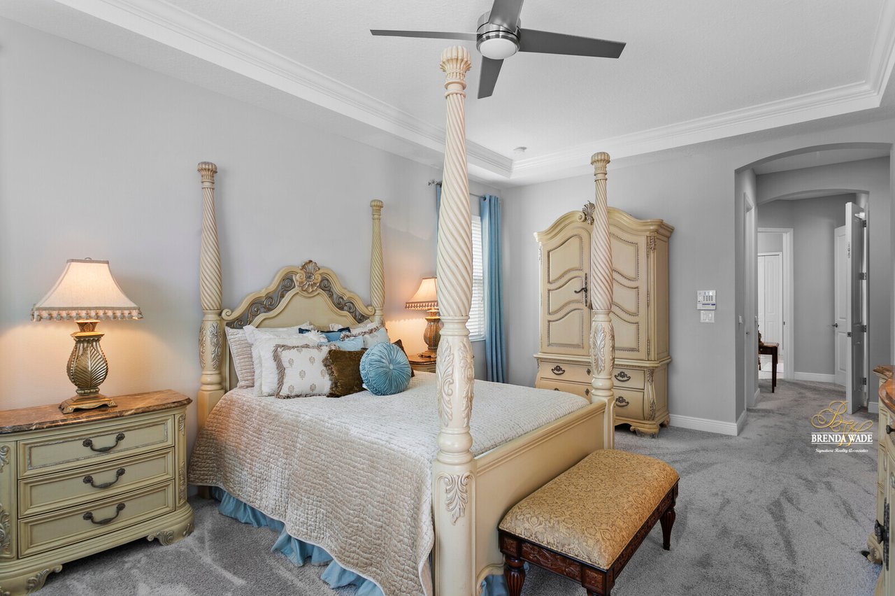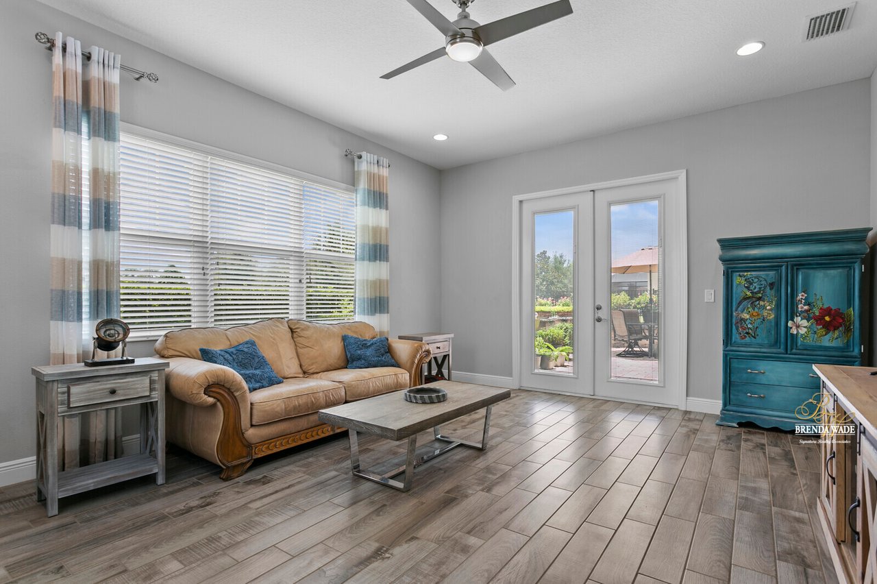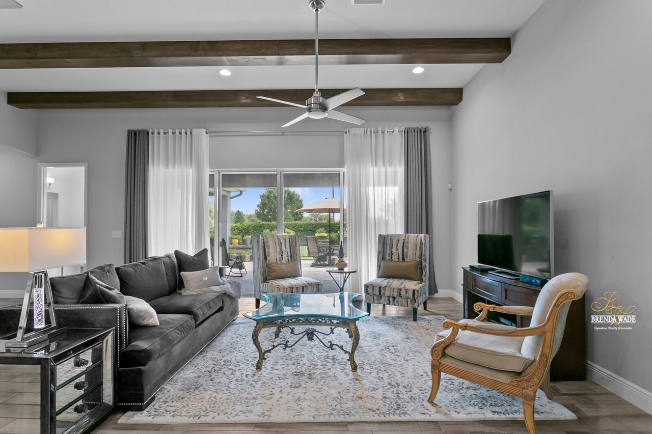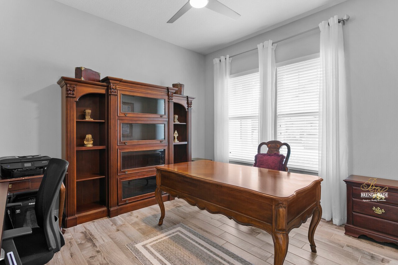 PERFECTION! This WestBay “Key Largo” home is move-in ready, so you do not have to lift a finger! Located in the sought-after FishHawk Ranch West, you will love being surrounded by walking trails, resort-style pools, clubhouse, fitness center, and game room! There is a shopping center including a Publix at the front of the neighborhood, and you are zoned for A-rated schools; what more could you ask for?! Tucked at the back of the neighborhood, notice the pavered driveway and walkway, stacked stone accents, lush landscaping, and 3-car garage! The charming front porch will be your favorite place to relax in the morning and enjoy your morning cup of coffee! If you loved the curb appeal, you will be SOLD once you step inside! Neutral paint, soaring ceilings, crown molding, and stunning wood-look tile throughout the living areas welcome you! There is a private home office behind a set of french doors that offers a tranquil space to work from home! The dining room features a tray ceiling and arch entryway into the kitchen so you can expect all future holidays to be spent at your house! The double-pane windows in the office and dining room are double-hung so cleaning will be a breeze! Move into the heart of the home… the A M A Z I N G kitchen! Dripping in upgrades with custom finishes, the chef in the family will love preparing meals here! High-end GE Profile appliances include a built-in oven and microwave, 42-in cabinets with crown, uppers, and under-cabinet lighting, an oversized center island with seating, nice backsplash, and statement range hood! With open concept living in mind, the kitchen opens up to the great room that offers a wall of sliders and wood beam accents! The primary suite is secluded on one side of the home with tons of natural lighting, tray ceiling, private lanai exit, two walk-in closets, and spa-like bathroom with dual sinks, soaking tub, and large walk-in shower with double shower heads! There is a triple split floor plan featuring two other bedrooms sharing one additional bathroom and a fourth bedroom at the back of the home near a third bathroom with a walk-in shower! Don’t forget to check out the bonus room at the back of the home! Complete with an oversized window as well as french doors leading to the patio you can easily store the kids' clutter away from the living area or create a home theater room! The backyard is a tranquil oasis where the owners have extended the pavered lanai as well as added a gate and small wall to separate the lanai from the spacious yard! There is privacy landscaping along the back of the lot so you can spend time in the backyard freely! You won't find anything like this beauty, come live the dream!