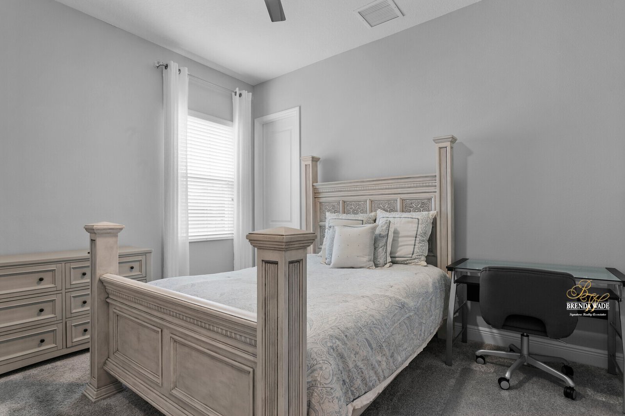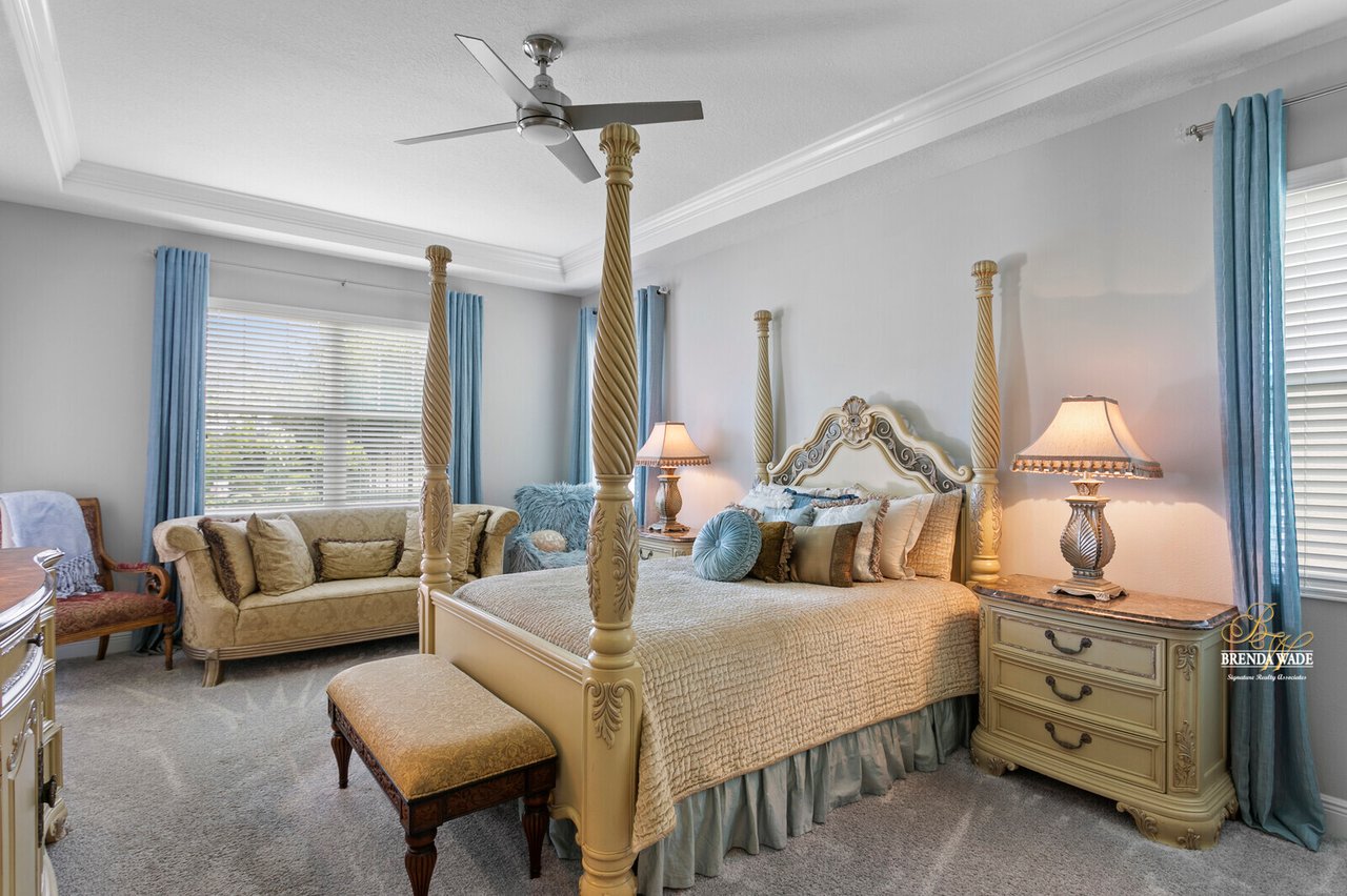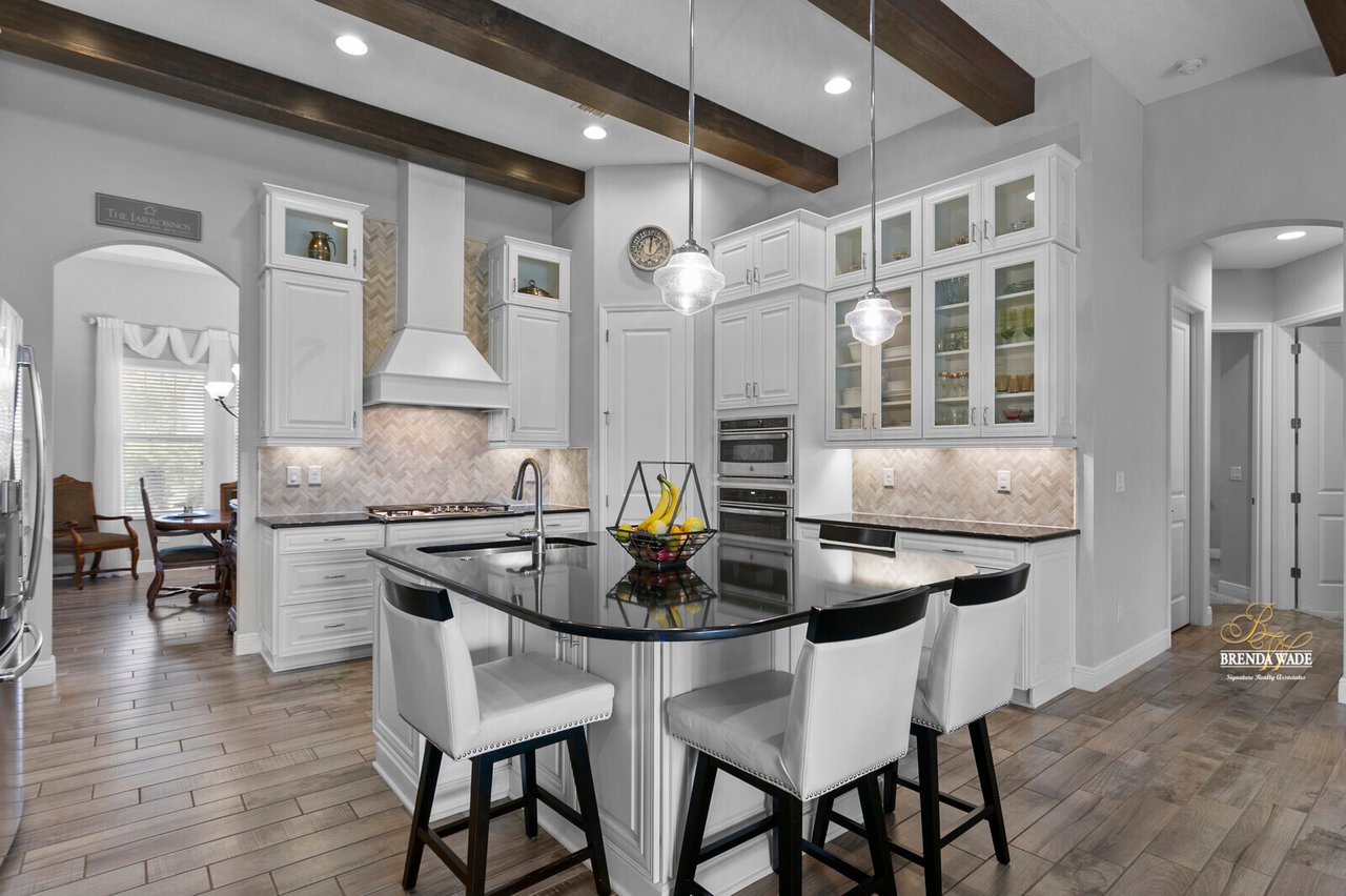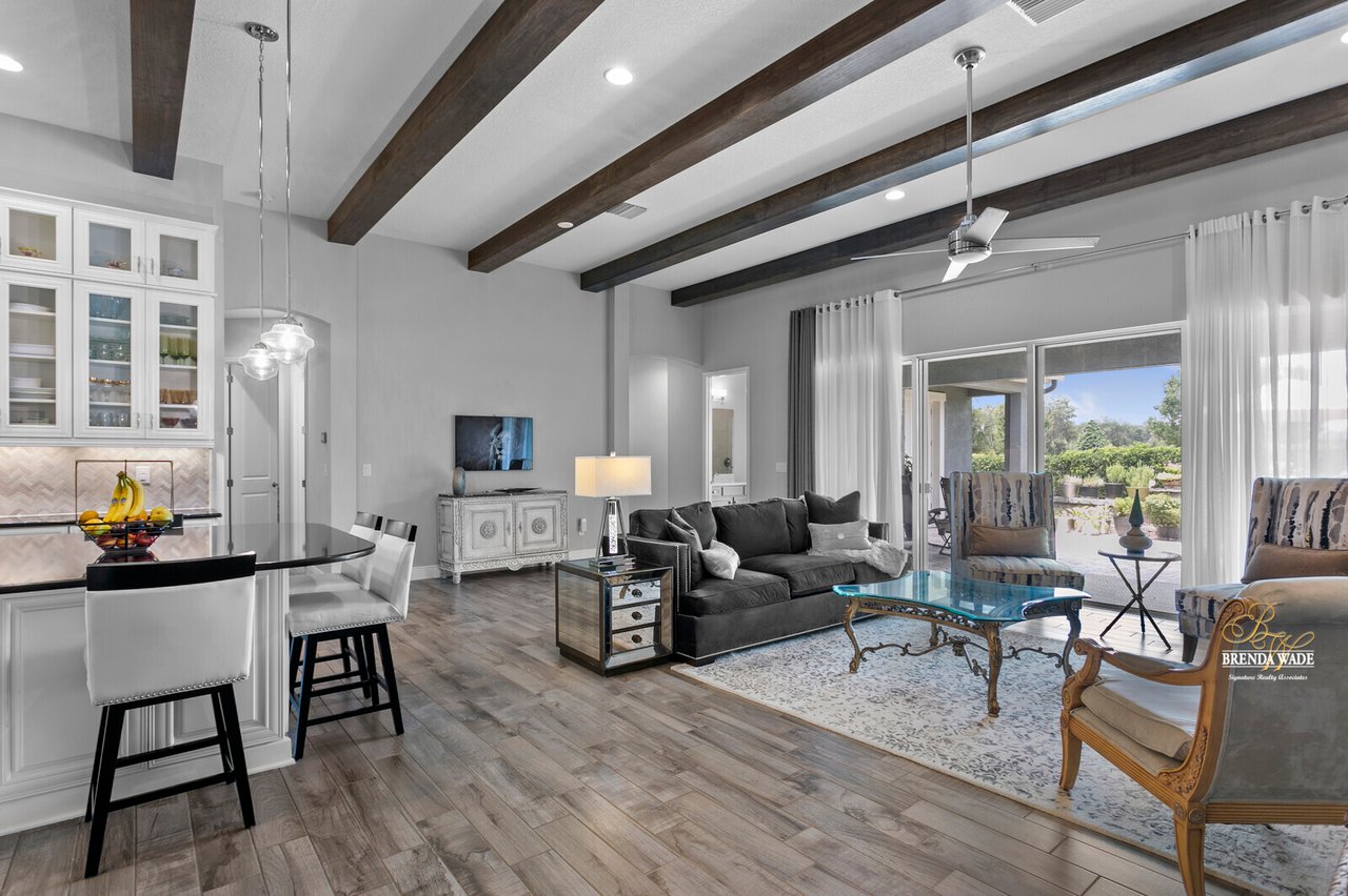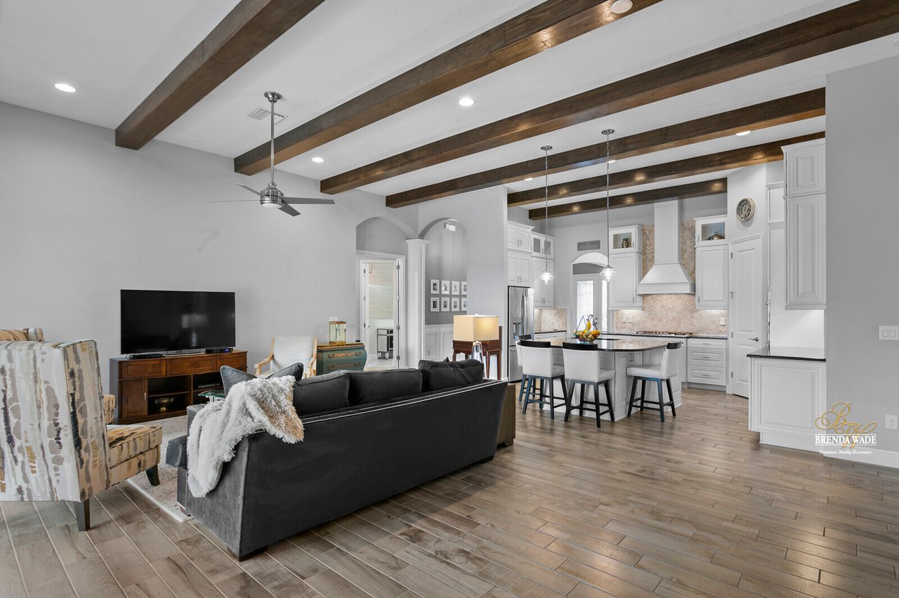 PERFECTION! This WestBay “Key Largo” home is move-in ready, so you do not have to lift a finger! Located in the sought-after FishHawk Ranch West, you will love being surrounded by walking trails, resort-style pools, clubhouse, fitness center, and game room! There is a shopping center including a Publix at the front of the neighborhood, and you are zoned for A-rated schools; what more could you ask for?! Tucked at the back of the neighborhood, notice the pavered driveway and walkway, stacked stone accents, lush landscaping, and 3-car garage! The charming front porch will be your favorite place to relax in the morning and enjoy your morning cup of coffee! If you loved the curb appeal, you will be SOLD once you step inside! Neutral paint, soaring ceilings, crown molding, and stunning wood-look tile throughout the living areas welcome you! There is a private home office behind a set of french doors that offers a tranquil space to work from home! The dining room features a tray ceiling and arch entryway into the kitchen so you can expect all future holidays to be spent at your house! The double-pane windows in the office and dining room are double-hung so cleaning will be a breeze! Move into the heart of the home… the A M A Z I N G kitchen! Dripping in upgrades with custom finishes, the chef in the family will love preparing meals here! High-end GE Profile appliances include a built-in oven and microwave, 42-in cabinets with crown, uppers, and under-cabinet lighting, an oversized center island with seating, nice backsplash, and statement range hood! With open concept living in mind, the kitchen opens up to the great room that offers a wall of sliders and wood beam accents! The primary suite is secluded on one side of the home with tons of natural lighting, tray ceiling, private lanai exit, two walk-in closets, and spa-like bathroom with dual sinks, soaking tub, and large walk-in shower with double shower heads! There is a triple split floor plan featuring two other bedrooms sharing one additional bathroom and a fourth bedroom at the back of the home near a third bathroom with a walk-in shower! Don’t forget to check out the bonus room at the back of the home! Complete with an oversized window as well as french doors leading to the patio you can easily store the kids' clutter away from the living area or create a home theater room! The backyard is a tranquil oasis where the owners have extended the pavered lanai as well as added a gate and small wall to separate the lanai from the spacious yard! There is privacy landscaping along the back of the lot so you can spend time in the backyard freely! You won't find anything like this beauty, come live the dream!
