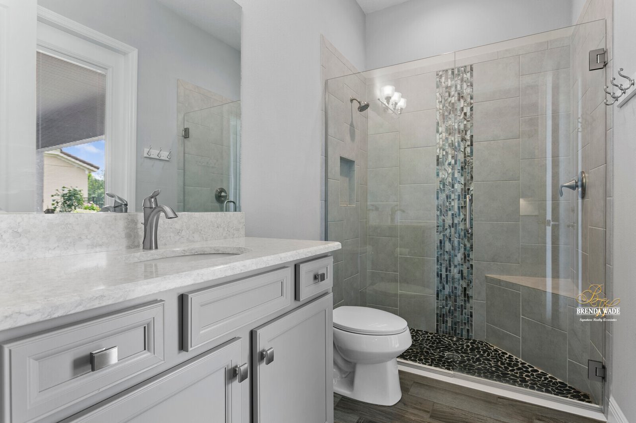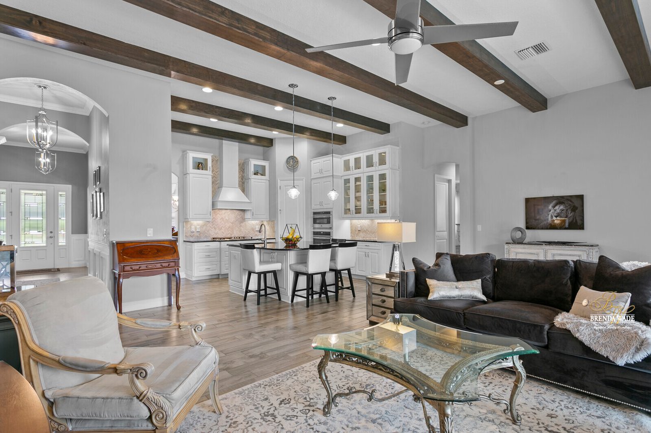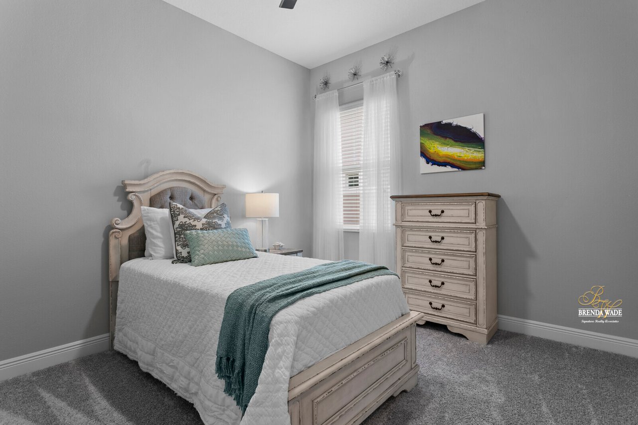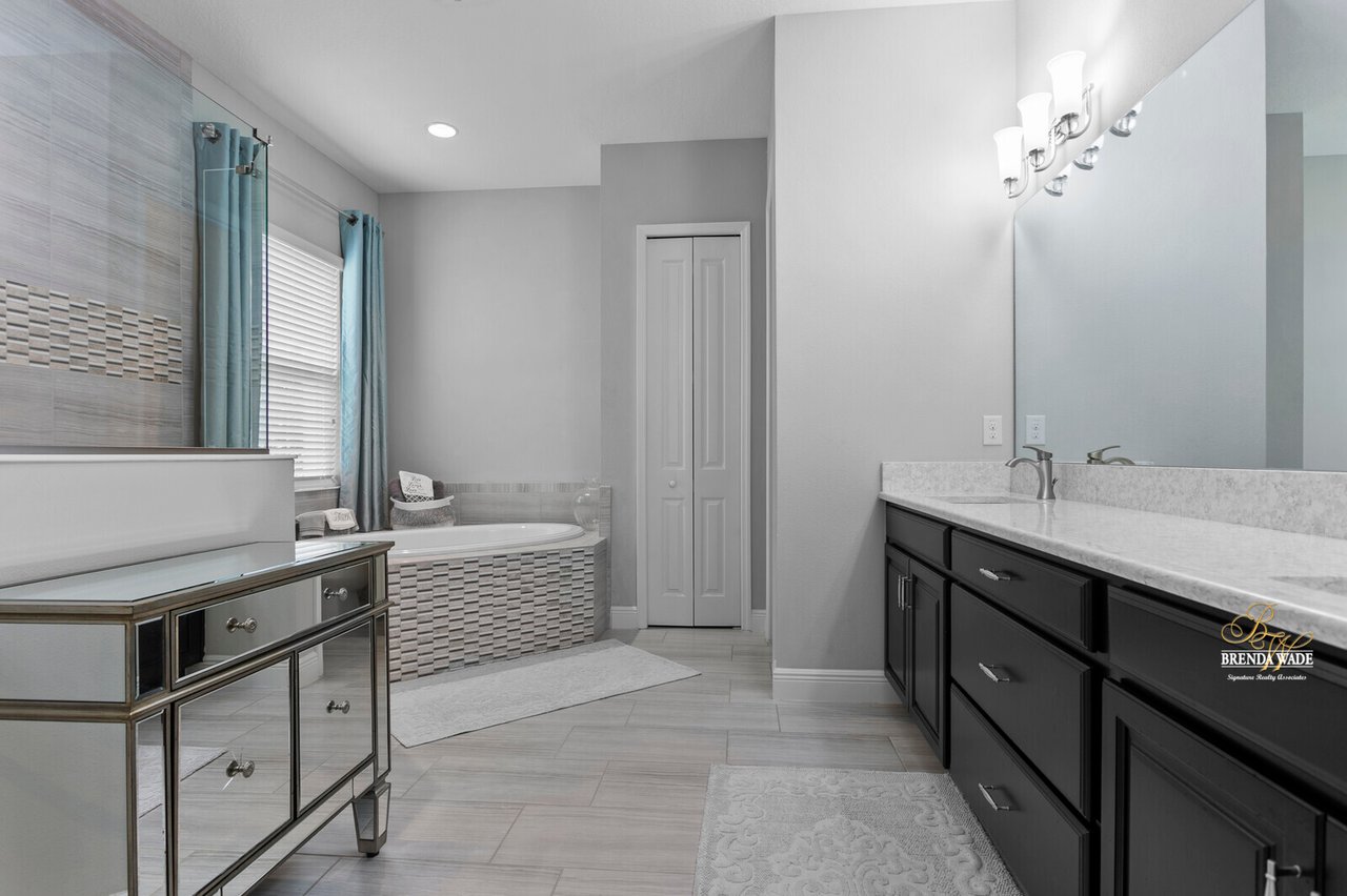 PERFECTION! This WestBay “Key Largo” home is move-in ready, so you do not have to lift a finger! Located in the sought-after FishHawk Ranch West, you will love being surrounded by walking trails, resort-style pools, clubhouse, fitness center, and game room! There is a shopping center including a Publix at the front of the neighborhood, and you are zoned for A-rated schools; what more could you ask for?! Tucked at the back of the neighborhood, notice the pavered driveway and walkway, stacked stone accents, lush landscaping, and 3-car garage! The charming front porch will be your favorite place to relax in the morning and enjoy your morning cup of coffee! If you loved the curb appeal, you will be SOLD once you step inside! Neutral paint, soaring ceilings, crown molding, and stunning wood-look tile throughout the living areas welcome you! There is a private home office behind a set of french doors that offers a tranquil space to work from home! The dining room features a tray ceiling and arch entryway into the kitchen so you can expect all future holidays to be spent at your house! The double-pane windows in the office and dining room are double-hung so cleaning will be a breeze! Move into the heart of the home… the A M A Z I N G kitchen! Dripping in upgrades with custom finishes, the chef in the family will love preparing meals here! High-end GE Profile appliances include a built-in oven and microwave, 42-in cabinets with crown, uppers, and under-cabinet lighting, an oversized center island with seating, nice backsplash, and statement range hood! With open concept living in mind, the kitchen opens up to the great room that offers a wall of sliders and wood beam accents! The primary suite is secluded on one side of the home with tons of natural lighting, tray ceiling, private lanai exit, two walk-in closets, and spa-like bathroom with dual sinks, soaking tub, and large walk-in shower with double shower heads! There is a triple split floor plan featuring two other bedrooms sharing one additional bathroom and a fourth bedroom at the back of the home near a third bathroom with a walk-in shower! Don’t forget to check out the bonus room at the back of the home! Complete with an oversized window as well as french doors leading to the patio you can easily store the kids' clutter away from the living area or create a home theater room! The backyard is a tranquil oasis where the owners have extended the pavered lanai as well as added a gate and small wall to separate the lanai from the spacious yard! There is privacy landscaping along the back of the lot so you can spend time in the backyard freely! You won't find anything like this beauty, come live the dream!