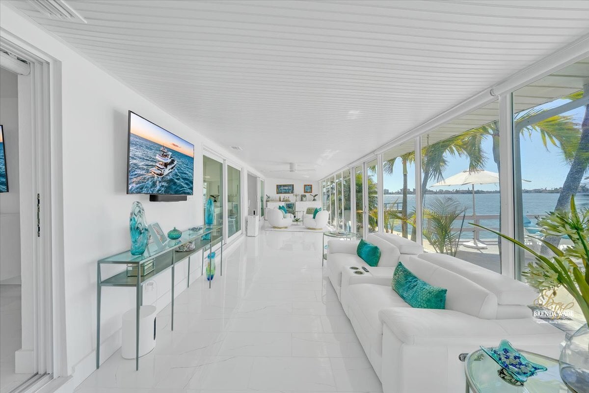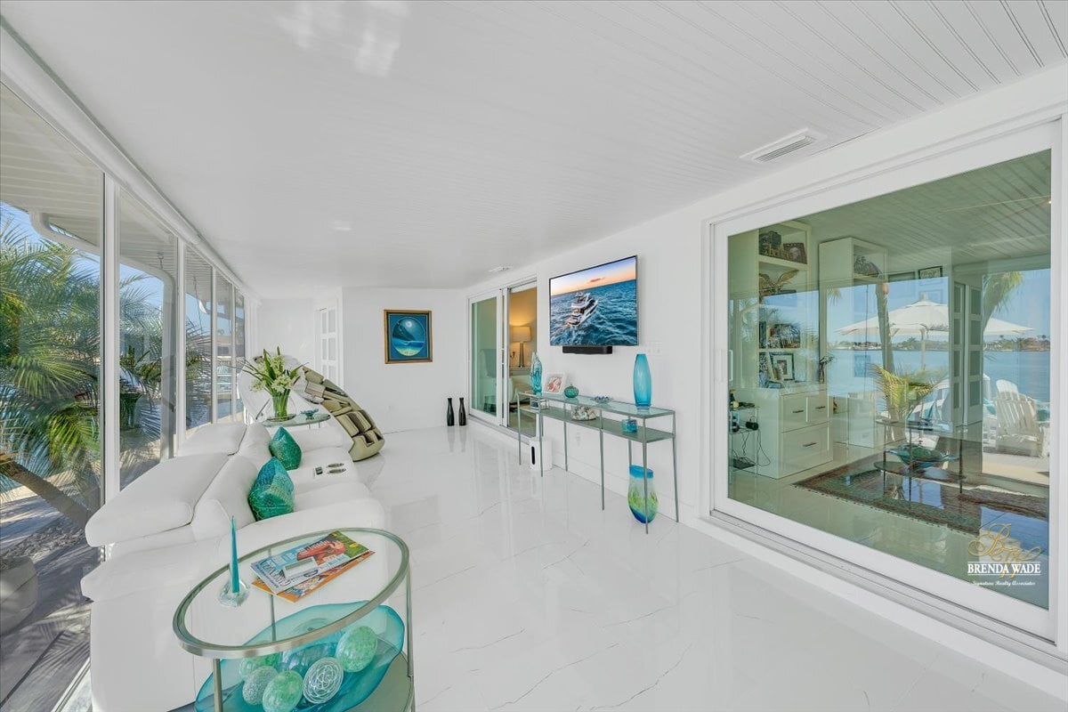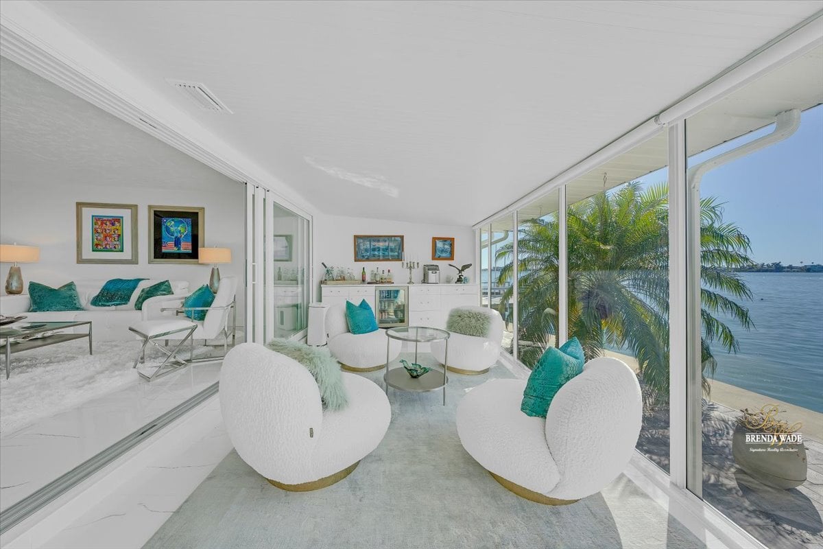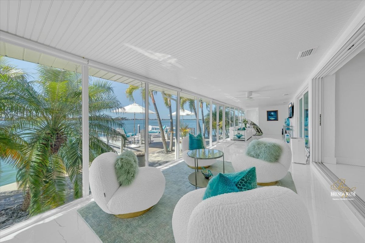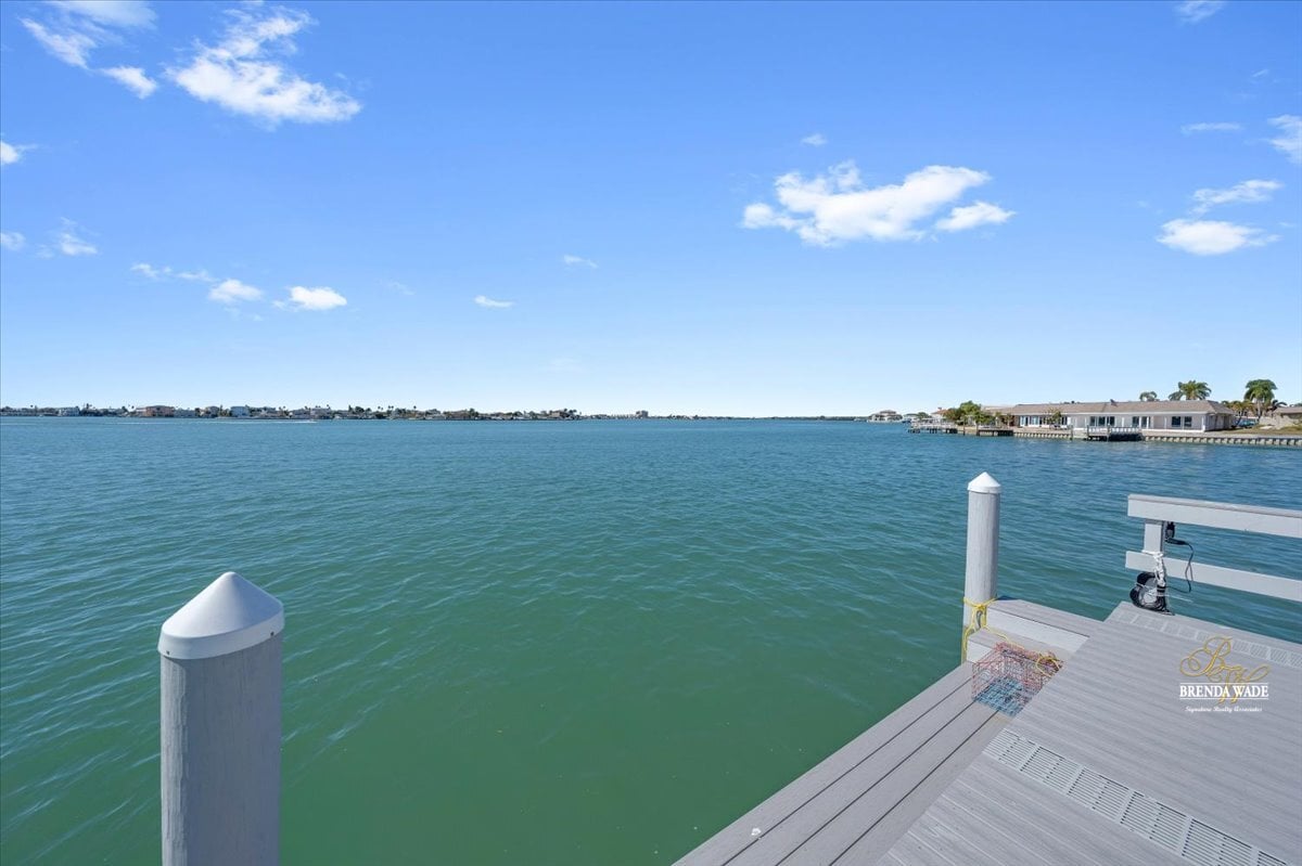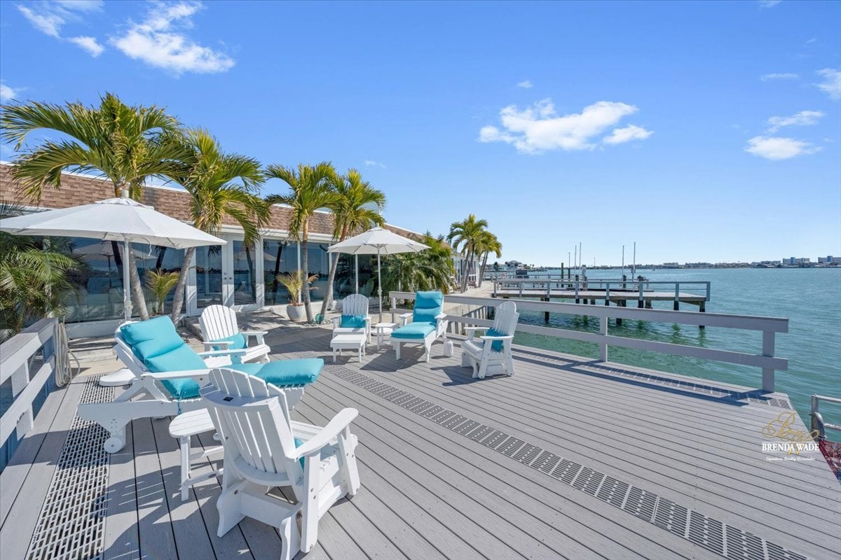 Dockside by day and breathtaking sunsets by night--this exceptional waterfront residence offers the very best of Florida living. Rarely available and completely reimagined, this fully remodeled 3-bedroom, 3-bathroom waterfront condo in the highly sought-after Boca Ciega Point showcases 55 feet of direct Intracoastal frontage with stunning open water views from nearly every room and unforgettable sunsets thanks to its rare due-west exposure. From the moment you arrive, the home welcomes you with a charming private courtyard entry--creating a warm and inviting first impression before stepping inside to a bright, beautifully updated interior. Every inch of this home has been thoughtfully renovated with careful attention to quality, function, and design. Oversized sliders frame speechless water views and fill the living spaces with natural light. A remodeled kitchen blends style and practicality with stainless appliances, custom cabinetry with pull-out drawers, and private access to the courtyard--perfect for effortless indoor-outdoor living. Elegant upgrades continue throughout the home with beautifully remodeled bathrooms, sophisticated 5-lite tempered frosted glass interior doors, custom light fixtures, and abundant storage solutions designed to maximize space and organization. The primary suite overlooks the Intracoastal, offering peaceful water views, a walk-in closet, and a beautifully updated ensuite bath with an oversized soaking tub with a shower attachment for added convenience. The oversized second bedroom comfortably accommodates two queen beds and features its own private ensuite bath and custom walk-in closet, while the third waterfront bedroom provides flexibility as a guest retreat, office, or additional living space. Designed to fully embrace Florida's indoor-outdoor lifestyle, the air-conditioned Florida room features custom roll-down shades and a built-in bar, creating the perfect setting for relaxing or entertaining while enjoying the waterfront scenery. Boating enthusiasts will appreciate the brand-new 25' x 20' private dock with swim platform and flow-through decking, along with a new seawall cap (2021)--making this a true boater's dream. The property also includes an oversized detached garage with additional storage, a rare and valuable feature for waterfront condo living. Located within Boca Ciega Point, one of West St. Petersburg's premier waterfront communities, residents enjoy gated security and resort-style amenities including a heated pool, fitness center, library, putting green, saunas, bocce ball, tennis courts, shuffleboard, boat club, and a vibrant calendar of social events.