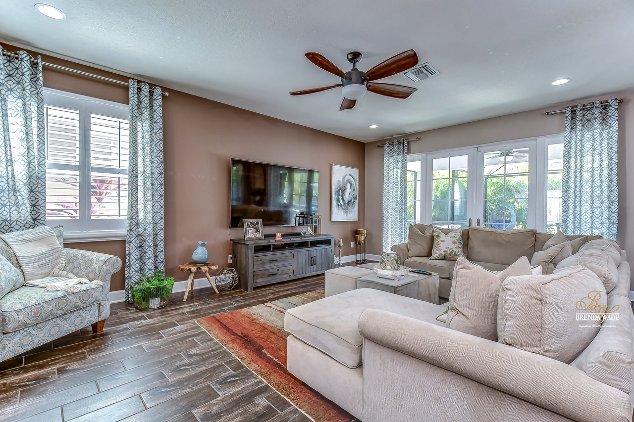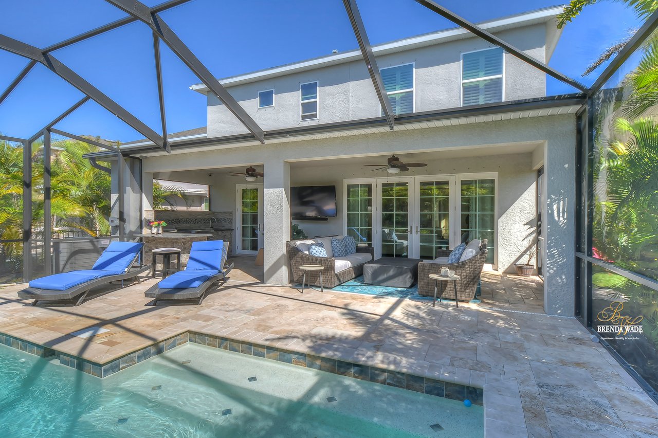 View the home virtually with this link: my.matterport.com/show/?m=kSTcwx9aMe5 Welcome to the highly desirable Waterset community! Waterset is loaded with amazing amenities including resort-style pools featuring waterslides, splash pads, clubhouse, fitness center, playgrounds, volleyball basketball, and tennis courts! As you drive down the quiet, well-kept street you will arrive at this lush, nicely manicured landscaping, charming front porch, and glass front door entrance! The outdoor oasis is everything you’ve been aspiring for! Glistening pool with fountain features, travertine tile patio, outdoor kitchen with grill and sink, screened lanai, and privacy landscaping! The whole family will enjoy their summer days out here! The outside is SPECTACULAR, but the inside will NOT disappoint either! As you step inside and notice the wood-look tile flooring, high ceilings, and neutral paint, you will instantly be able to imagine your décor in this home! Most past the foyer and into the open concept floor plan that starts with the family room! This open space features upgraded French doors with sidelights allowing for a beautiful view of the pool! The gourmet kitchen will please the chef in the family with the granite counters, 42-in large cabinets topped with crown, stainless appliances, backsplash, and oversized center island with seating! The kitchen opens to the dining room with French door access to the lanai! Head upstairs and discover the exquisite owner’s suite with tray ceiling, HUGE walk-in closet, and en-suite with granite counters, dual sinks, and oversized walk-in shower! Two additional bedrooms reside upstairs with walk-in closets and share a jack and jill bathroom with separate vanities! The fourth bedroom is on the first floor with a full bathroom nearby, PERFECT for guests! This well-cared home is ready for its next loving family to call it their own! Schedule your showing today!
