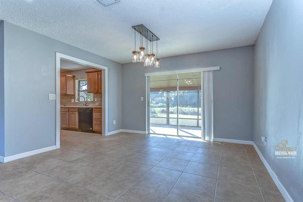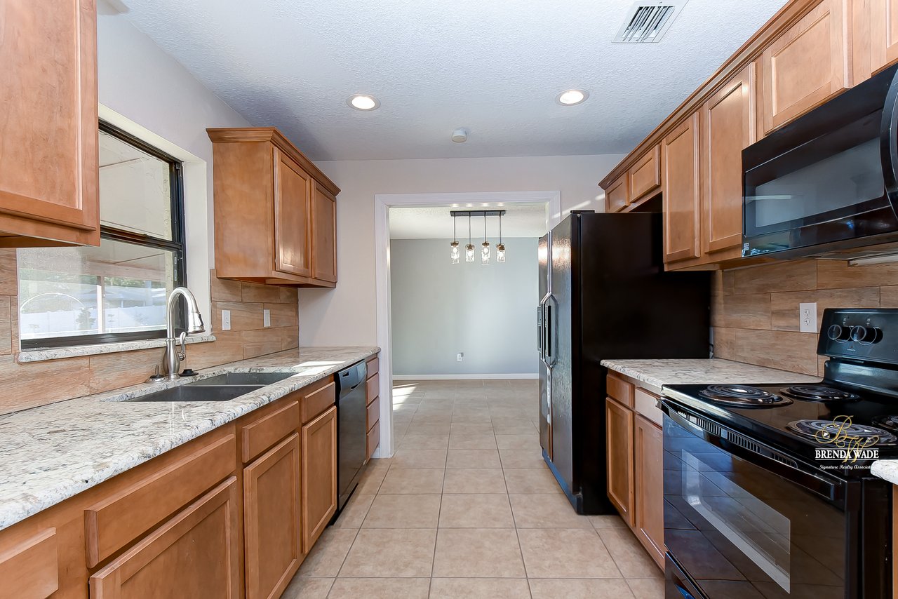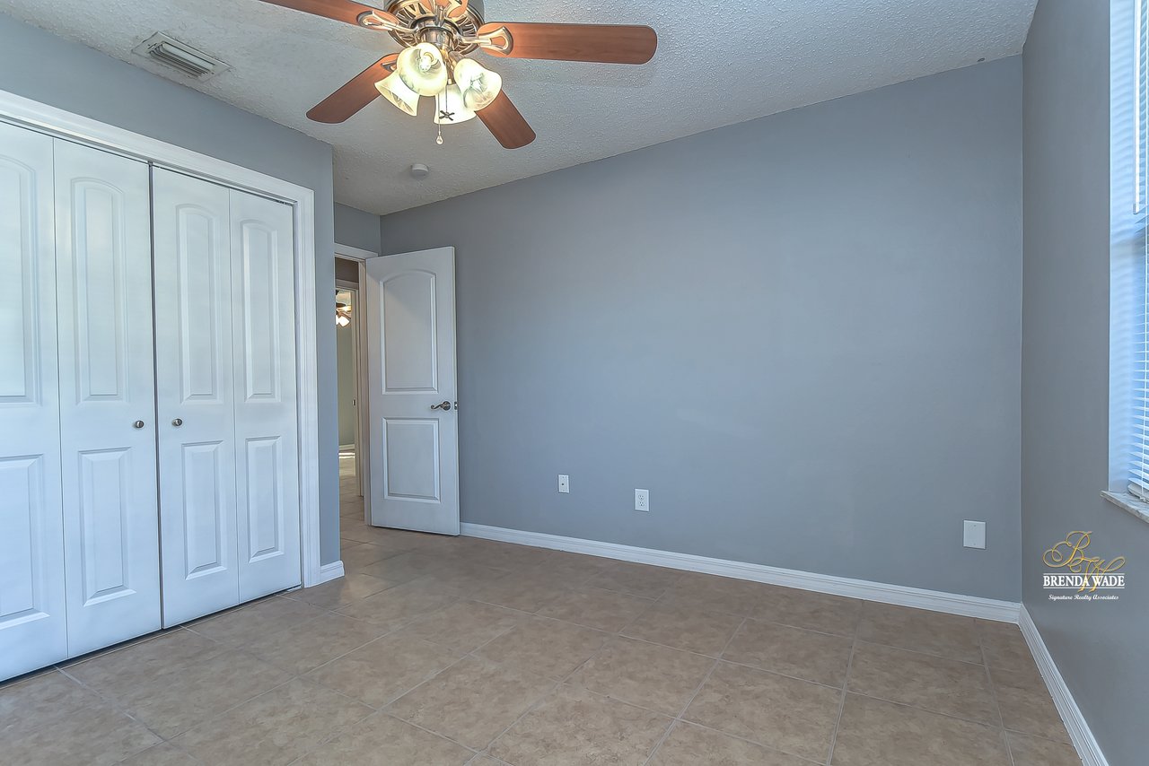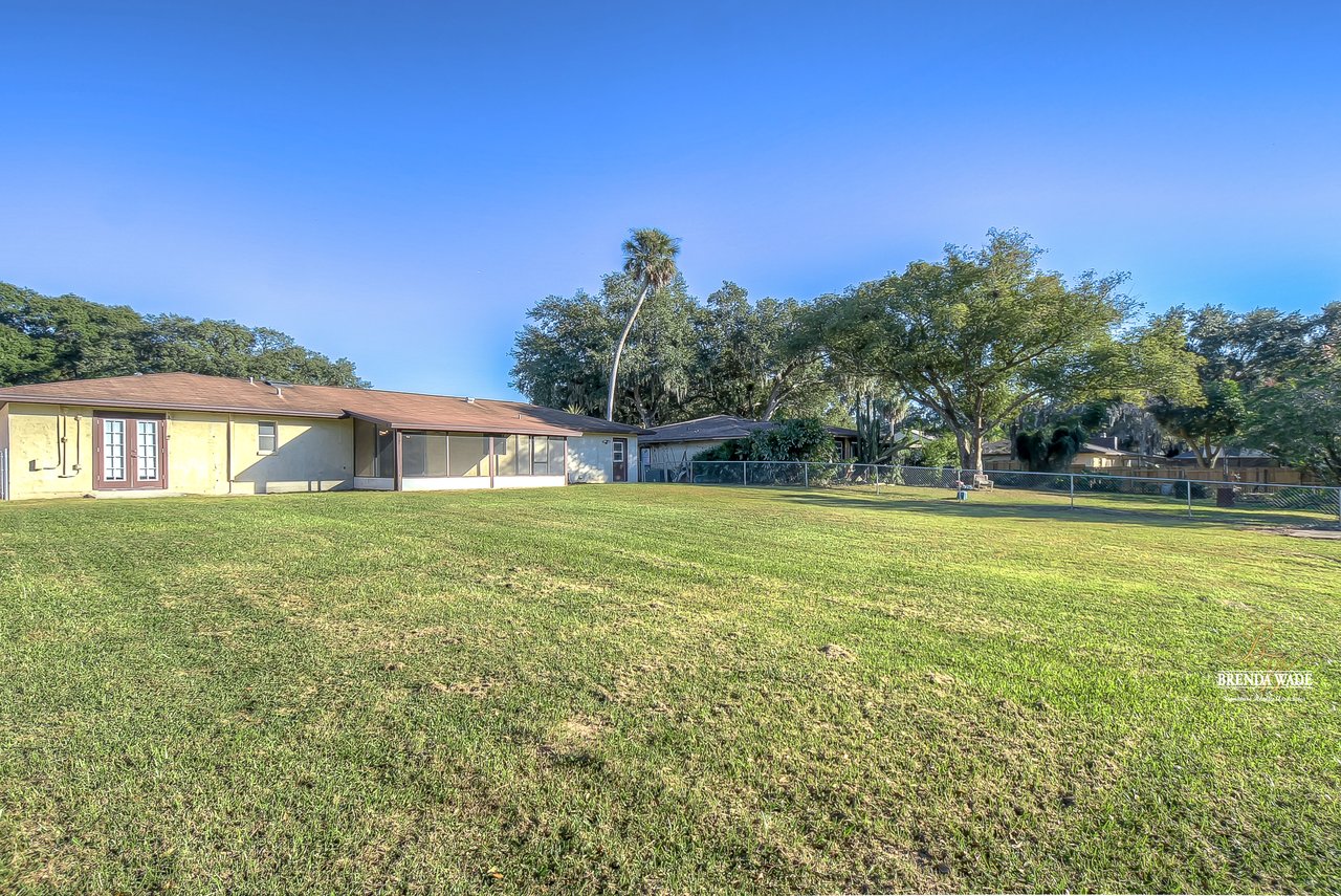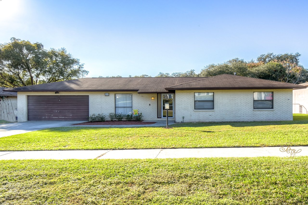 Beautiful 3-bedroom, 2-bathroom home located in the Shangri La community! Prepare to be amazed by the remarkably crafted details at this well-maintained and updated home! Trendy white brick exterior, clean landscaping, and two-car garage blend together to create the curb appeal you are looking for! Inside the home, you will quickly notice the neutral paint, bright natural light, and NO CARPET throughout the entire home! There is an open concept layout, so this house lives big! The great room at the front of the home has a floor-to-ceiling window, ceiling fan, and endless space to make some GREAT memories with your loved ones! There is a generously sized dining room with updated light fixtures and access to the screened lanai that flows directly into the gallery-style kitchen! Granite counters, rich wood cabinets with crown, sleek appliances, stunning backsplash, and a window overlooking the oversized backyard! The owner’s suite is a delight with private French doors leading to the backyard, a walk-in closet, and a private attached bathroom that has been tastefully updated! Two additional sizable bedrooms share a second updated bathroom nearby! The Florida weather will be well enjoyed by the family with the large, screened, and covered lanai! You can relax in the shade or step outside to the fenced yard with fantastic privacy! There are no direct backyard neighbors here! This home is so well cared for, and ready for you! Don’t just take our word for it, come see it for yourself!