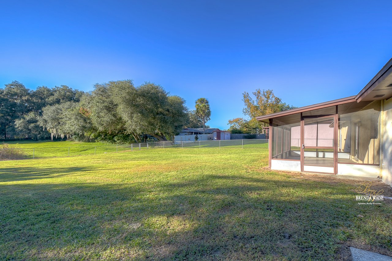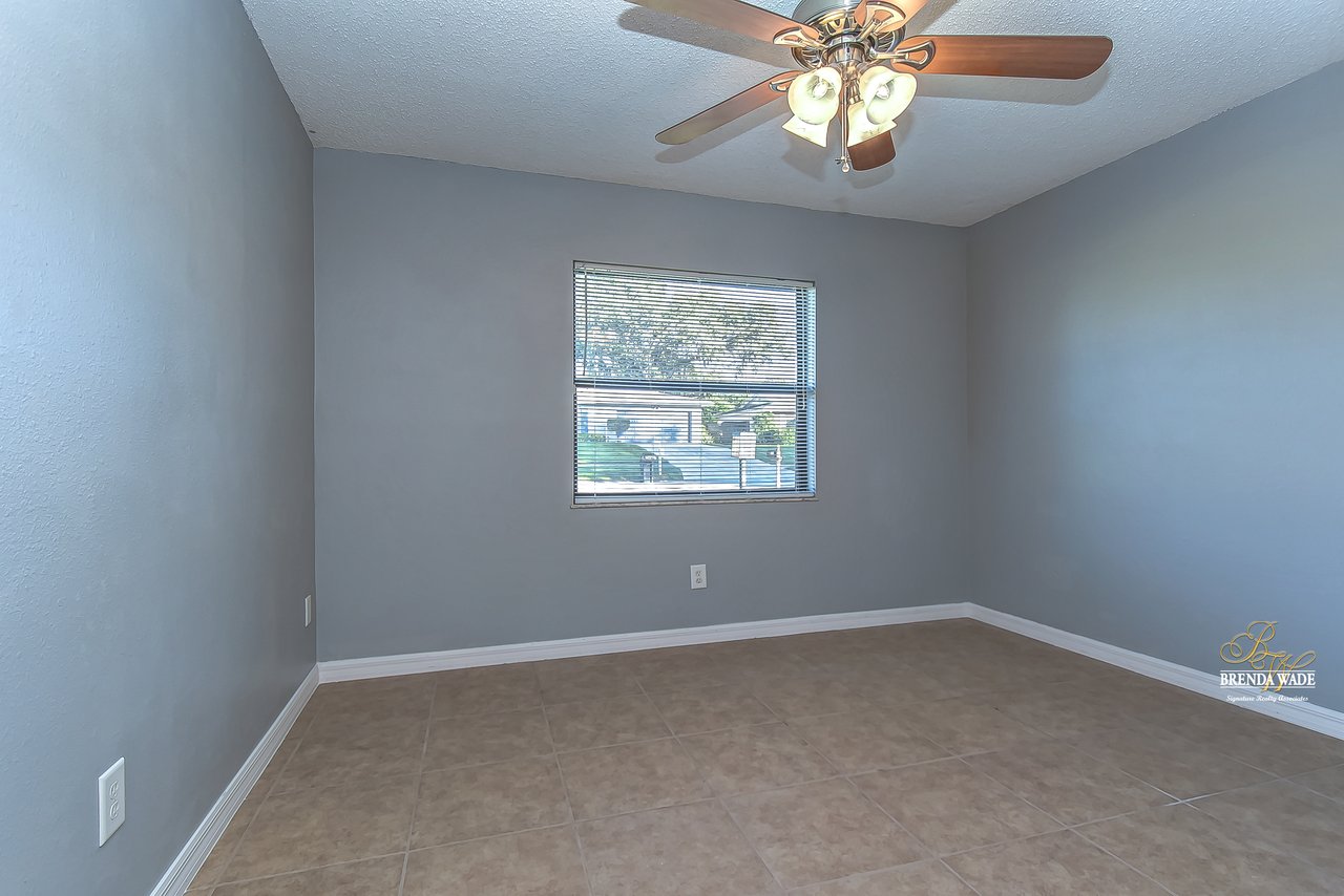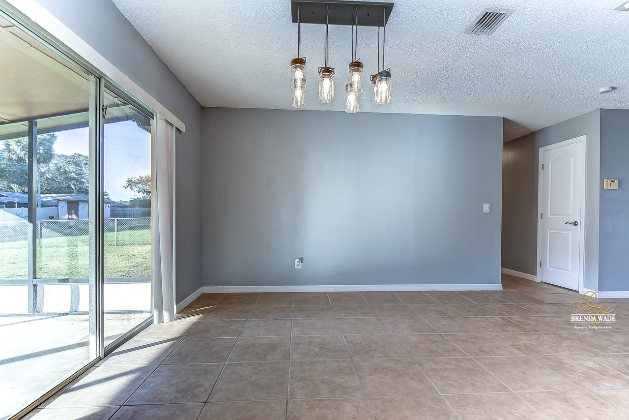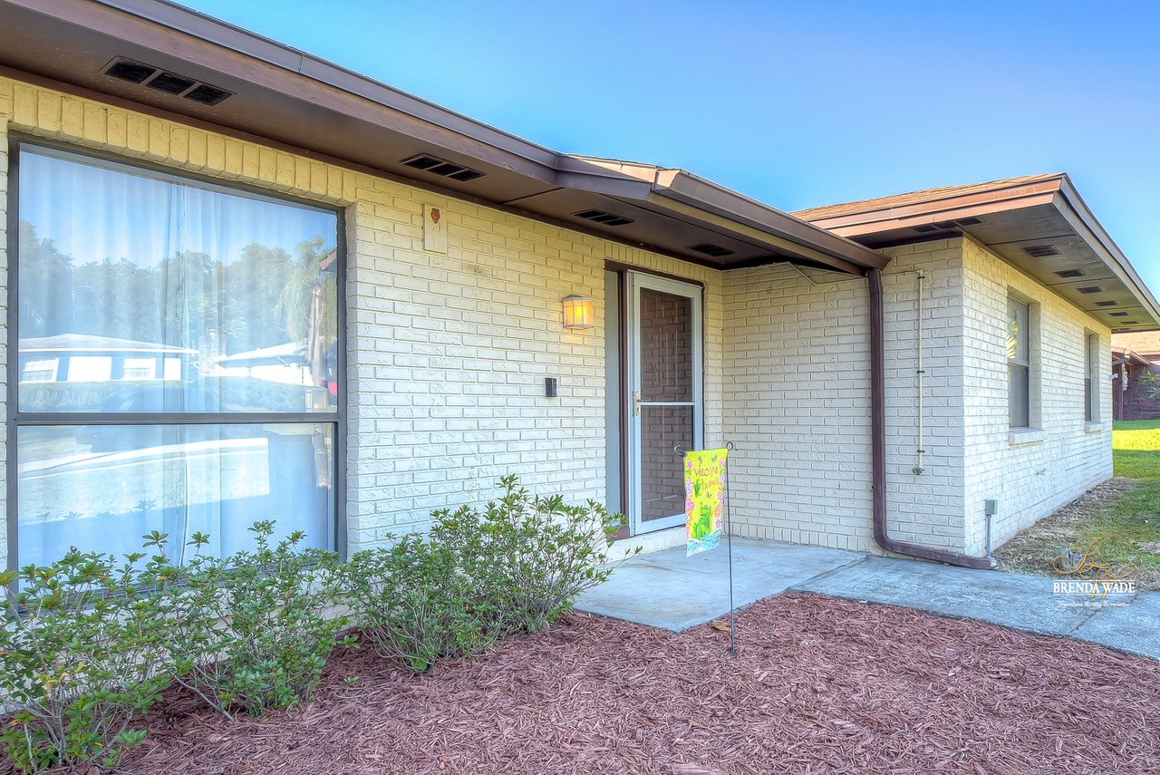 Beautiful 3-bedroom, 2-bathroom home located in the Shangri La community! Prepare to be amazed by the remarkably crafted details at this well-maintained and updated home! Trendy white brick exterior, clean landscaping, and two-car garage blend together to create the curb appeal you are looking for! Inside the home, you will quickly notice the neutral paint, bright natural light, and NO CARPET throughout the entire home! There is an open concept layout, so this house lives big! The great room at the front of the home has a floor-to-ceiling window, ceiling fan, and endless space to make some GREAT memories with your loved ones! There is a generously sized dining room with updated light fixtures and access to the screened lanai that flows directly into the gallery-style kitchen! Granite counters, rich wood cabinets with crown, sleek appliances, stunning backsplash, and a window overlooking the oversized backyard! The owner’s suite is a delight with private French doors leading to the backyard, a walk-in closet, and a private attached bathroom that has been tastefully updated! Two additional sizable bedrooms share a second updated bathroom nearby! The Florida weather will be well enjoyed by the family with the large, screened, and covered lanai! You can relax in the shade or step outside to the fenced yard with fantastic privacy! There are no direct backyard neighbors here! This home is so well cared for, and ready for you! Don’t just take our word for it, come see it for yourself!