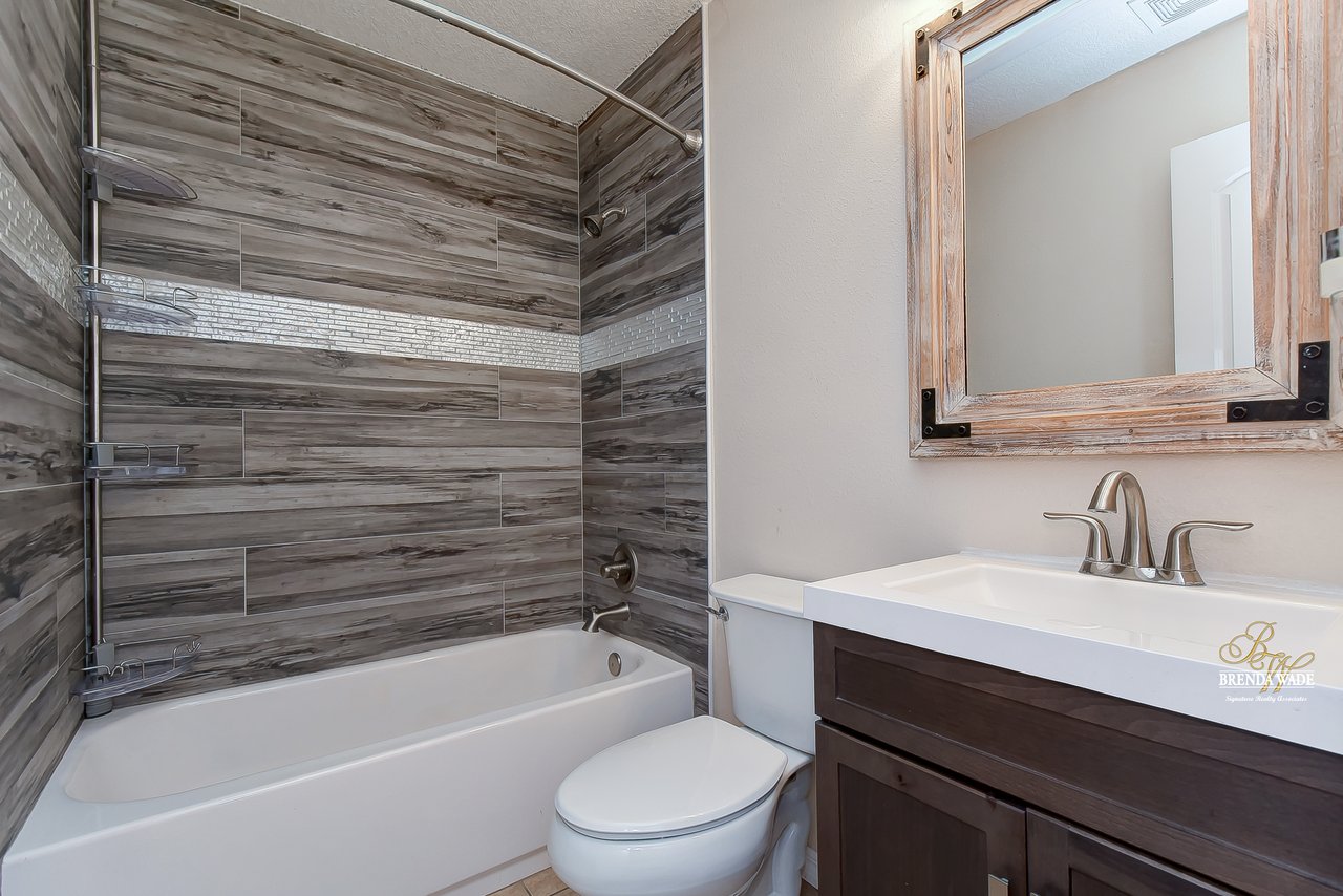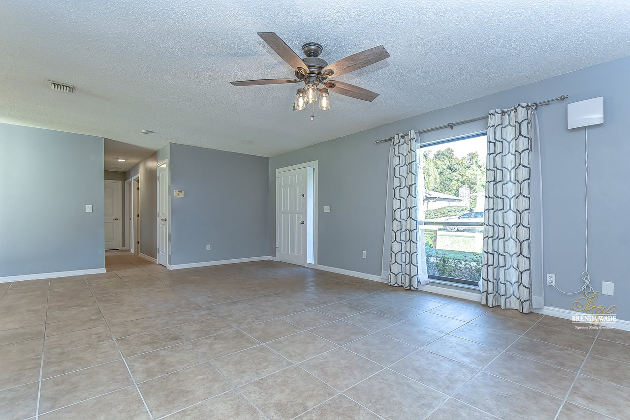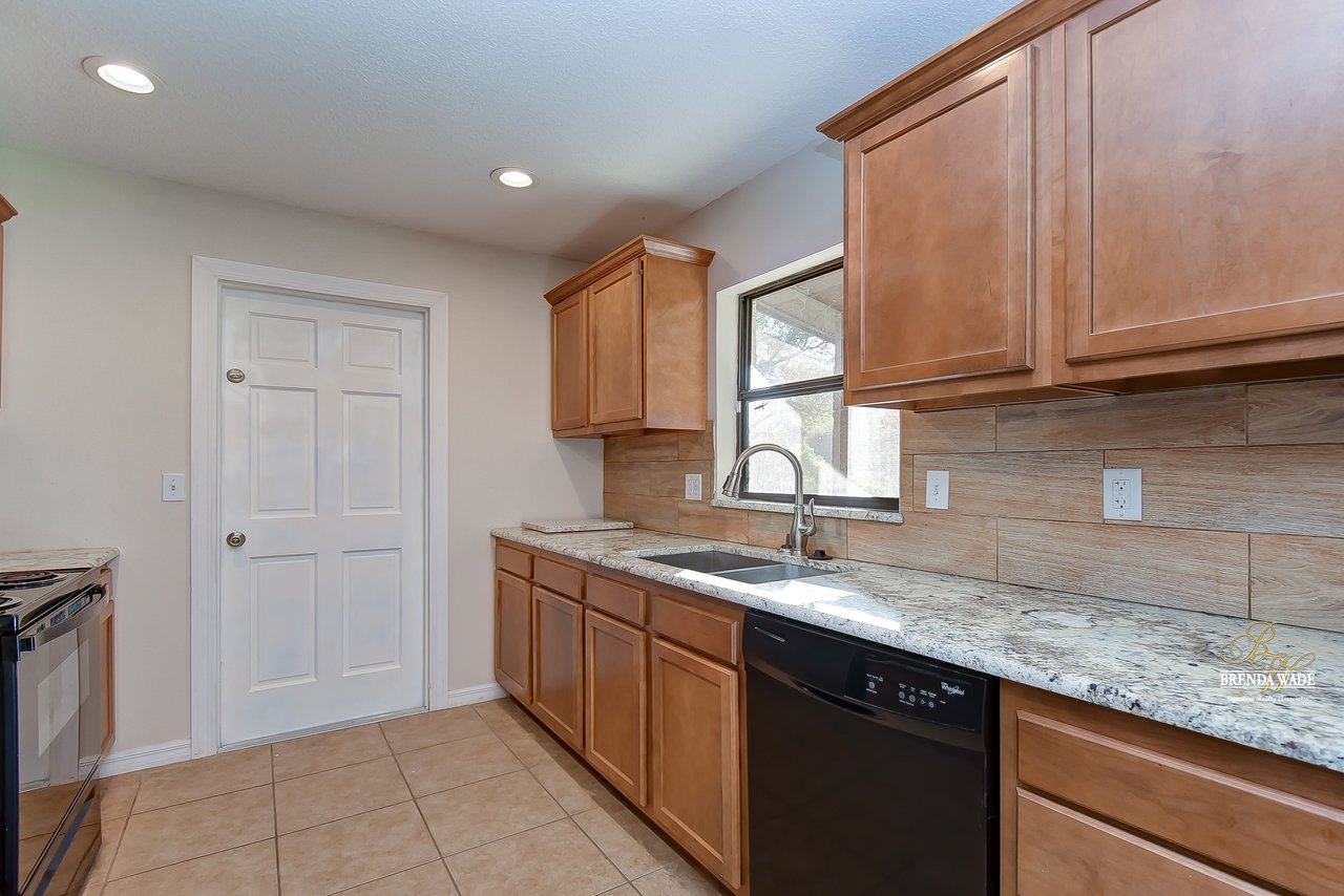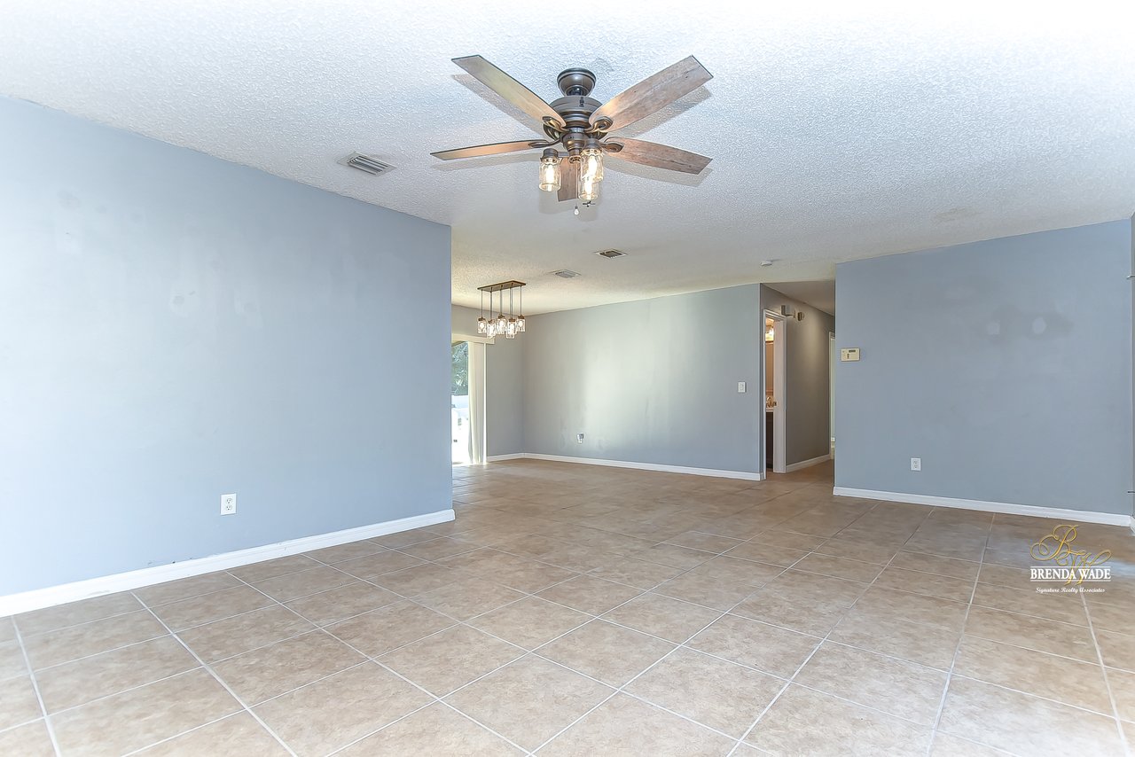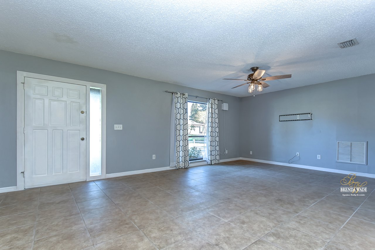 Beautiful 3-bedroom, 2-bathroom home located in the Shangri La community! Prepare to be amazed by the remarkably crafted details at this well-maintained and updated home! Trendy white brick exterior, clean landscaping, and two-car garage blend together to create the curb appeal you are looking for! Inside the home, you will quickly notice the neutral paint, bright natural light, and NO CARPET throughout the entire home! There is an open concept layout, so this house lives big! The great room at the front of the home has a floor-to-ceiling window, ceiling fan, and endless space to make some GREAT memories with your loved ones! There is a generously sized dining room with updated light fixtures and access to the screened lanai that flows directly into the gallery-style kitchen! Granite counters, rich wood cabinets with crown, sleek appliances, stunning backsplash, and a window overlooking the oversized backyard! The owner’s suite is a delight with private French doors leading to the backyard, a walk-in closet, and a private attached bathroom that has been tastefully updated! Two additional sizable bedrooms share a second updated bathroom nearby! The Florida weather will be well enjoyed by the family with the large, screened, and covered lanai! You can relax in the shade or step outside to the fenced yard with fantastic privacy! There are no direct backyard neighbors here! This home is so well cared for, and ready for you! Don’t just take our word for it, come see it for yourself!