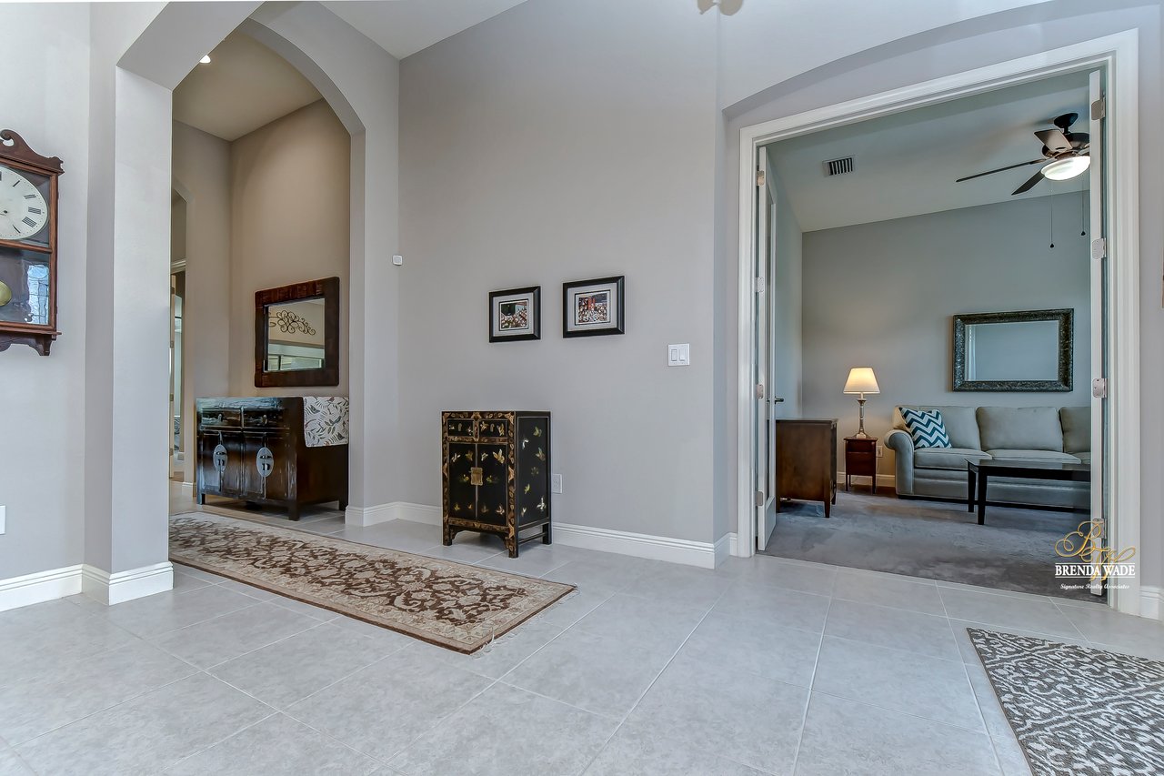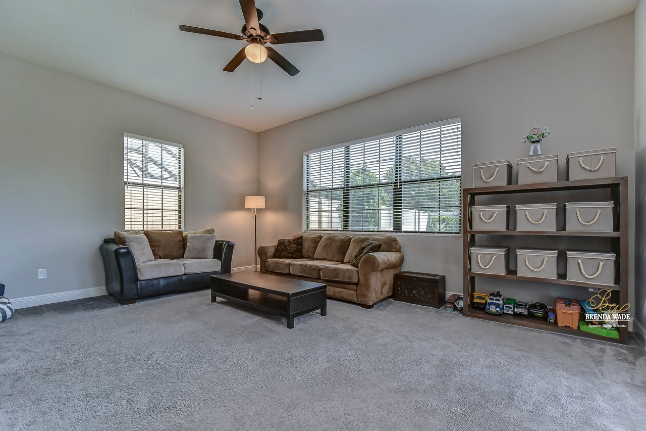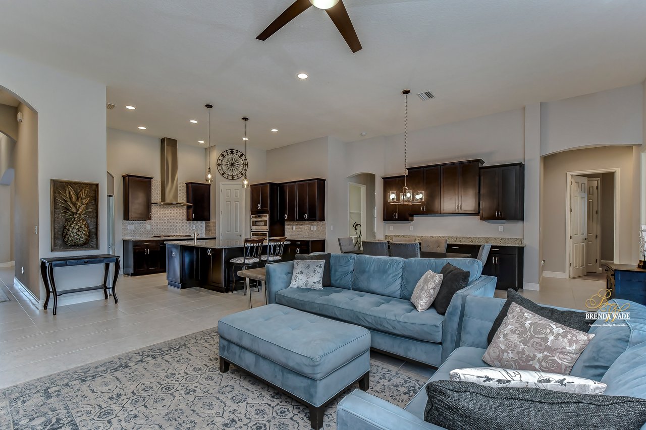 You won't want to miss this spectacular Westbay "Key Largo" home with CUSTOM FINISHES at every turn! Built in 2017, this one-owner home is move-in ready and GOOD AS NEW! Located in the gated community of La Collina in Brandon, you will love the quick access to SR-60, I-75, and the CrossTown! Pavered driveway & walkway, meticulous tropical landscaping, 3-car garage, and a front porch with archways welcome you! From the moment you step inside you will know that you have found your new home! Soaring 13-ft ceilings, neutral paint, wide baseboards, arch entryways, and a bright, open concept layout will please even the most discerning buyer! There is a water conditioner for the whole house, Zap-Cap surge protector, and tinted front and back windows for energy efficiency AND privacy! The dining room will greet you with tray ceiling and crown molding as well as direct kitchen access! Speaking of the kitchen... P E R F E C T I O N! This room is the heart of the home and is dripping in upgrades and custom touches! High-end GE Profile appliances including built-in oven and microwave, 42-in cabinets with crown, oversized center island with extended bar seating, nice backsplash, and statement range hood! There is a generously sized dinette with custom built-in cabinet and counter space, practically a second dining room! The family room is oh so spacious with a wall of sliders and wired for surround sound, the ENTIRE family will enjoy time together here! The primary suite is secluded on one side of the home behind a set of double doors! Featuring a wide tray ceiling, private lanai access, dual walk-in closets, and spa-like en-suite with double sinks, added drawers, garden tub, and walk-in shower with bench and body jet sprayers! The triple split floorplan has two bedrooms sharing one bathroom in one wing of the home while the fourth bedroom with walk-in closet is at the back of the home with a third bathroom! The owners have added a solid core door to the bonus room at the back of the home to help with sound control! There is a set of French doors that lead its own lanai as well! The home office is at the front of the home behind a set of French doors with added curtains so you have the option to transform it into a guest room if desired! The backyard is oh so spacious with a fenced yard and plenty of room to build a pool! There is a covered lanai with pavered extensions and a top-of-the-line fully customizable Bullfrog jacuzzi! As an added bonus there are self-watering fruits and veggies growing as well as two additional areas with drip lines! This home is practically brand new and ready for its new owners! Don't walk... run! This one won't last long!