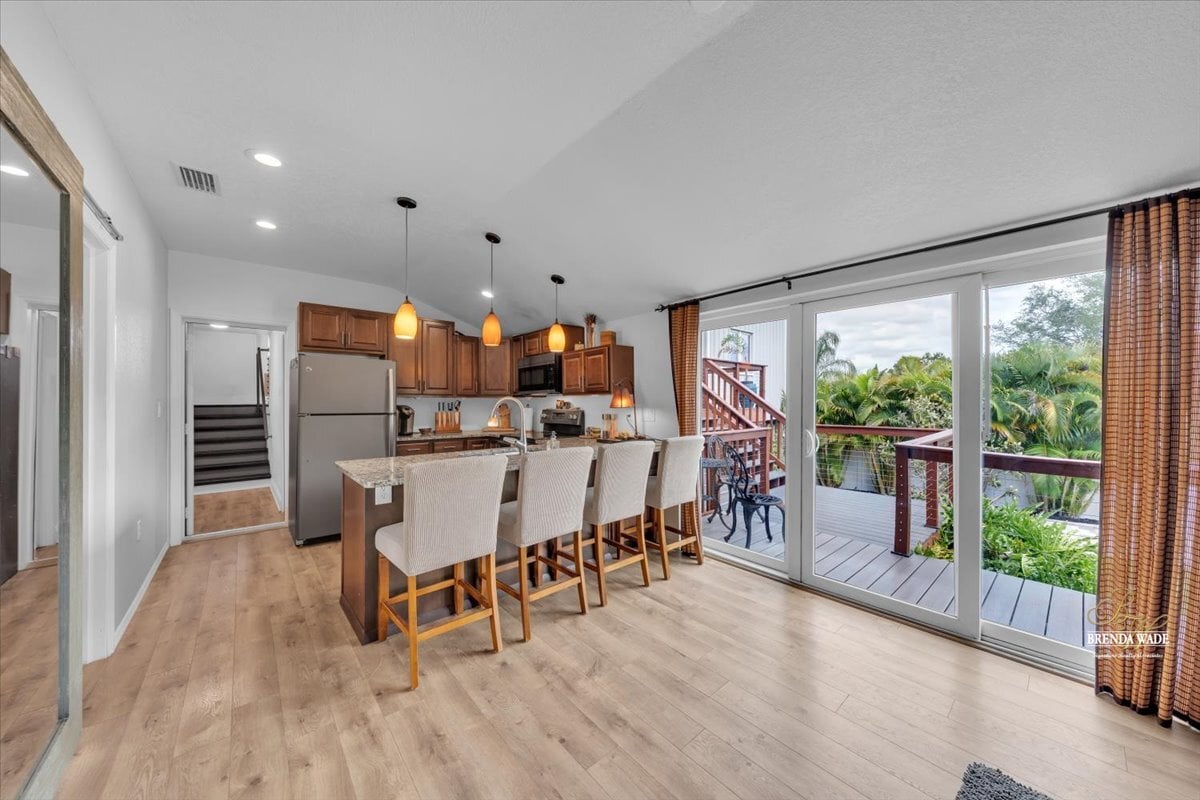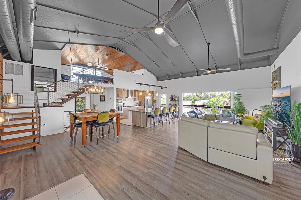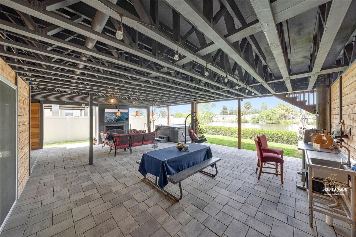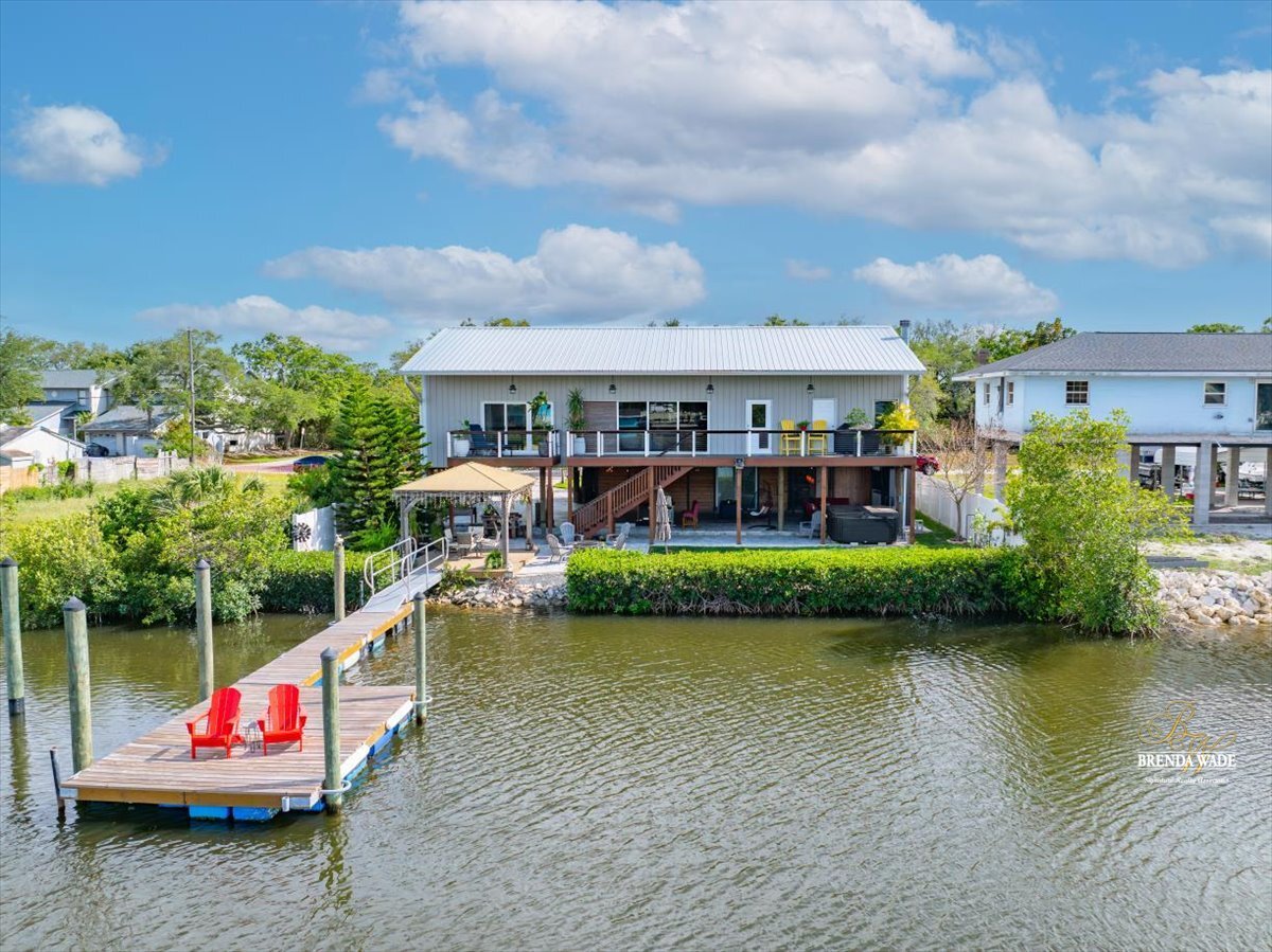 This is more than a home--it's a statement. Unique, sophisticated, and designed for both comfort and impact, this waterfront property offers a lifestyle--and value--that is truly unmatched. From the moment you arrive, this home makes a lasting impression. Thoughtfully designed with soaring ceilings, open-concept living, and dramatic architectural elements, every inch of this residence feels curated and intentional. Striking pine wood plank accent walls--beautifully backlit--add warmth and dimension, while expansive windows frame breathtaking water views that follow you throughout the home. At the heart of the home, the kitchen is both functional and unforgettable, featuring a seamless slab granite island that serves as a true showpiece. Designer finishes continue into the bathrooms, where elevated tile selections create spa-like spaces that feel both modern and timeless. The primary suite is a private retreat, complete with a massive walk-in closet, a secluded balcony overlooking the water, and its own private loft--perfect for a reading lounge, creative space, or additional storage. A second loft in the main living area offers incredible versatility, ideal for a billiards room, office, or additional entertaining space. Step outside and experience true Florida waterfront living. A floating dock with pre-installed capacity for a future boat lift makes getting on the water effortless, while a charming gazebo creates the perfect setting to unwind and take in the views. Designed with entertaining in mind, the nearly 1,000 sq ft covered outdoor space features a 6-person sauna, hot tub, and a wood-burning fireplace--creating the ultimate setting for relaxation or hosting. Pre-plumbed for an outdoor kitchen, this space is ready to become your dream outdoor oasis. The oversized carport is accented with cedar, adding both visual appeal and natural pest resistance, while a dedicated workspace and garden center enhance everyday functionality. The attached guest house offers incredible flexibility, featuring its own full kitchen, private balcony, and two bedrooms--ideal for an income-producing Airbnb, in-law suite, or private guest retreat. Beyond its beauty, this home delivers exceptional efficiency and peace of mind. With solar power significantly reducing electric costs, annual homeowners' insurance of approximately $2,500, and flood insurance around just $600, the cost of owning this waterfront property is as impressive as the home itself. Additional highlights include a 220 sq ft storage crawl space, two driveways, two security gates, and a seamless flow throughout the entire property. Whether you're searching for a full-time residence, a luxurious second home, or a high-performing Airbnb opportunity, the possibilities here are truly endless. For water lovers and boating enthusiasts, this is a rare chance to embrace the ultimate Florida lifestyle--where days begin on the water and end with breathtaking sunsets from your own backyard. Don't let this one-of-a-kind waterfront masterpiece--where urban chic design meets an unbeatable Tampa location just 8 minutes from Tampa International Airport and Raymond James Stadium--get away from you.