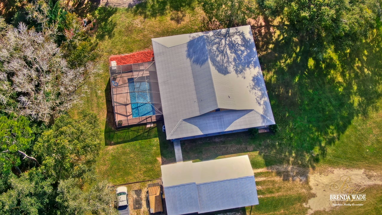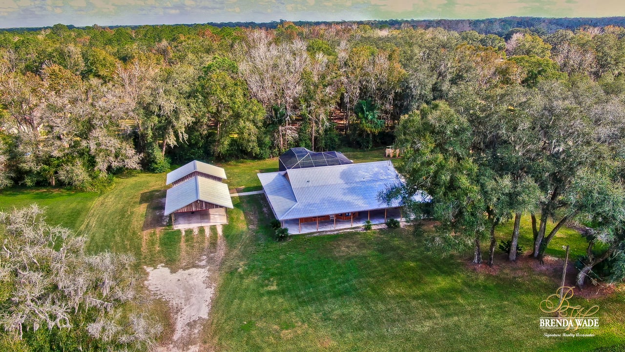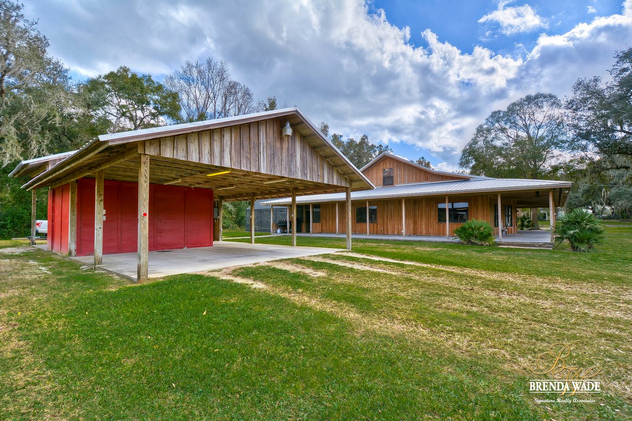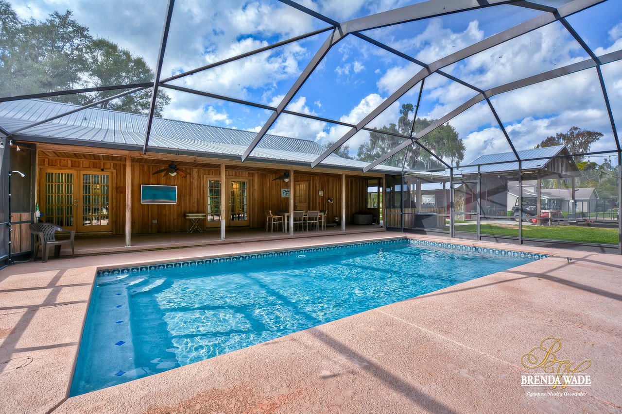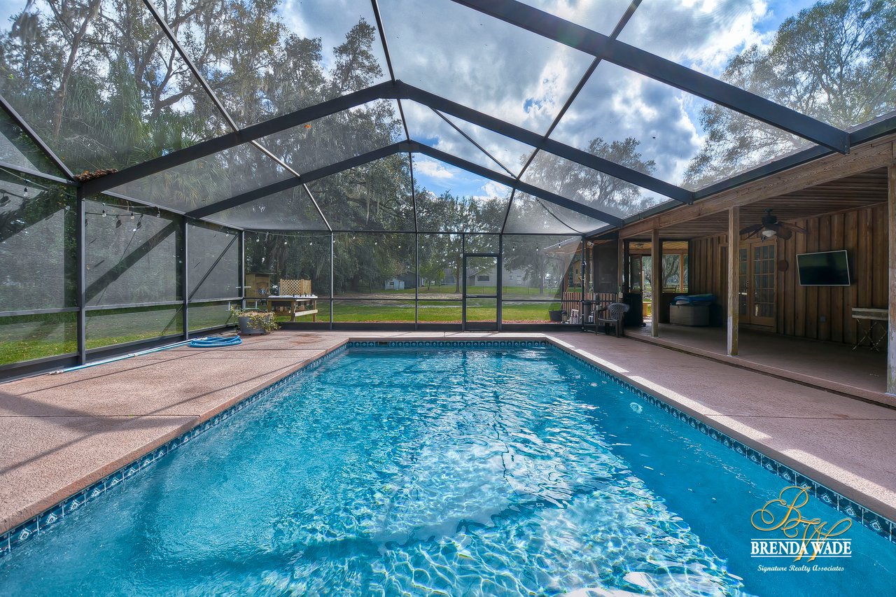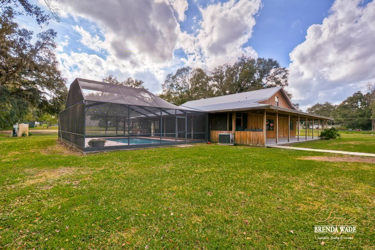 Wow! This stunning estate is jaw dropping, sitting on a lush 2 acres with wooded views and all the tranquility you’ve been searching for! The moment you step onto this property, you can feel time slowdown and relaxation pick up! Enjoy peace of mind knowing all the big ticket items have been taken care of for you! New roof in 2015, in 2018, roof on carport in 2018 and pool surface redone in 2018! This home was made for enjoying the outdoors with a southern style wrap around porch and screened in lanai with heated swimming pool, perfect to enjoy year-round! Walking inside the front door you will immediately appreciate the bright open concept floor plan! Kitchen is dreamy! Designer white cabinets topped with crown, huge center island with breakfast bar seating and stainless appliances! The dining room is open to the kitchen with bay windows. The family room is the heart of the home with vaulted ceilings and French doors leading to the lanai! Master suite is secluded on one side of the home with tons of seating space, private exit to the lanai and en-suite with his and hers walk-in closets, oversized vanities and walk-in shower! Two more bedrooms are opposite the home with tons of closet space! One of the secondary bedrooms features custom barn doors, gorgeous! Upstairs you’ll find two more guest suites! Need more storage space? The oversized covered carport/shed has multiple parking spaces and storage space with electric connection! This home is a dream come true! Come take a look!