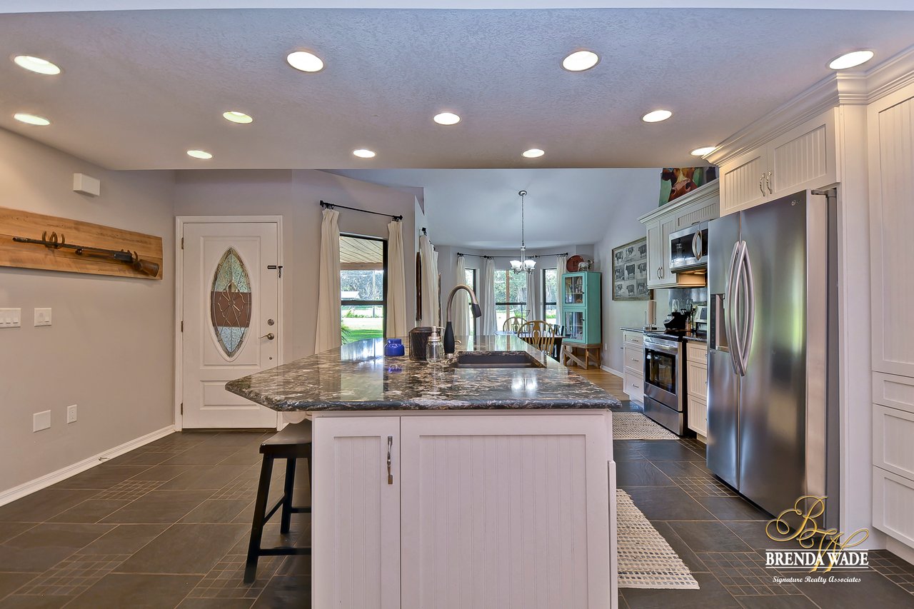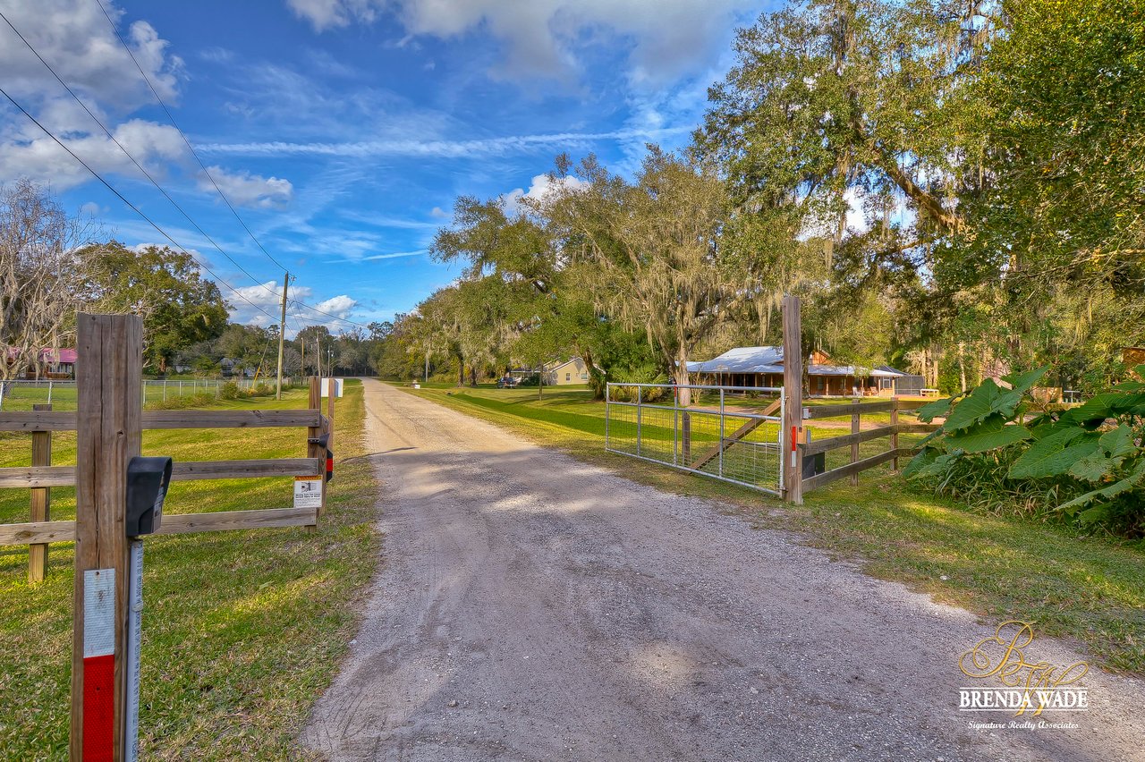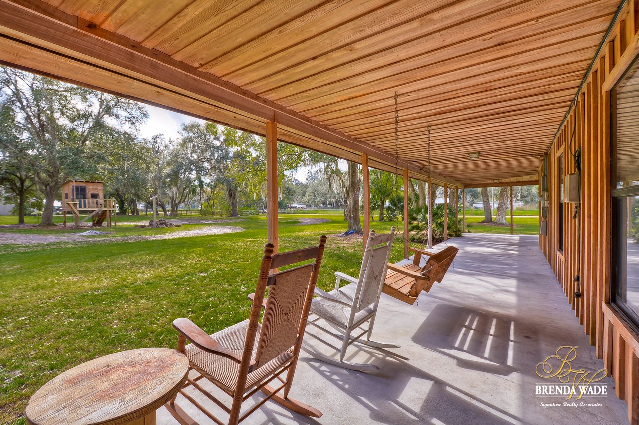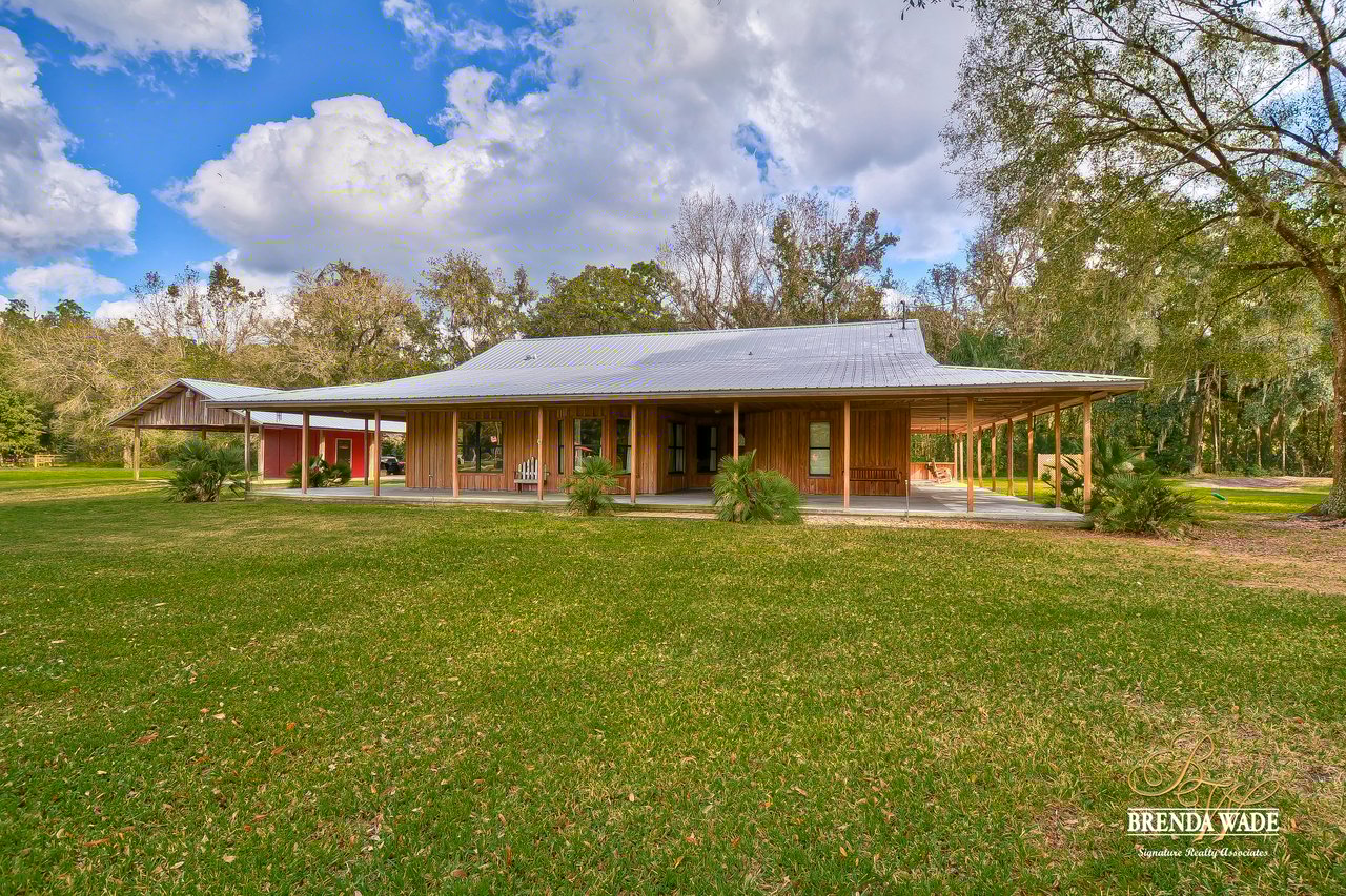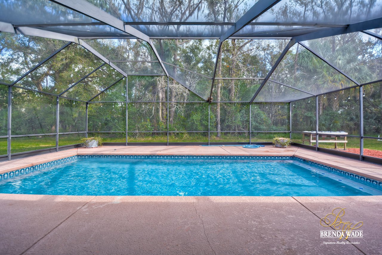 Wow! This stunning estate is jaw dropping, sitting on a lush 2 acres with wooded views and all the tranquility you’ve been searching for! The moment you step onto this property, you can feel time slowdown and relaxation pick up! Enjoy peace of mind knowing all the big ticket items have been taken care of for you! New roof in 2015, in 2018, roof on carport in 2018 and pool surface redone in 2018! This home was made for enjoying the outdoors with a southern style wrap around porch and screened in lanai with heated swimming pool, perfect to enjoy year-round! Walking inside the front door you will immediately appreciate the bright open concept floor plan! Kitchen is dreamy! Designer white cabinets topped with crown, huge center island with breakfast bar seating and stainless appliances! The dining room is open to the kitchen with bay windows. The family room is the heart of the home with vaulted ceilings and French doors leading to the lanai! Master suite is secluded on one side of the home with tons of seating space, private exit to the lanai and en-suite with his and hers walk-in closets, oversized vanities and walk-in shower! Two more bedrooms are opposite the home with tons of closet space! One of the secondary bedrooms features custom barn doors, gorgeous! Upstairs you’ll find two more guest suites! Need more storage space? The oversized covered carport/shed has multiple parking spaces and storage space with electric connection! This home is a dream come true! Come take a look!