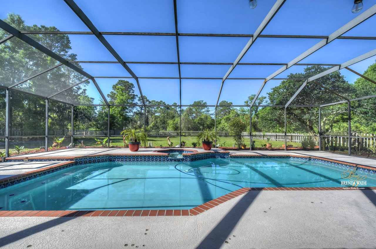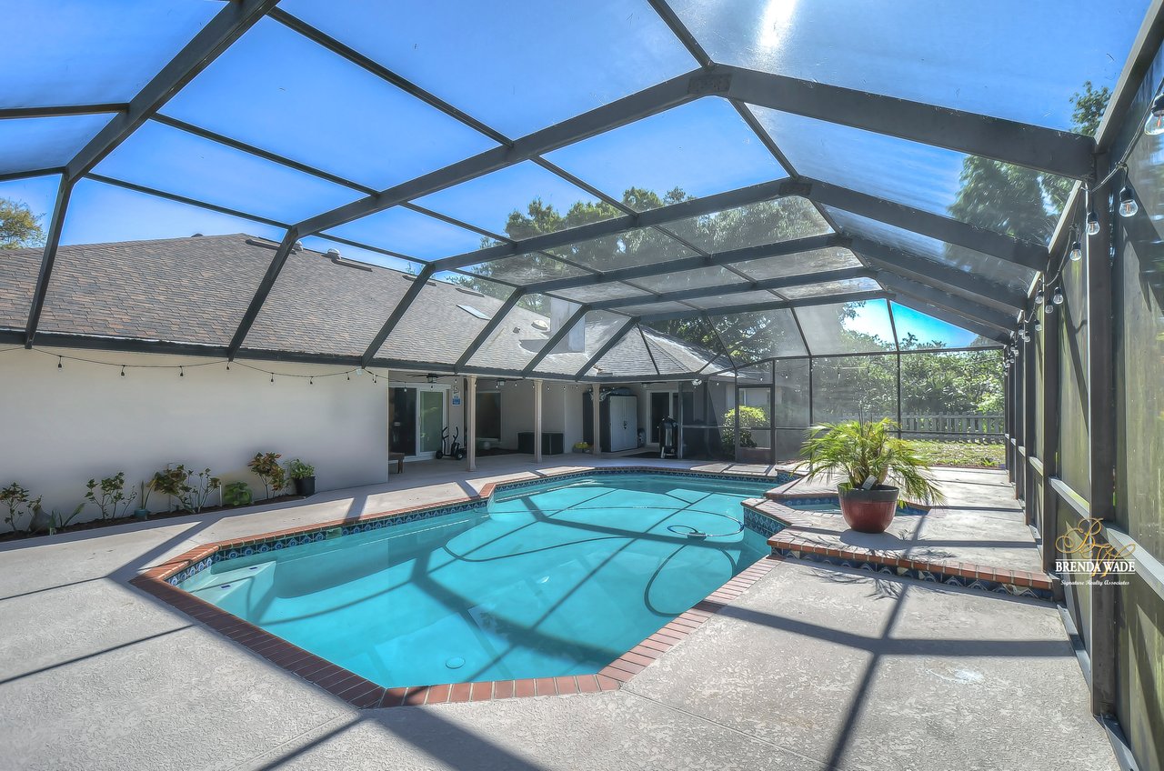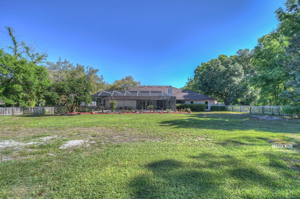 ONE OF A KIND! Opportunities like this don’t come around often! This wonderful pool home is situated on an oversized 1.15-acre lot in the prestigious community of Southoak! Arriving at the house you will immediately fall in love with the brick exterior, side entry garage and extended drive! Inside awaits rich wood flooring, neutral paint and bright open floor plan! Natural light pours into the house from every room with NEW GLASS WINDOWS AND DOORS throughout! Formal dining room will be your favorite place to entertain with new floors and flows directly into the AMAZING KITCHEN! Any chef in the family will marvel over this expansive kitchen! Center island, stainless appliances including NEW REFRIGERATOR AND MICROWAVE IN 2021, granite counters, subway tile backsplash and so much more! Eat in nook boasts large pocket sliding glass doors opening from the center looking out to the lanai and pool! There is a bright home office behind French doors with bay windows so you can have a peaceful view while you work from home! Family room is the heart of the home with cozy fireplace and adjacent bonus room with wet bar and more sliders to the lanai, this home was built for entertaining! The owner’s suite is a true retreat, secluded on one side of the house with private sliders to the lanai and en-suite with updated, his & hers vanity, walk-in shower, and a huge walk-in closet featuring custom built-in! Three more secondary bedrooms each offer oversized closets! Second full bath is complete with dual sinks, garden tub and separate shower! Need a quiet homework space? A cozy office/craft room is just the place! Step out onto the lanai and be welcomed to paradise! Sparkling swimming pool & spa, tons of covered seating; all overlooking the vast, fully fenced yard! More desirable updates include: a NEW WELL PUMP in 2021 and a BRAND NEW IRRIGATION CONTROLLER with 8 zones and WiFi connected app! This is a dream come true! Move-in ready and waiting for even the most discerning buyer!