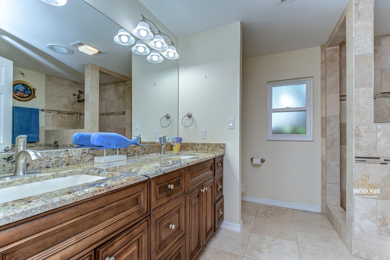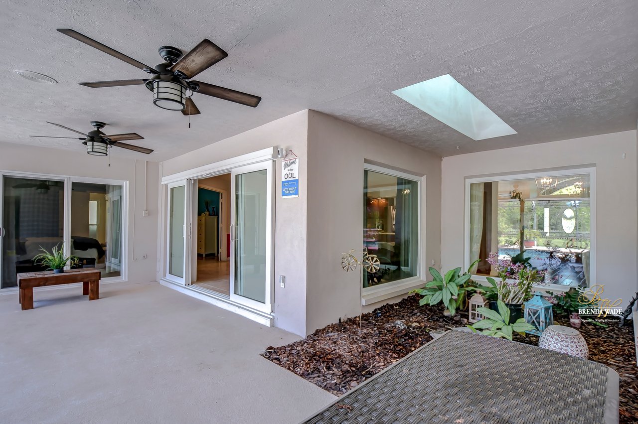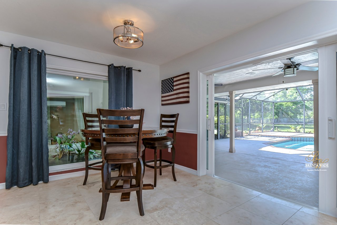 ONE OF A KIND! Opportunities like this don’t come around often! This wonderful pool home is situated on an oversized 1.15-acre lot in the prestigious community of Southoak! Arriving at the house you will immediately fall in love with the brick exterior, side entry garage and extended drive! Inside awaits rich wood flooring, neutral paint and bright open floor plan! Natural light pours into the house from every room with NEW GLASS WINDOWS AND DOORS throughout! Formal dining room will be your favorite place to entertain with new floors and flows directly into the AMAZING KITCHEN! Any chef in the family will marvel over this expansive kitchen! Center island, stainless appliances including NEW REFRIGERATOR AND MICROWAVE IN 2021, granite counters, subway tile backsplash and so much more! Eat in nook boasts large pocket sliding glass doors opening from the center looking out to the lanai and pool! There is a bright home office behind French doors with bay windows so you can have a peaceful view while you work from home! Family room is the heart of the home with cozy fireplace and adjacent bonus room with wet bar and more sliders to the lanai, this home was built for entertaining! The owner’s suite is a true retreat, secluded on one side of the house with private sliders to the lanai and en-suite with updated, his & hers vanity, walk-in shower, and a huge walk-in closet featuring custom built-in! Three more secondary bedrooms each offer oversized closets! Second full bath is complete with dual sinks, garden tub and separate shower! Need a quiet homework space? A cozy office/craft room is just the place! Step out onto the lanai and be welcomed to paradise! Sparkling swimming pool & spa, tons of covered seating; all overlooking the vast, fully fenced yard! More desirable updates include: a NEW WELL PUMP in 2021 and a BRAND NEW IRRIGATION CONTROLLER with 8 zones and WiFi connected app! This is a dream come true! Move-in ready and waiting for even the most discerning buyer!