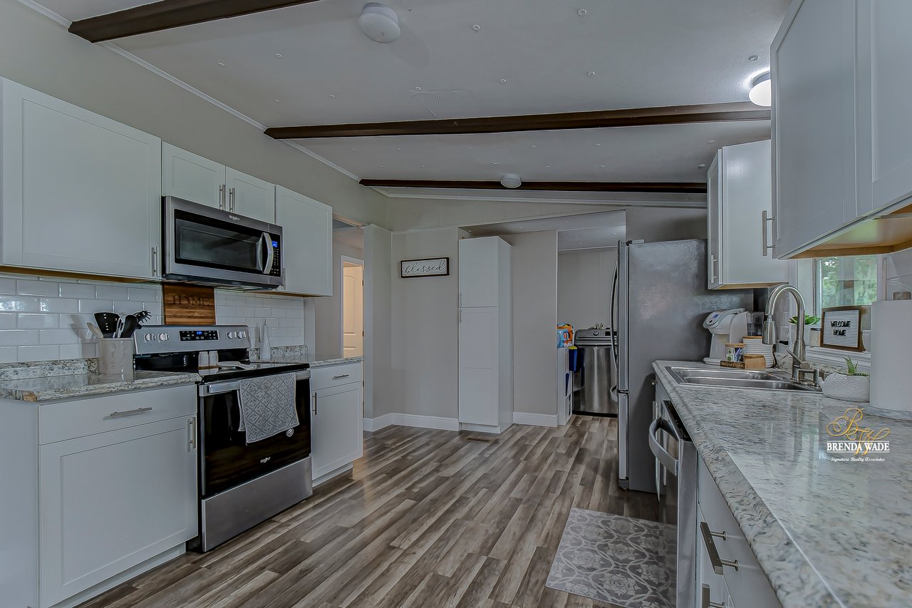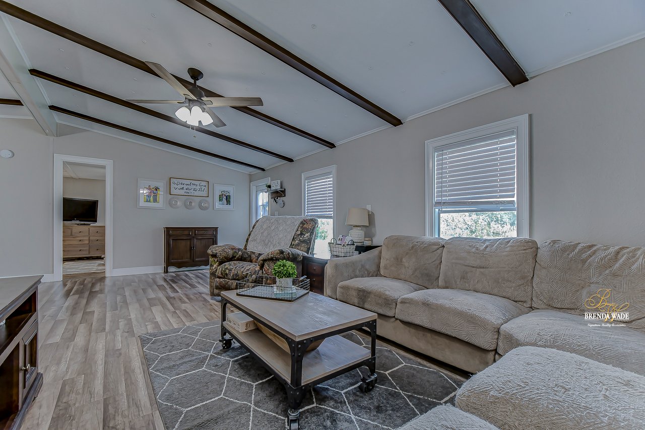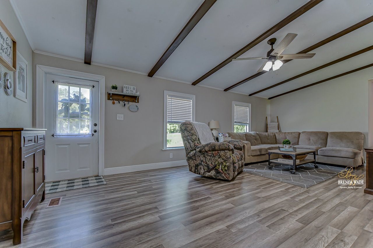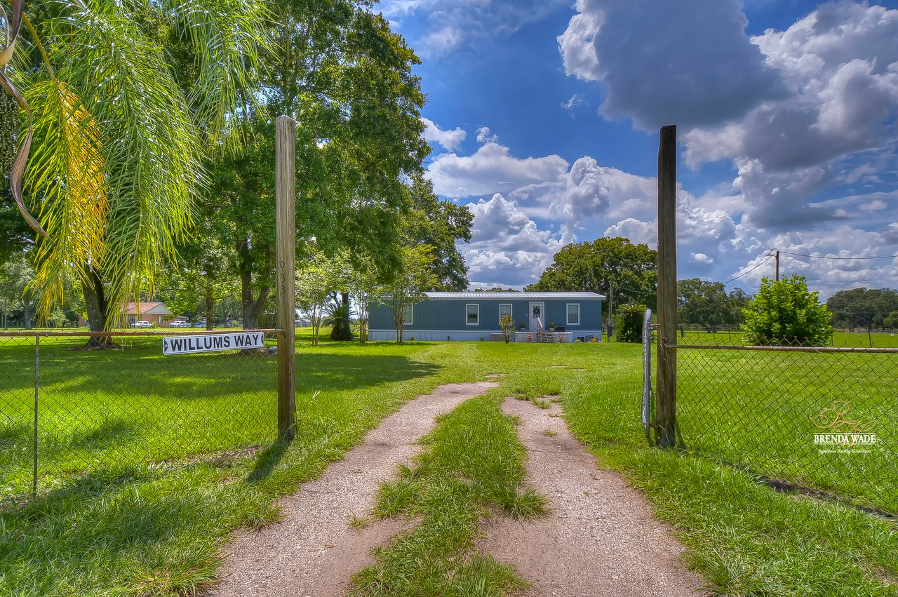 WOW! Opportunities like this do NOT come around often.... 4.5 acres of FLAT, HIGH, AND DRY LAND that is zoned agricultural, AS-1! Bring all your pets! A spacious double wide sits beautifully at the front corner of the property with 3 bedrooms and 2 full bathrooms and has been completely gutted and remodeled in 2019! No detail was overlooked in this home.... NEW AC in 2019, NEW ROOF in 2021, REPLUMBED in 2019, Fresh interior and exterior paint, new flooring throughout, ALL NEW lighting, NEW window and door framing, wide baseboards, and so much more! Entering the front door, you will immediately fall in love with the open concept floor plan, keeping the family room, dining room and kitchen all in one open space! The kitchen is the heart of this home with NEW white shaker cabinets, stainless appliances, and tons of counter space! The family room is flooded with natural light and accented with vaulted, beamed ceilings and a lovely accent wall with pretty shiplap! The owner's suite is spacious enough to fit a king size bed comfortably and boasts a large walk-in closet and en-suite with tons of counter space! Two more bedrooms are on the opposite side of the house, offering lots of privacy. The second bathroom is cute as a button with a neutral pattern tile, shiplap wall and new vanity, tub, and toilet! A large trailer/shed has plenty of room for a workshop or storage on the property and a lean-to chicken coop is waiting for your hens! ALL 4.5 ACRES ARE WIRED WITH AN ELECTRIC DOG FENCE, YOUR DOGGIES WILL BE SAFE! Just wait until you see the sunsets from your very own back porch! Sip some tea as you feel the afternoon breeze on your face and watch the sun melt into the skyline... The private getaway awaits you!