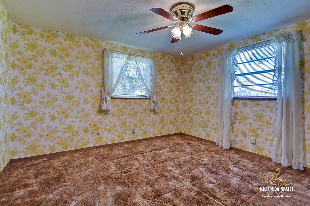 Quiet country setting! Opportunities like this don’t come around often! This lovely, lush lot is over an acre in a quiet community with park and playground just down the street! Enjoy peace of mind with a new roof in 2018! This block home boasts 2 bedrooms, 1 bath, large great room and a kitchen and dining area! Tons of natural light flows through the oversized windows throughout! Kitchen boasts updated appliances and tons of cabinet storage! Both bedrooms are down the hall along with a full bathroom. Convenient laundry closet inside! Do you have a handyman in the family? How about a hunter? Both sheds on the property come equipped with electricity to run tools, freezers and more! You are going to love this property with tons of space for kids and pets to run and play, making sweet memories here will not be hard! Ton’s of foliage providing shady spots in the lawn! Zoned for great schools! Come and see what the country life has to offer! We promise you will fall in love with the tranquility! With a little TLC, this lovely space can be turned into a the home of your dreams!