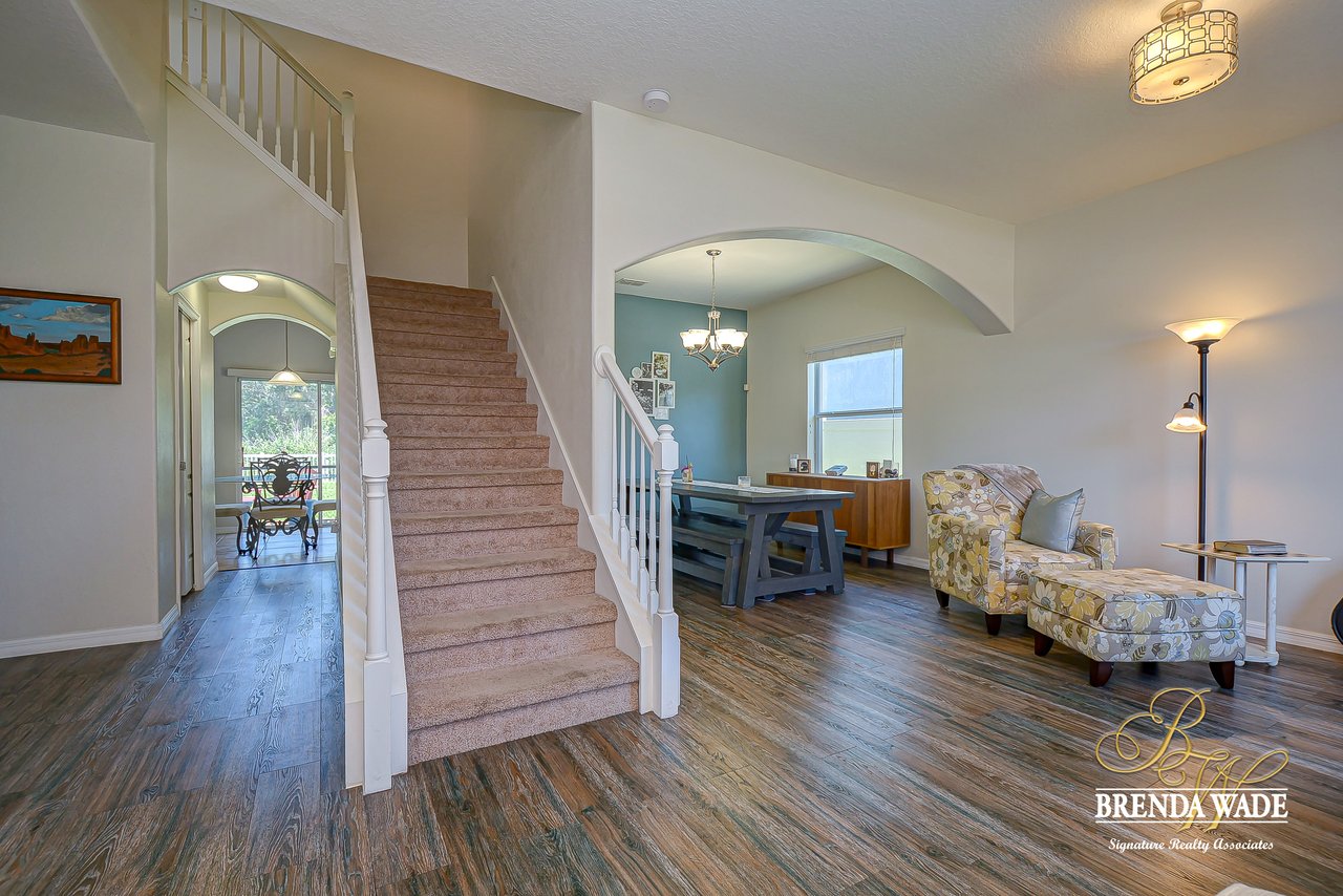 It is with great pleasure we welcome you to this unforgettable family home in the prestigious community of Hawks Point! This gated community is the perfect place to call home in the heart of the Southshore area, just minutes off the Interstate and zoned for Great schools! A grand elevation is captivating and draws you in from the moment you set your eyes on the home! If you have been searching for privacy, you will certainly find it here on this Marvelous oversized lot backing up to conservation! Step inside and take a tour of this grand design! Convenient combination living and dining rooms await you with rich flooring spanning throughout the entire first floor! Bright neutral paint is ready to welcome all your furnishings and décor! Moving forward you are going to fall in Love with the kitchen! Tons of cabinet storage, functional center island, granite counters, stainless appliances and an inviting eat-in breakfast nook space featuring sliders to the lanai! The family room also boasts another wall of sliders leading out to the lanai! Sweet memories are sure to be made in this open space! Ascend up the stairs and discover the Perfect family layout! An enormous master suite awaits you with a spa-like en-suite offering a Huge walk-in closet, soaking garden tub, his and her sinks and walk-in shower! Three more bedrooms and a second full bathroom are also upstairs, one of the bedrooms offers a double door entry, perfect for a home office, media room or a wonderful playroom for the kids! Enjoy the convenient laundry room that is upstairs with all the bedrooms! A screened and covered lanai space is the perfect place to kick your feet up after a long day and overlooks a lush backyard and wooded views! You can’t beat this oasis! Community amenities include a clubhouse, huge swimming pool and lovely park and playground! Don’t wait! This house is waiting to become your Home!