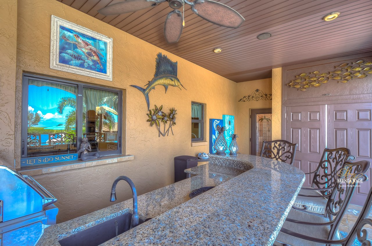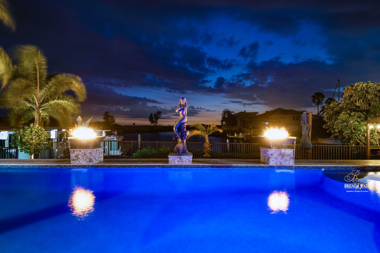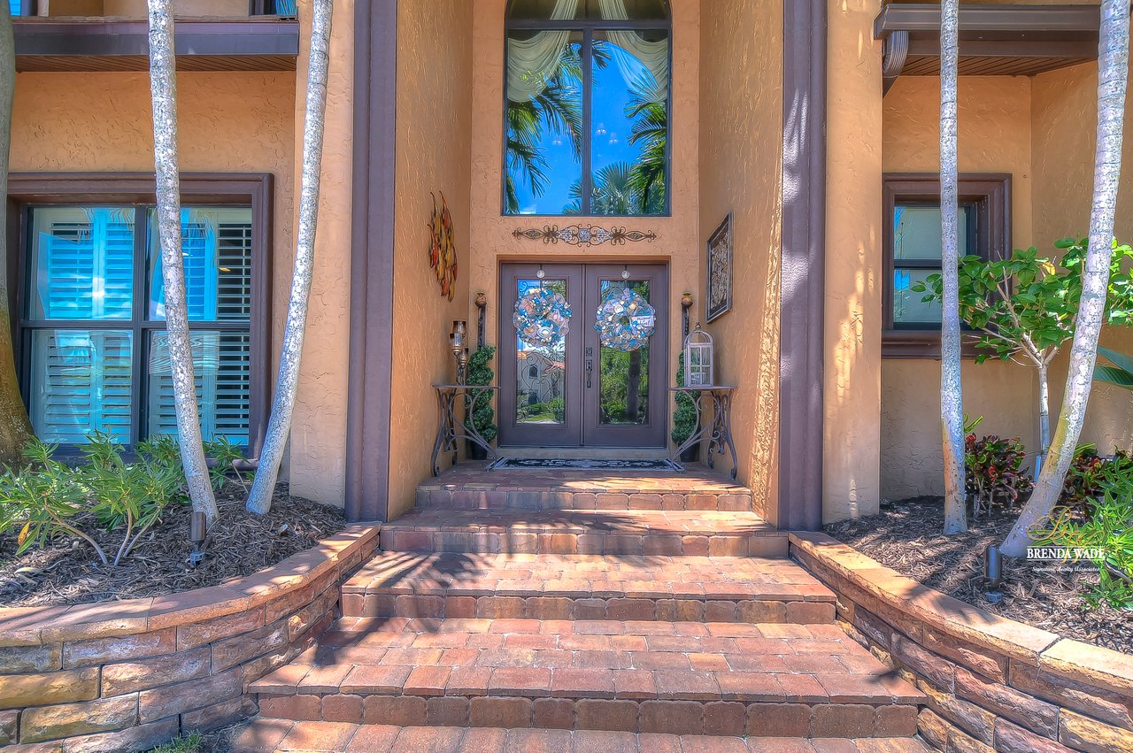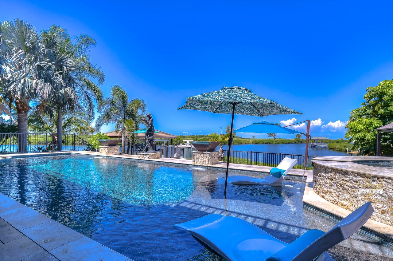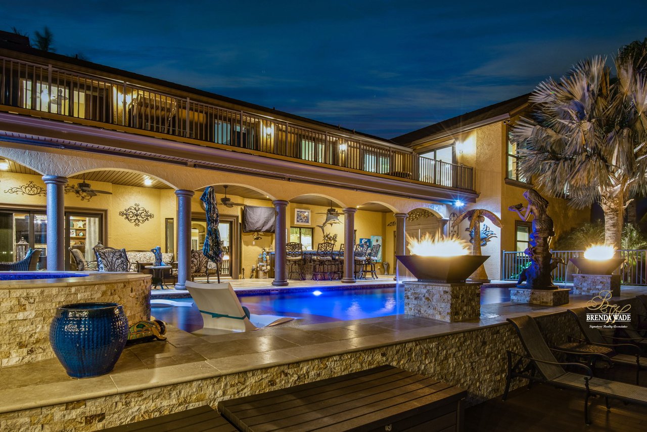 PARADISE AWAITS! Enjoy this CUSTOM WATERFRONT home that offers the most breathtaking views of Tampa Bay! There is SO much to fall in love with starting with the tranquil sunsets against the St. Petersburg skyline! Store your boat on your lot with ease with the private COVERED boat dock with a 10,000 lb lift and Trex decking with the ability to keep a second boat right at home! This wide saltwater canal has you just 3 minutes from Tampa Bay! Located in the highly desirable, gated Symphony Isles community which offers 24/7 Security, private beach, community pool, clubhouse, boat ramp, playground, and beach volleyball! Sitting at the end of a quiet cul-de-sac you will ADORE the curb appeal! Circular pavered driveway, tropical landscaping, and grand elevation with double doors and oversized windows! This luxurious home has been IMPECCABLY UPDATED with new flooring, custom cabinetry, remodeled kitchen, hurricane windows & sliders, and stunning addition to the home including a dreamy primary wing! The formal dining room has a deep tray ceiling, wine fridge, built-In wine storage, and humidor all with custom cabinets and iron doors! As you tour this beauty you will notice the statement ceilings and appreciate how easy it is to entertain both inside and out! The formal living room is flooded with natural lighting with floor-to-ceiling windows, transom windows, and features a double-sided fireplace shared with the family room! The renovated GOURMET kitchen is sure to please boasting custom designer cabinets with under cabinet lighting, granite countertops, stainless appliances, instant hot water dispenser, and sunny breakfast nook with double sliders leading outside to the pool! The family room has custom built-ins surrounding the double-sided fireplace to pair perfectly with your décor! Head upstairs and discover the added primary wing offering the finest finishes!! The oversized bedroom has a tray ceiling, lounge area, and sliding doors leading to the balcony… but check out the bathroom! Offering the most spa-like experience there are two sinks with custom cabinets, walk-through shower with multiple shower heads, separate tub, and towel warmer! We cannot stop swooning over the dual walk-in closets with custom organizers, cabinets, and drawers! There is a junior primary suite with its own fireplace, dual walk-in closets, and attached en-suite! Two more bedrooms and an office share the third bedroom upstairs! An added bonus room on the first floor is the perfect theater room with access to the pool, the sauna, and an additional bathroom! The pool was renovated in 2018 and WOW this backyard oasis is C A P T I V A T I N G! Travertine tile, outdoor fireplace with stacked stone accents, outdoor kitchen, salt water pool, and spa with sun shelf and fountain features, and your own boat dock! The owners have installed beautiful landscape lighting in the front of the house and a 50 amp plug to hook up an RV! You can stop dreaming and start living the carefree coastal lifestyle! Schedule your private showing while you can!