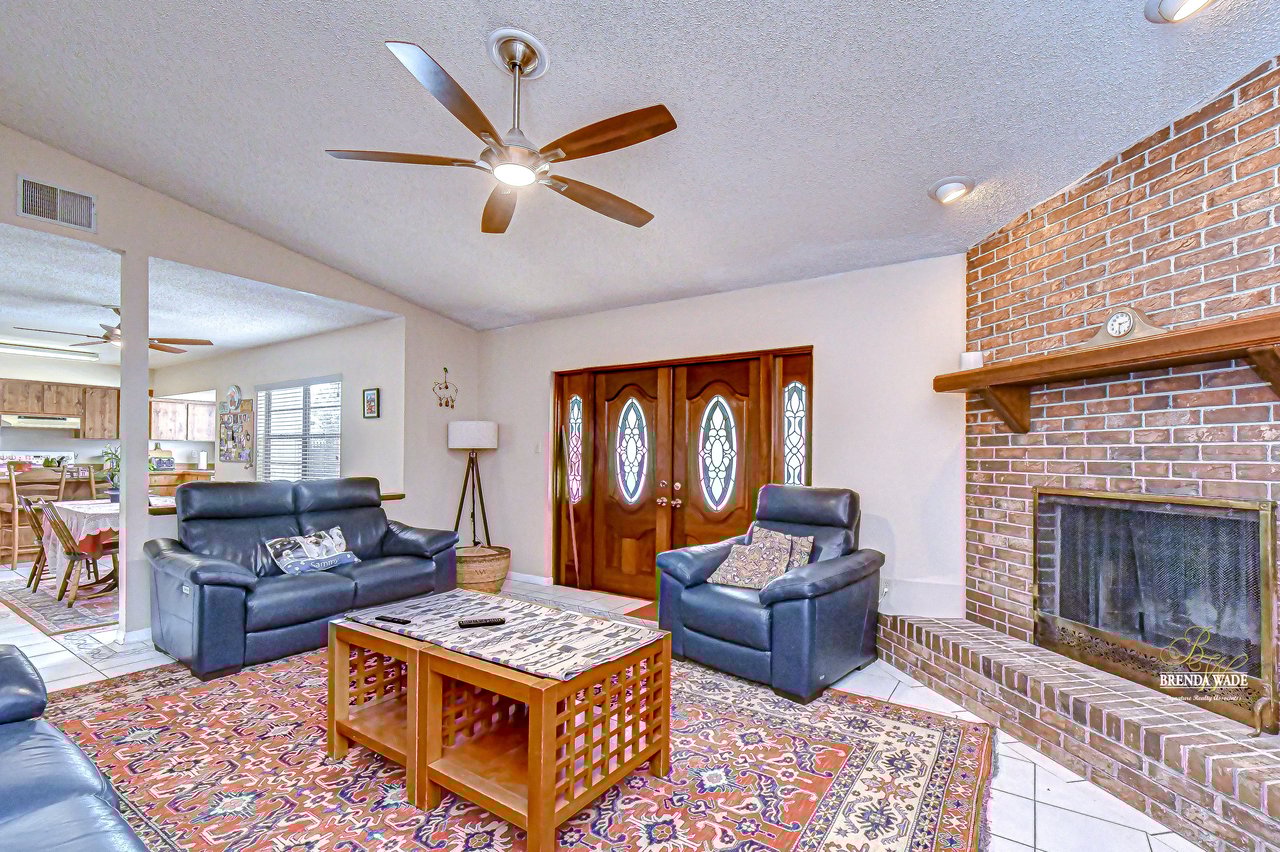 Step into this wonderful Bloomingdale home, gleaming from the inside out! The open, airy foyer invites you in with gorgeous hardwood floors that flow through the formal living and dining spaces. The bright, well-equipped kitchen is the heart of the home, offering tons of storage and prep space with abundant cabinetry, a prep island, a large breakfast nook, and updated appliances that keep everyday cooking delightfully easy. The family room ties it all together with vaulted ceilings, a cozy wood-burning fireplace, and French doors to the backyard. A half bath is located downstairs for added convenience. Beautiful hardwood extra-wide stairs lead you upstairs, where the primary suite feels like your own personal retreat, offering a French door entry, generous space, a huge walk-in closet, and an en-suite bath with a shower/tub combo. Three additional bedrooms are spacious in size, have large closets, and share a full bath. Step outside to a backyard built for pure enjoyment. A charming gazebo creates the perfect setup for al fresco dinners or weekend gatherings, and a tranquil fountain brings peaceful vibes to every moment. Feel confident with thoughtful updates, including an AC unit replaced in 2022, an upgraded Ecobee smart thermostat, and a whole-house surge protector. Less worry and more living. Located next to Bloomingdale Park, you'll find tennis, basketball, and racquetball courts practically at your doorstep. With top-rated Bloomingdale schools and an easy commute to Tampa and MacDill AFB, this home delivers the winning combo of comfort, convenience, and lifestyle in one fantastic package.