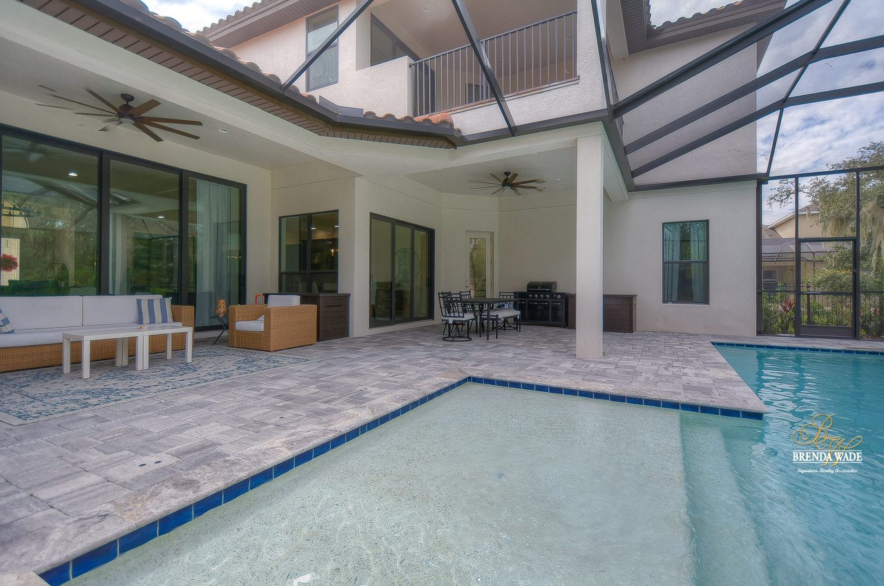 RAVISHING LUXURY MEETS THE MOST MODERN DESIGNS IN THIS MARVELOUS POOL HOME! Seriously, this home is STUNNING from top to bottom, loaded with CUSTOM UPGRADES! Sitting on an enormous, corner lot in the prestigious, gated community of Chapman Crossing within FishHawk Ranch! Every one of your HGTV dreams will come true from the time you set your gaze on the exterior! Gorgeous, Mediterranean elevation accented with a paved driveway, tile roof, and arched entryway! Inside the double doors, you will immediately appreciate the captivating attention to detail and the OPEN CONCEPT FLOOR PLAN! The enormous family room catches your sight-line right from the front door with a stunning wall of sliders looking directly out to the sparkling pool & spa! Accented with tray ceiling, crown molding, and a lovely, upgraded chandelier that ties the whole room together! Move a few steps forward into the DREAMY designer kitchen! WOW! Any chef in the family will fall head over heels for this space… Cambria countertops, built-in stainless appliances, subway tile backsplash, wine fridge, HUGE center island with seating, an abundance of cabinet storage, and best of all… an enormous, HIDDEN, walk-in pantry! A bright and airy dining space is open to the kitchen and overlooks the lanai! Need a dedicated space to work from home? The spacious home office is just the place, with double French doors and plenty of room to spread out! The master suite is on its own wing of the house with marvelous features including a bright sitting area with bay windows, a pretty tray ceiling, his and hers walk-in closets, and a swoon worthy en-suite with a stand-alone soaking tub, walk-in shower, and his and her custom vanities! Does it get any better than this?! Three more bedrooms are conveniently downstairs; two of which share a jack and jill bathroom! Upstairs is truly a retreat! ENORMOUS bonus space gives you endless options for a playroom, theater room, or homeschooling area! And best of all, this space boasts sliders leading out to a private, covered balcony! One last bedroom is found upstairs with a full bath, guests will love this private space! Step outside onto the screened and covered lanai and enjoy your very own private paradise overlooking a fully fenced, oversized yard! We promise, no other listing out there will TOP this! It is one of a kind and you definitely want to see it! **THIS SALE includes the additional parcel/vacant lot at 5912 CHURCHSIDE**